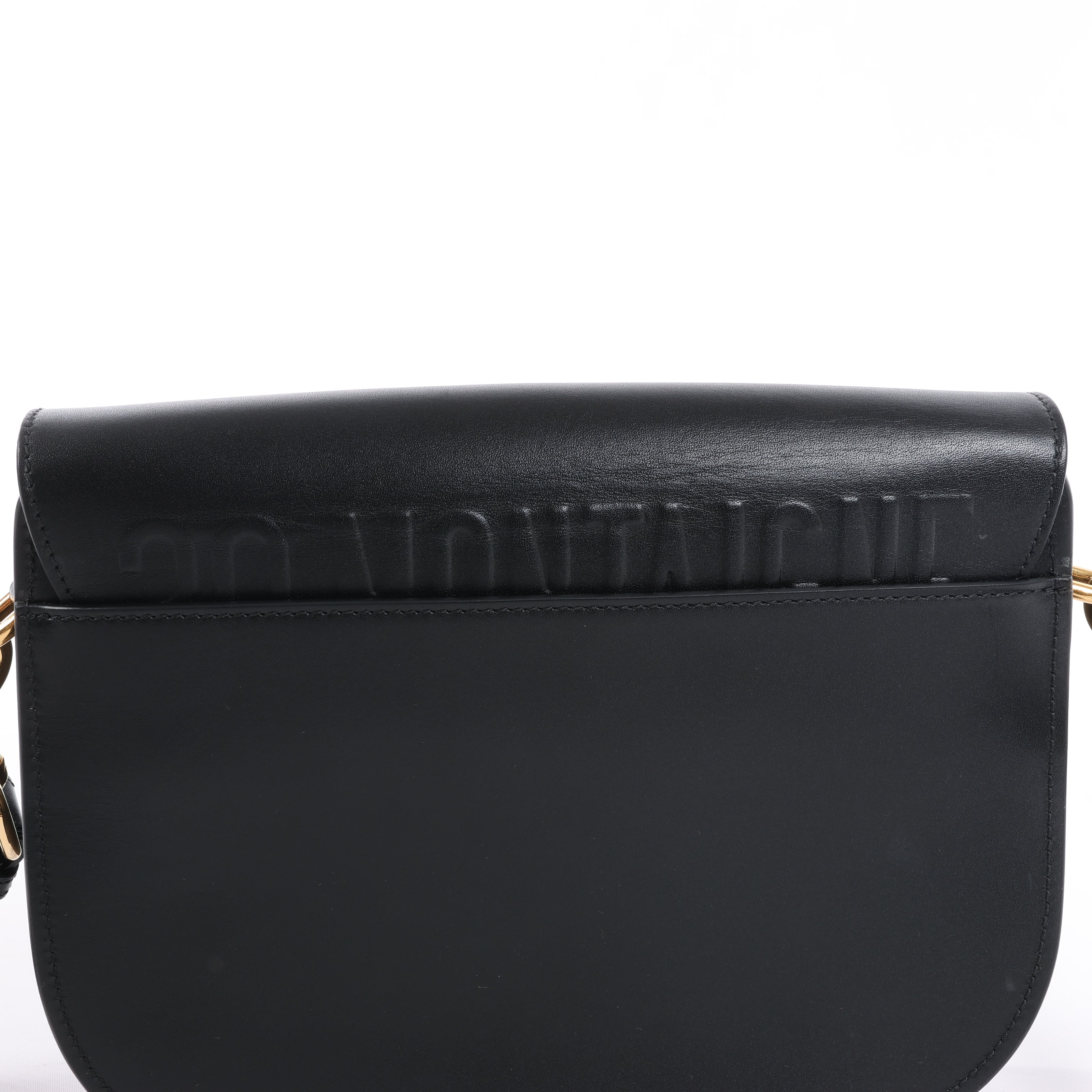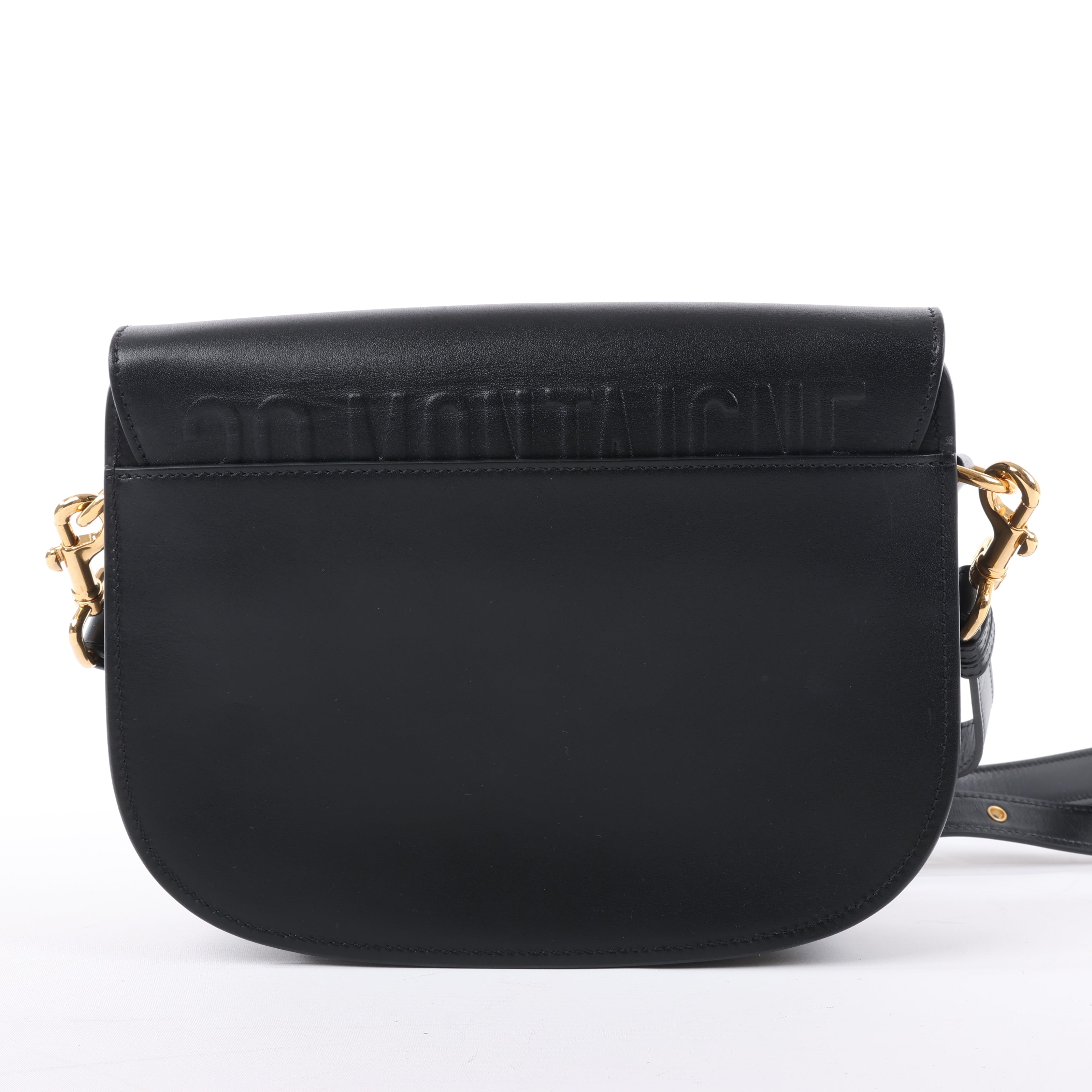 Dior Bobby Medium Shoulder Bag in black calfskin with gold-tone CD buckle. A refined flap silhouette and adjustable strap make this an effortlessly elegant everyday icon.