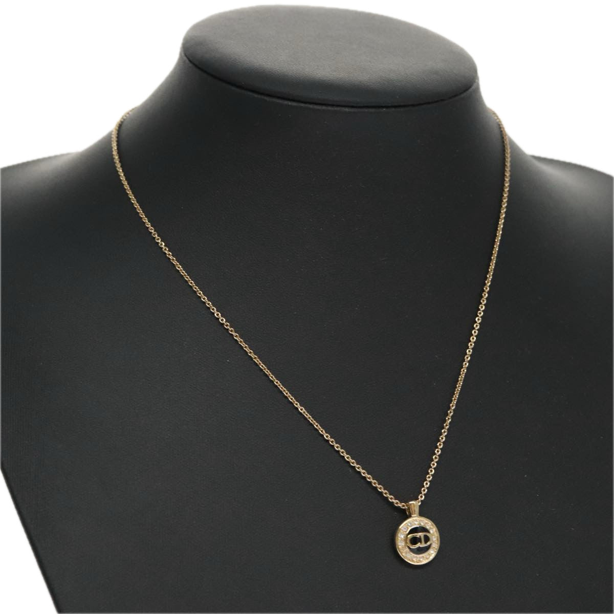 Christian Dior CD Round Pendant Necklace Metal and Crystals
