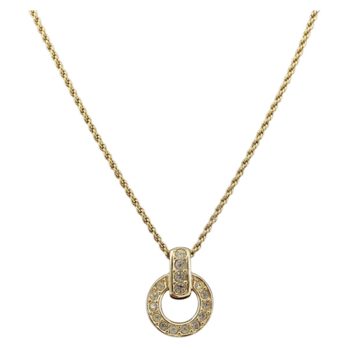 Christian Dior CD Round Pendant Necklace Metal and Crystals