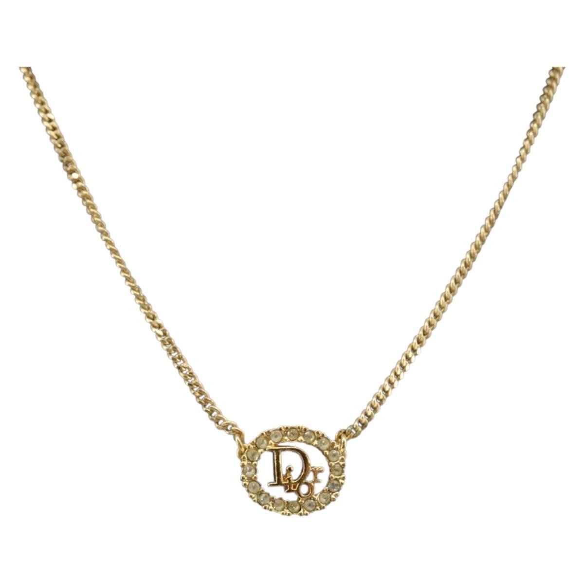 Christian Dior CD Round Pendant Necklace Metal and Crystals