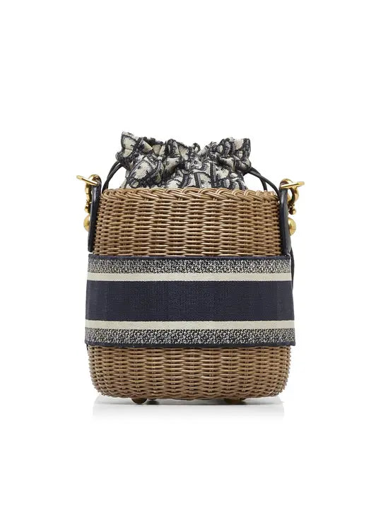 Christian Dior Drawstring Bucket Bag Wicker with Oblique