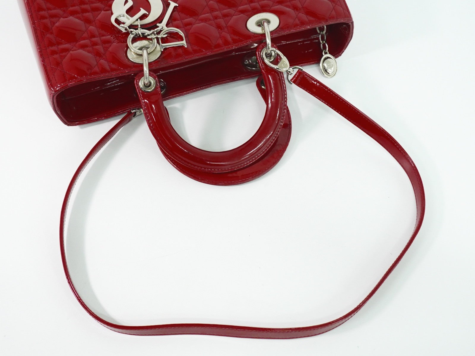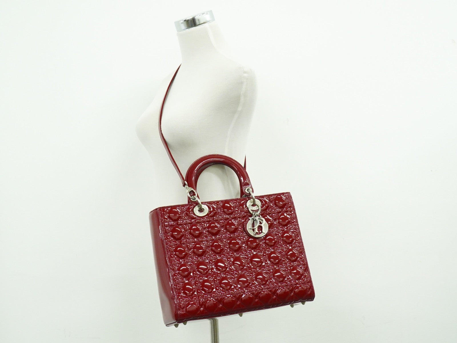 Brand : Christian dior Model : Lady dior bag Style : Cannage quilt patent Dimensions (W x H x D) : 32cm x 25cm x 9cm Serial number : 16-bo-0191 Inclusions : Strap,shop card