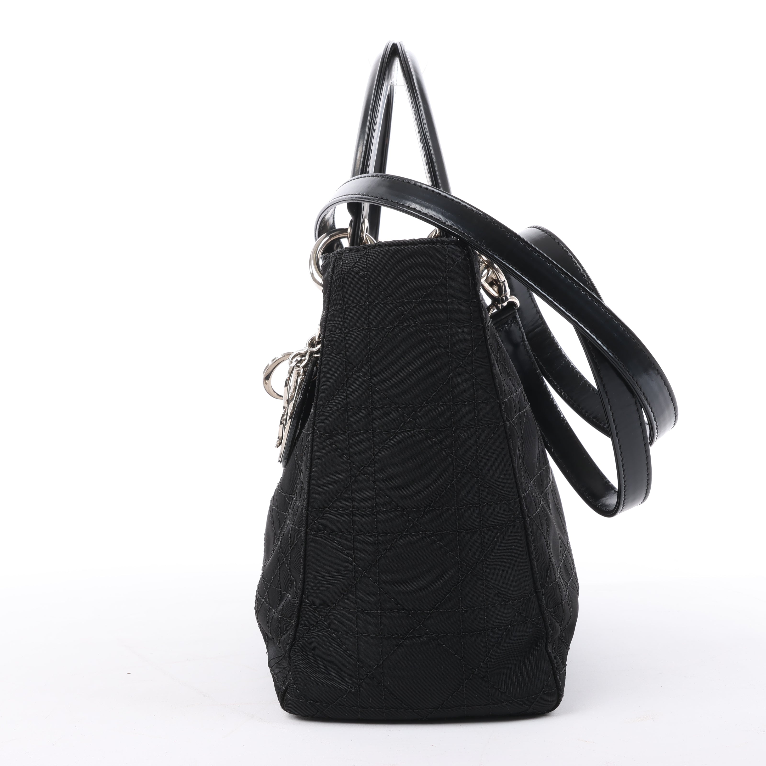 Dior Lady Dior Cannage Nylon Handbag in Black