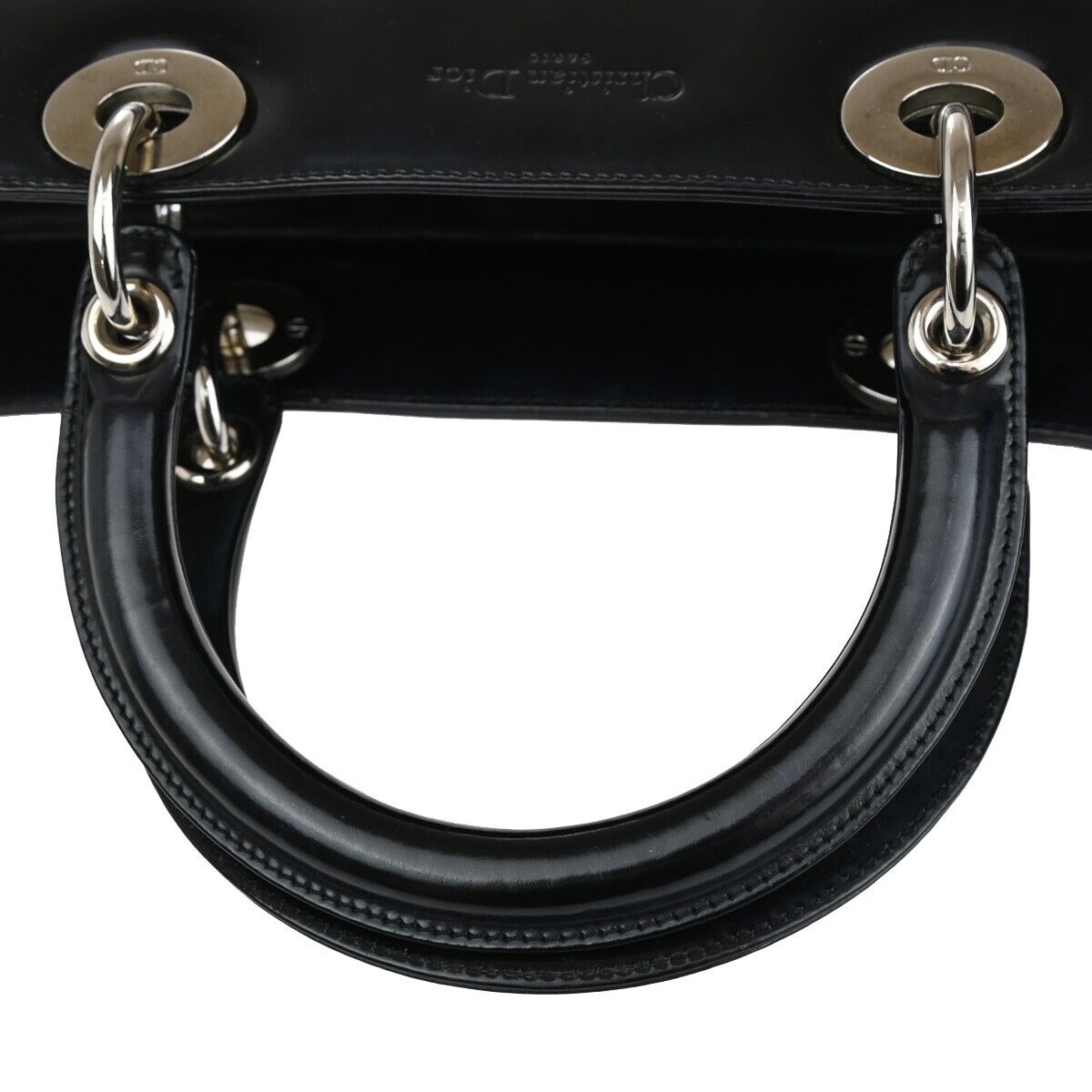 Christian Dior Vintage Lady Dior Patent Noir Cuir Vernis