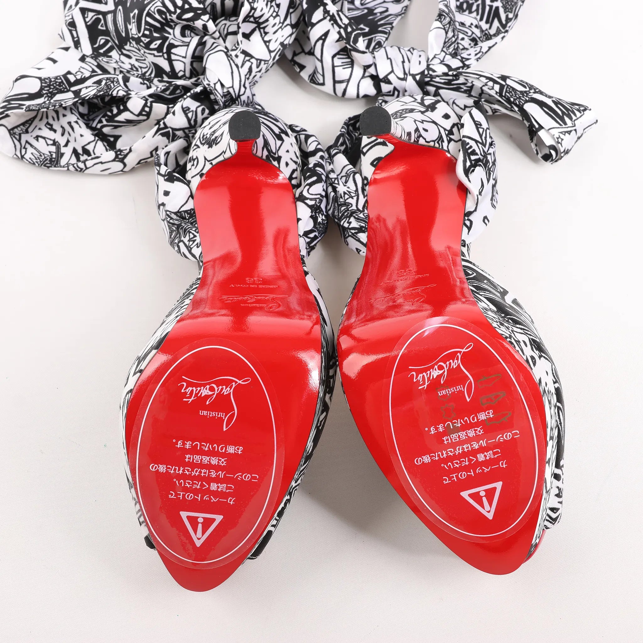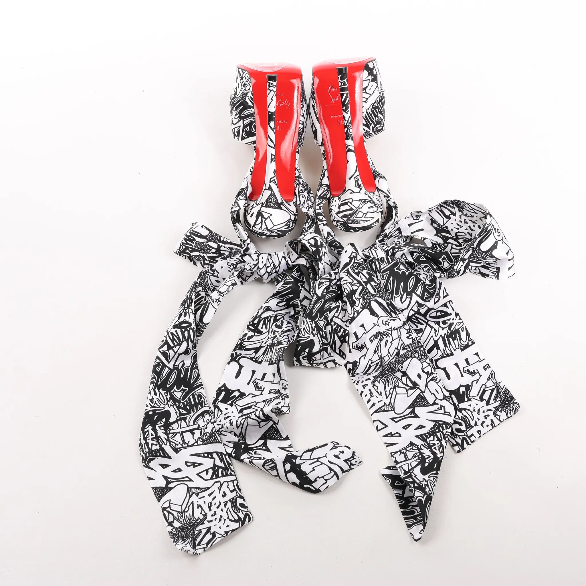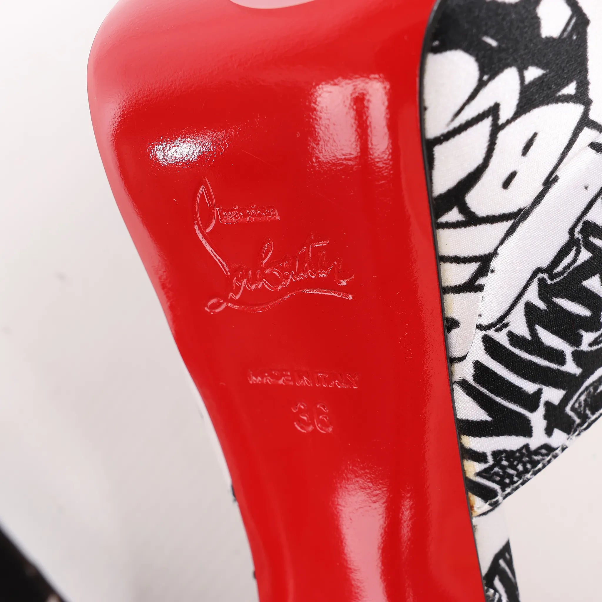 Christian Louboutin Christian Louboutin ERSEY VAMP 150 Satin Heels in White Jwall Graphic, Size 36 EU