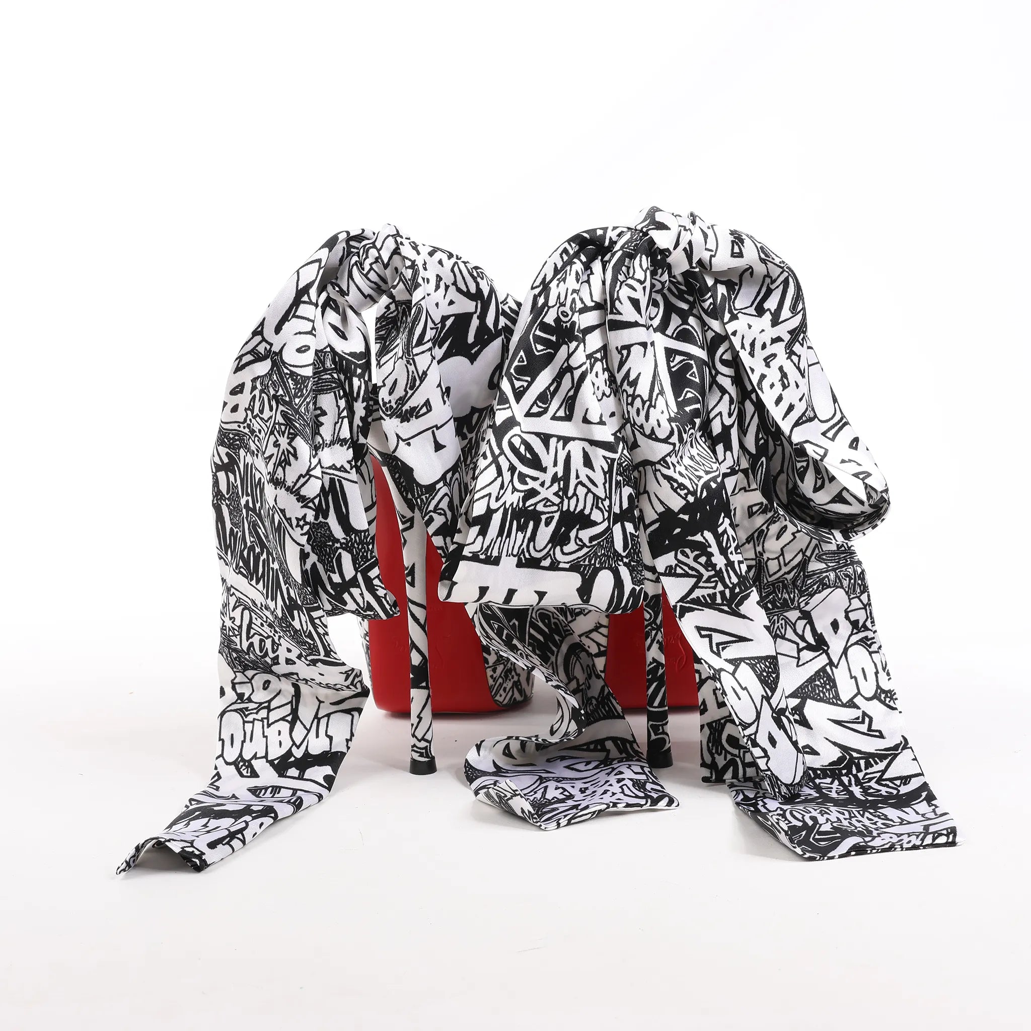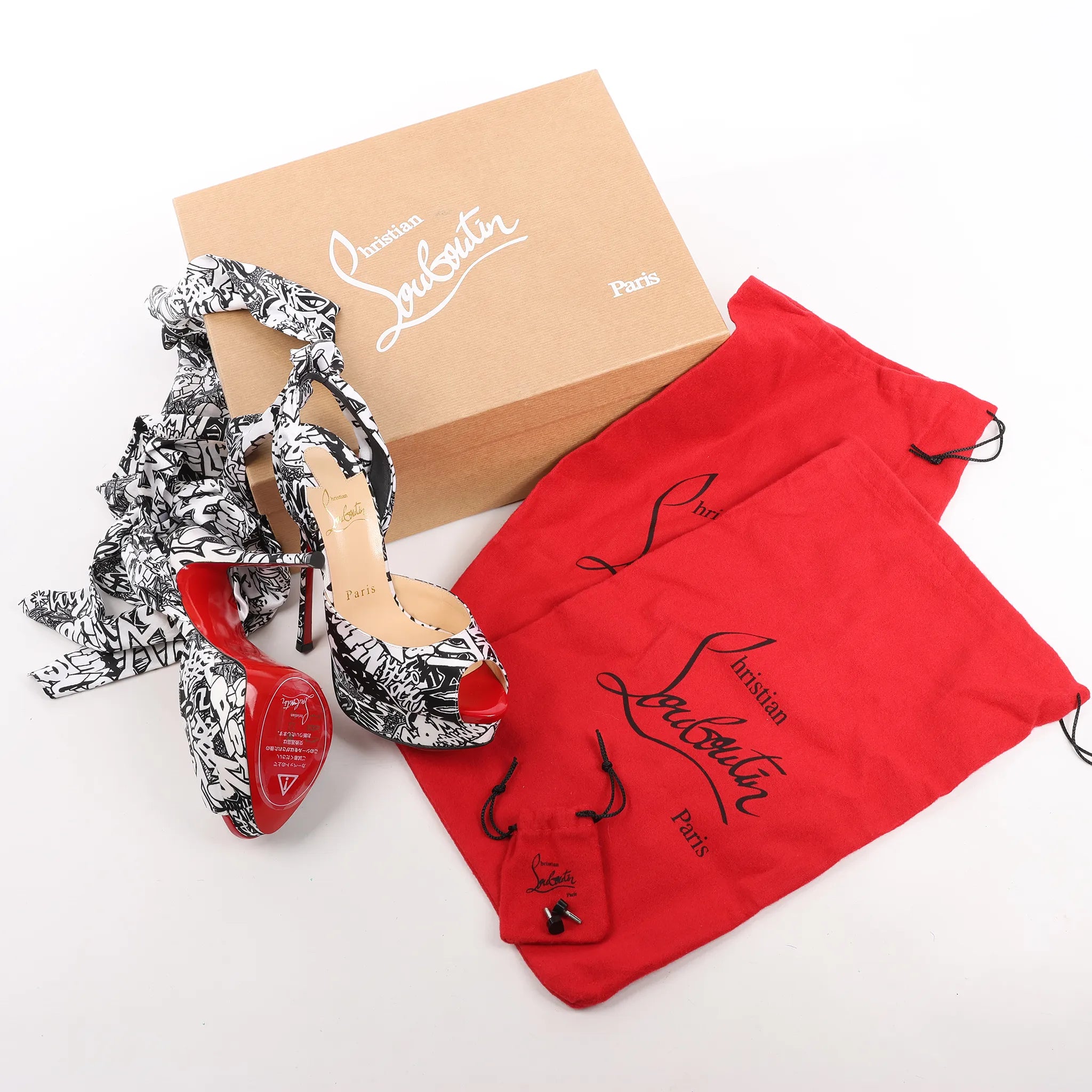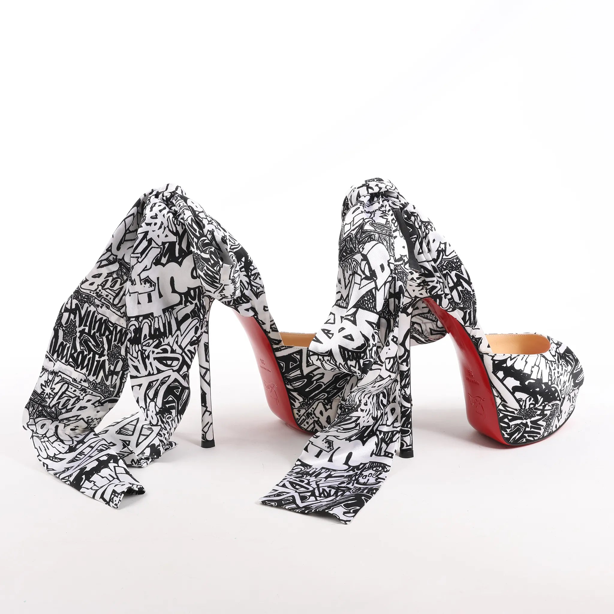 Christian Louboutin Christian Louboutin ERSEY VAMP 150 Satin Heels in White Jwall Graphic, Size 36 EU