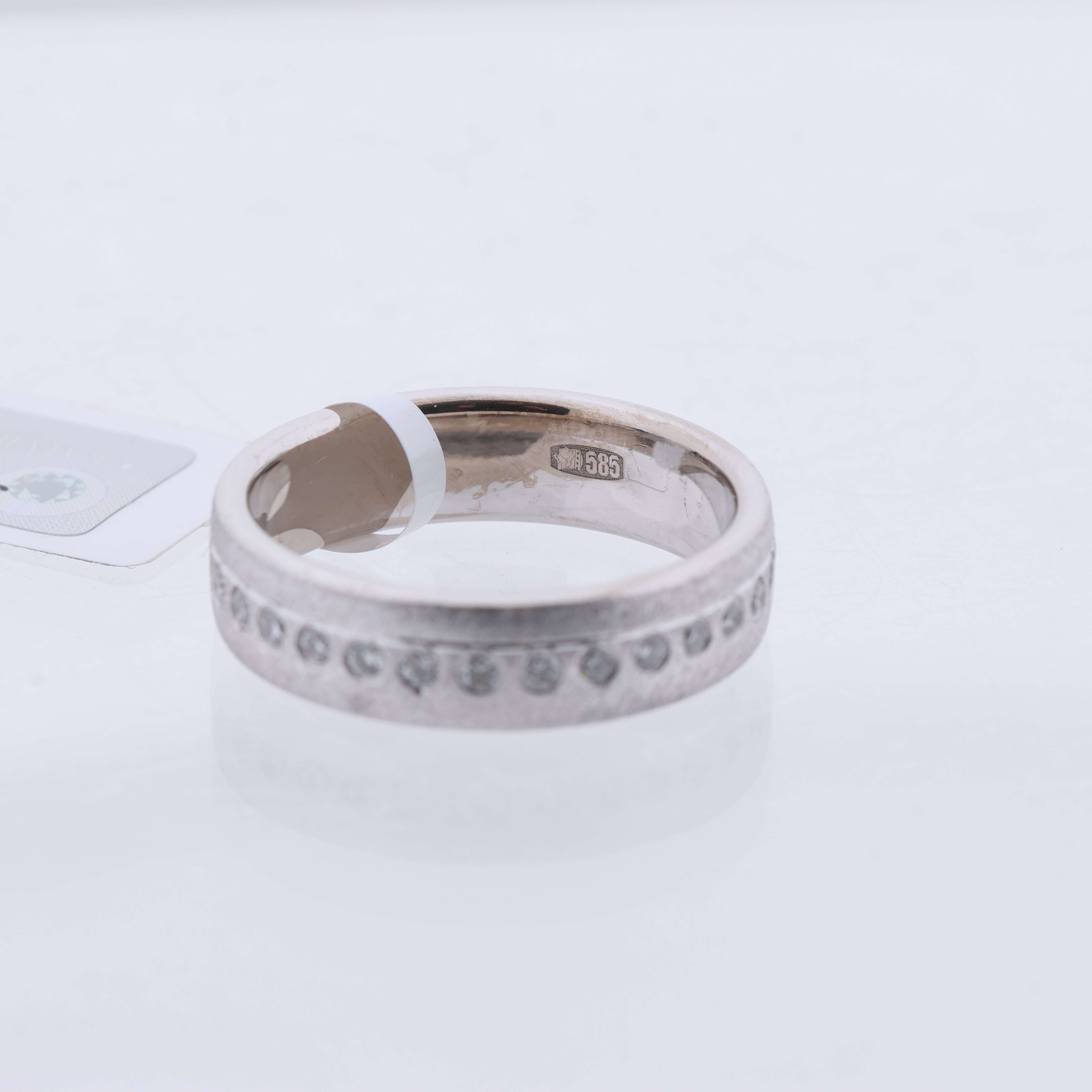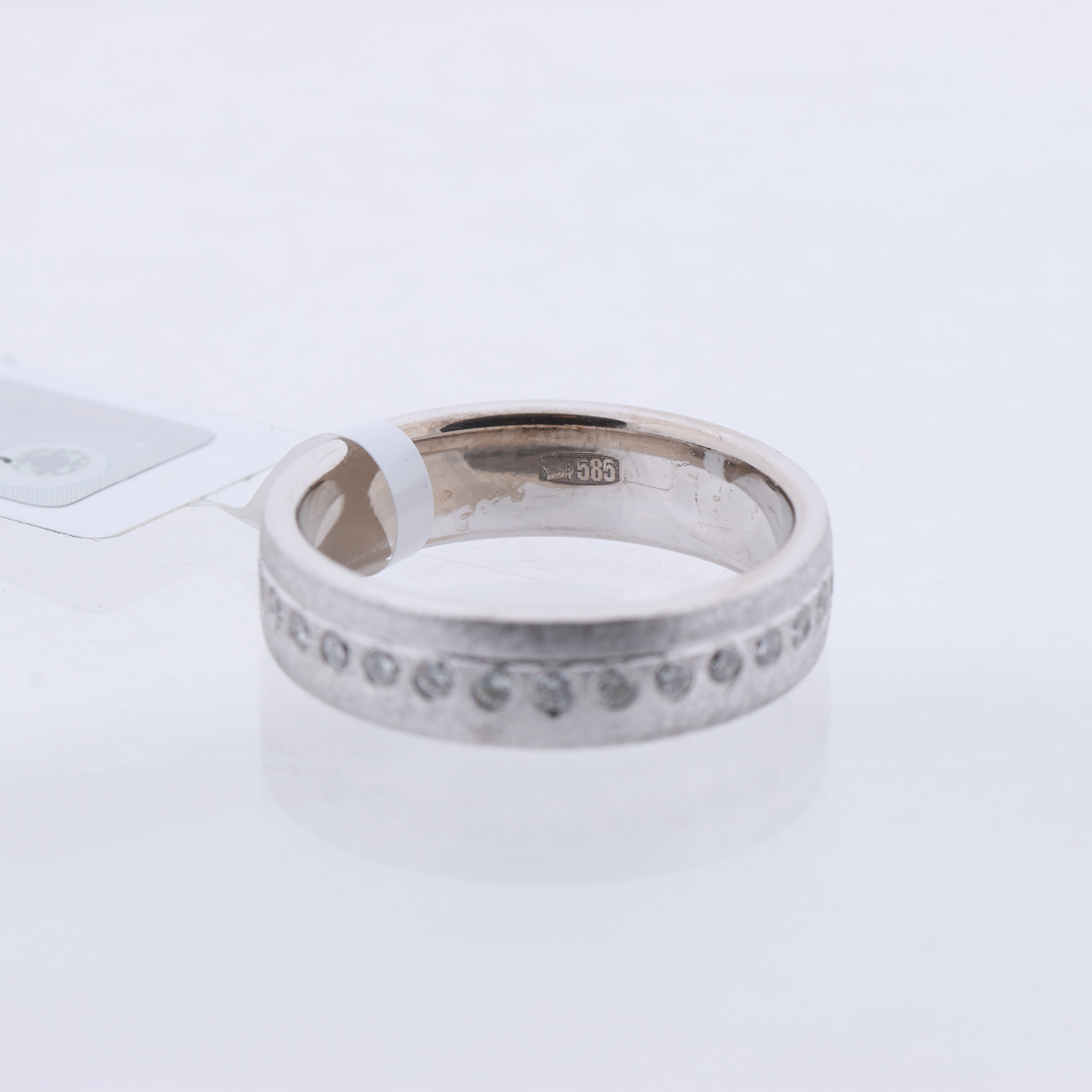 This stunning Collection Privée 14K white gold ring features a sleek design with 30 natural diamonds intricately set in a bezel style around the band. A perfect blend of elegance and sophistication, this ring exudes timeless charm and sparkle.