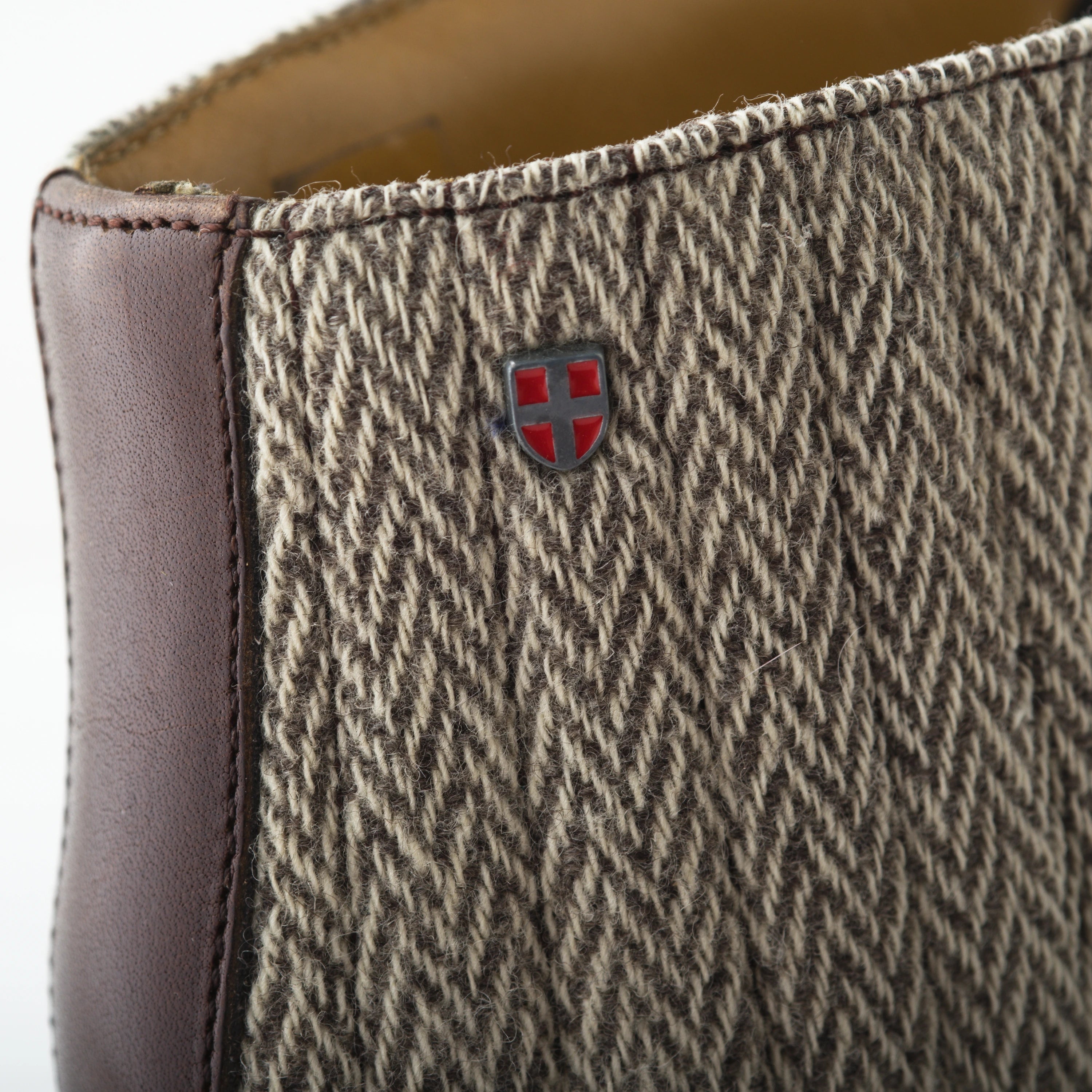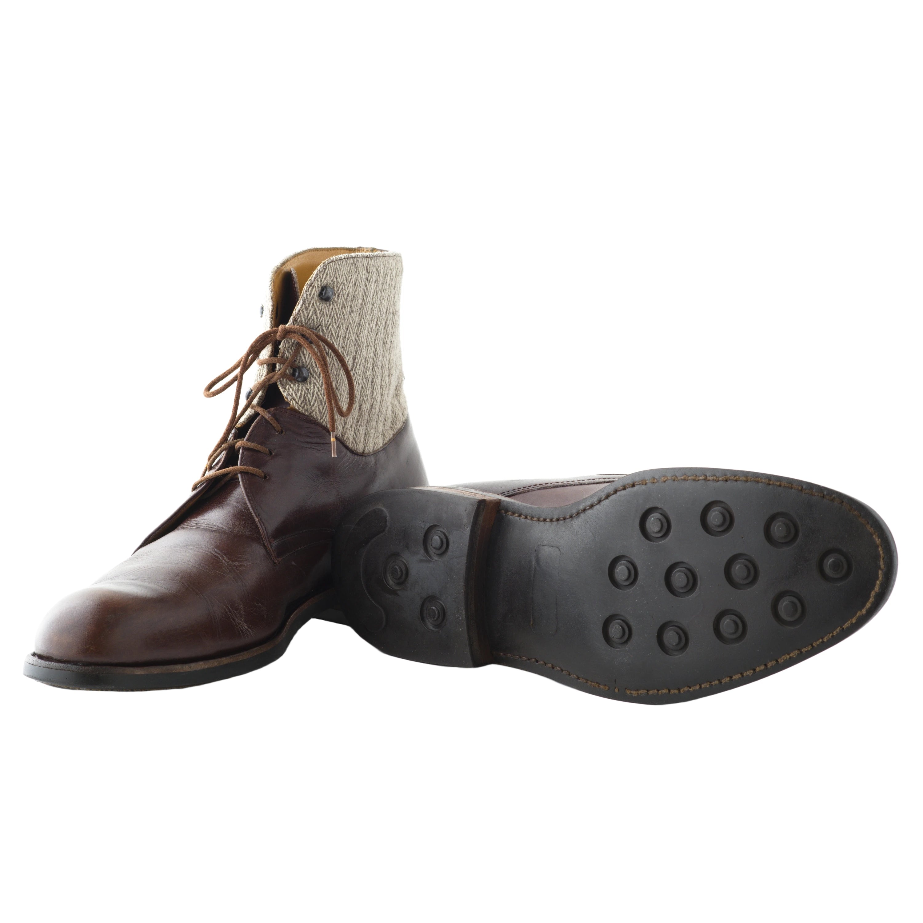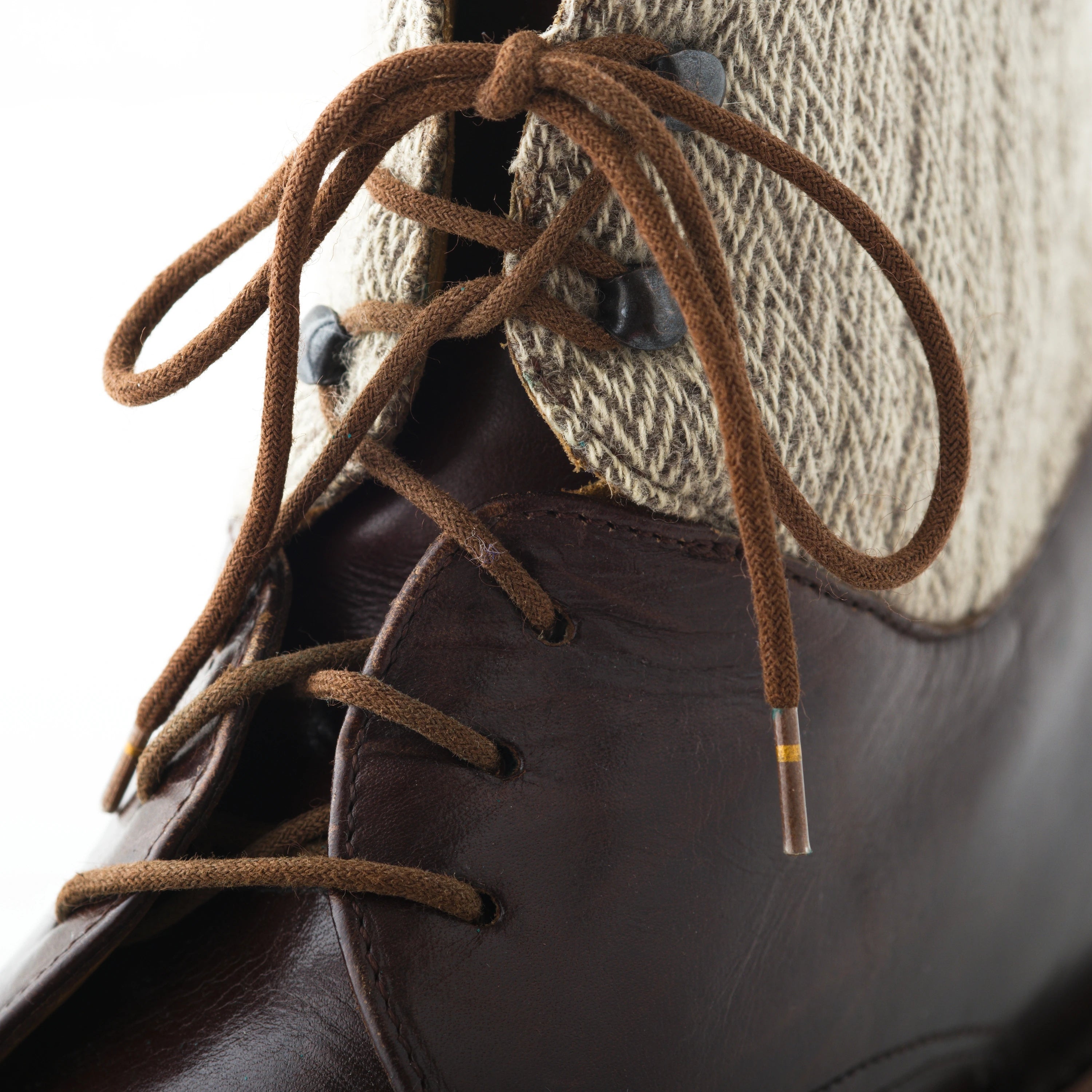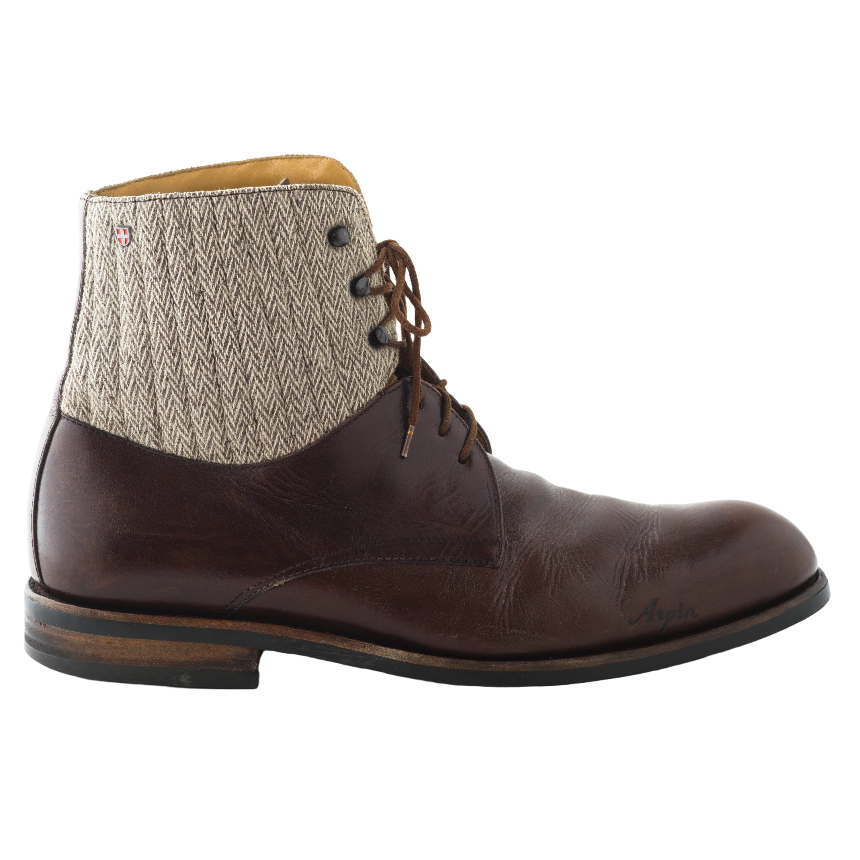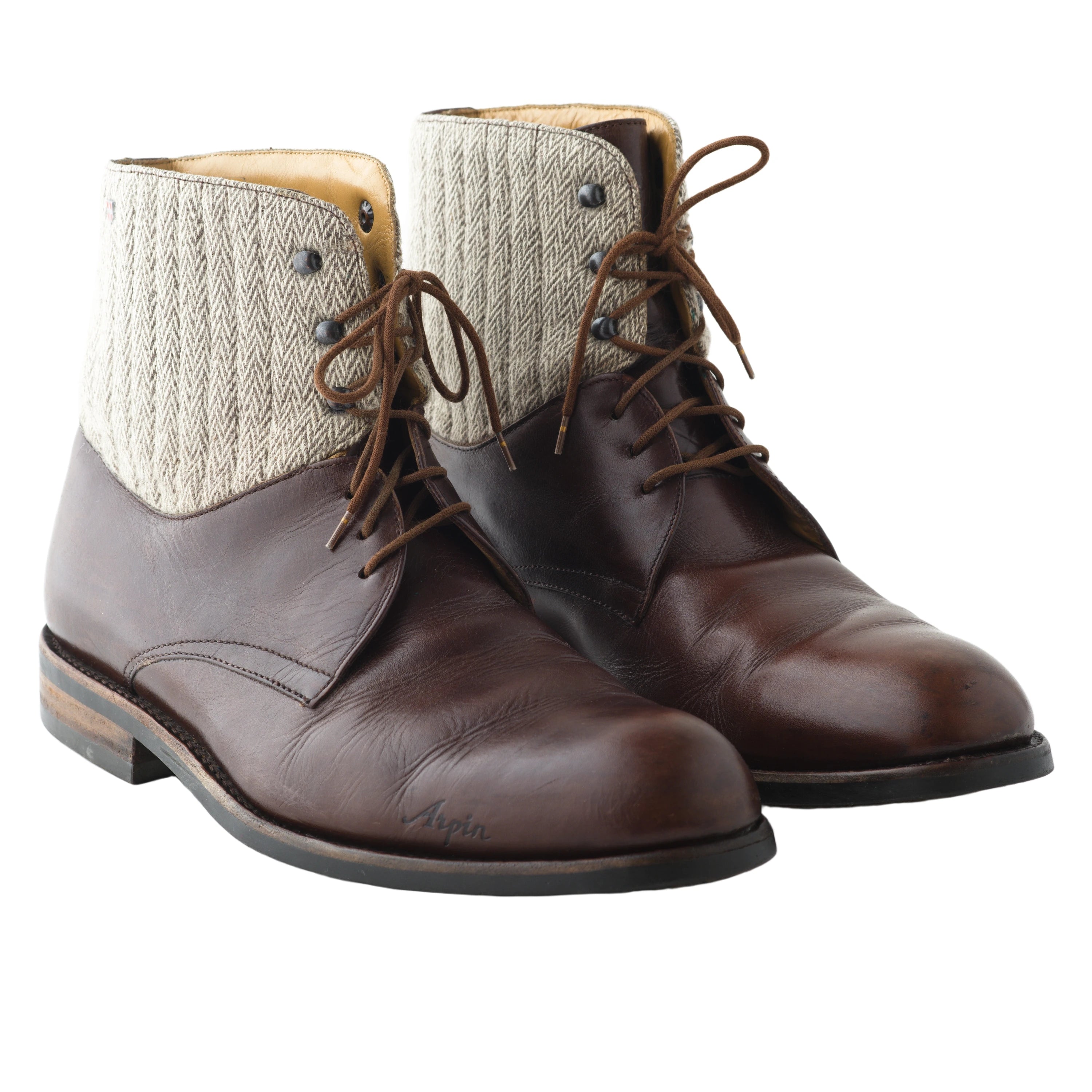Arpin 1817 shoes crafted from brown leather, featuring classic lace-up closure and high top in chevron wool accents for a refined blend of style.