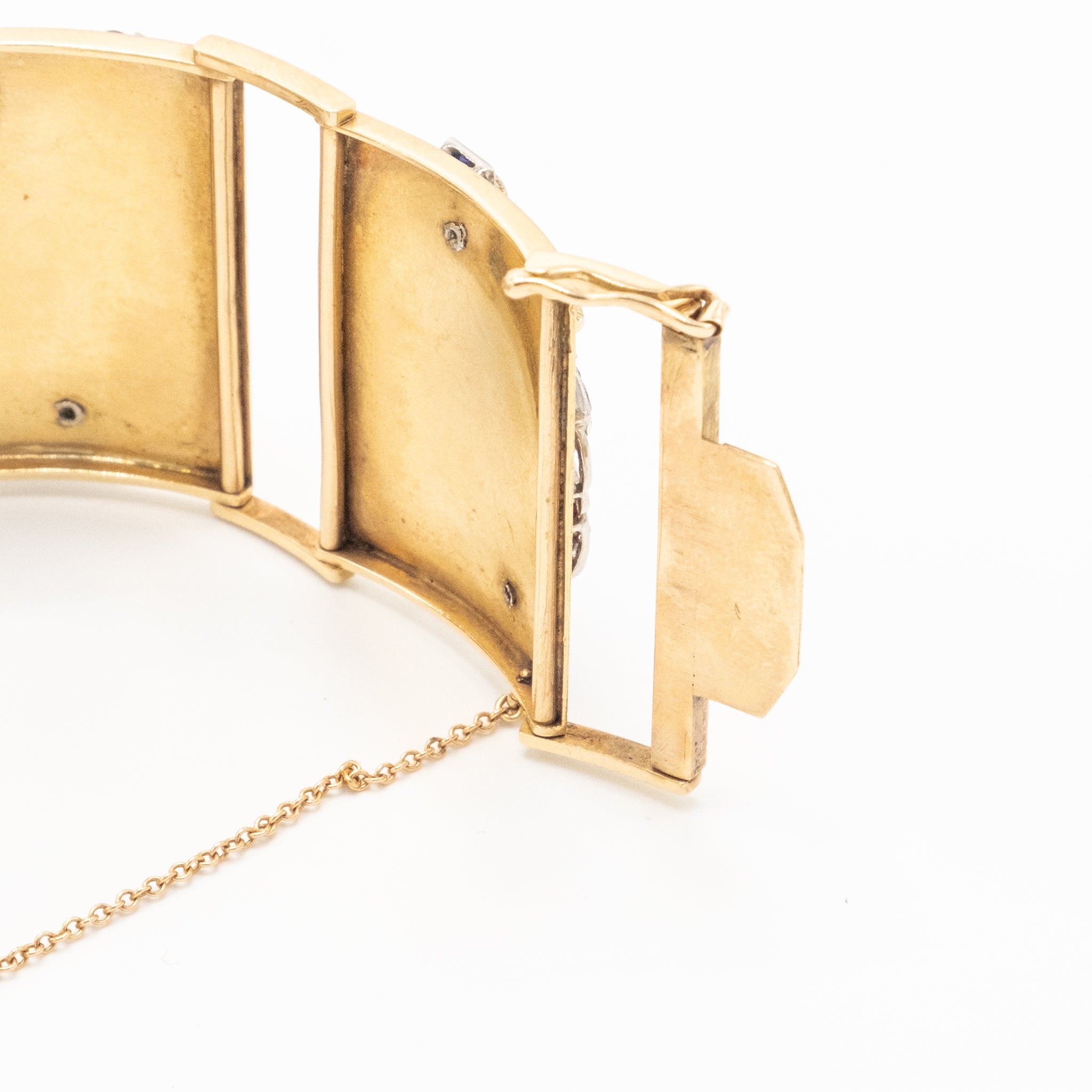 Extraordinary French Gold Bracelet with Gem-Set Panels - '40s