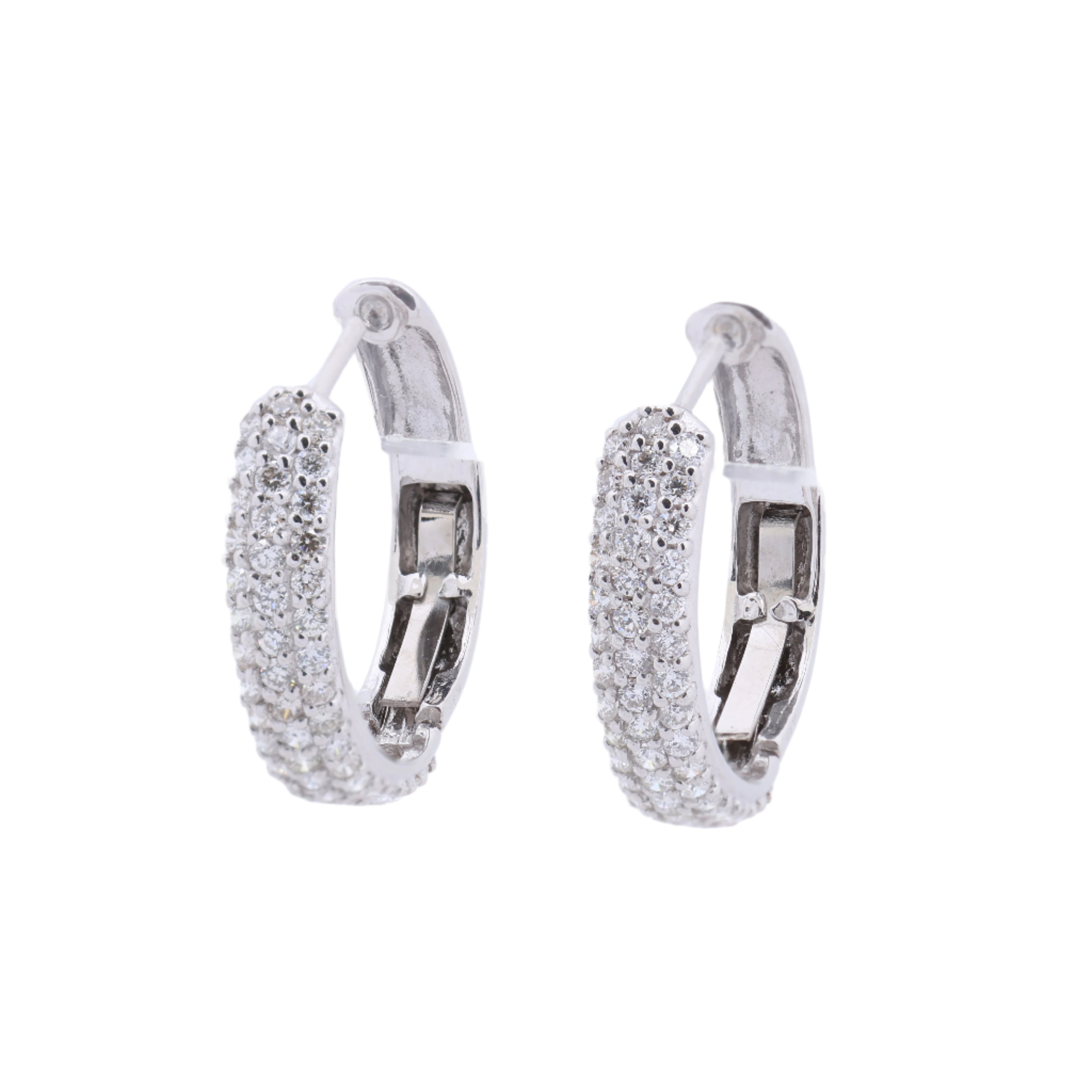 Elegant Collection Privée Diamond Earrings in 18K white gold (4.4g), featuring 104 brilliant-cut diamonds with a total weight of ~1.0 ct, near colorless G-H grade, and VS-SI clarity for a refined sparkle.