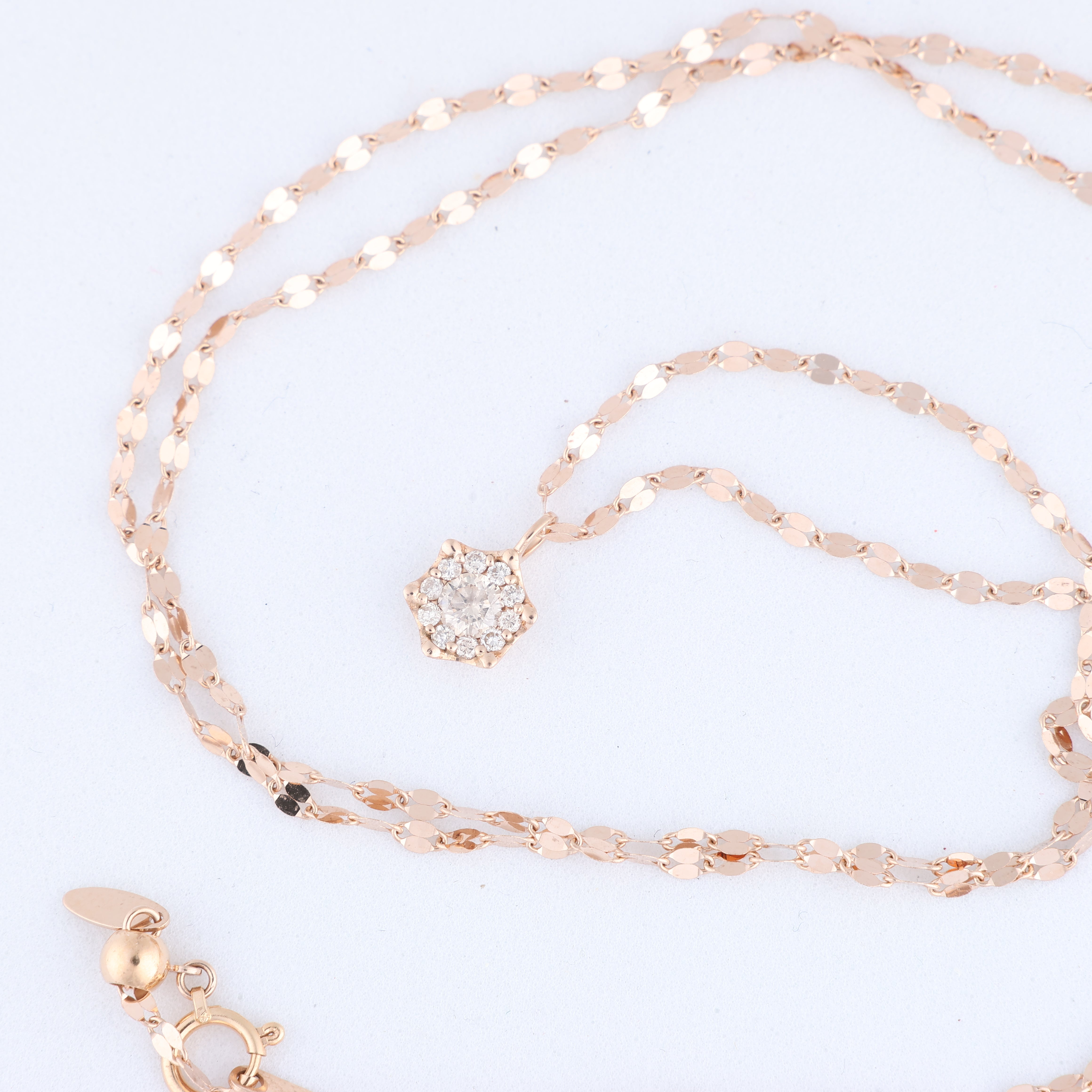 Elegant and timeless, this Collection Privée 18k rose gold chain features a hexagon pendant set with 11 sparkling natural diamonds. A refined jewelry piece perfect for adding sophistication to any occasion