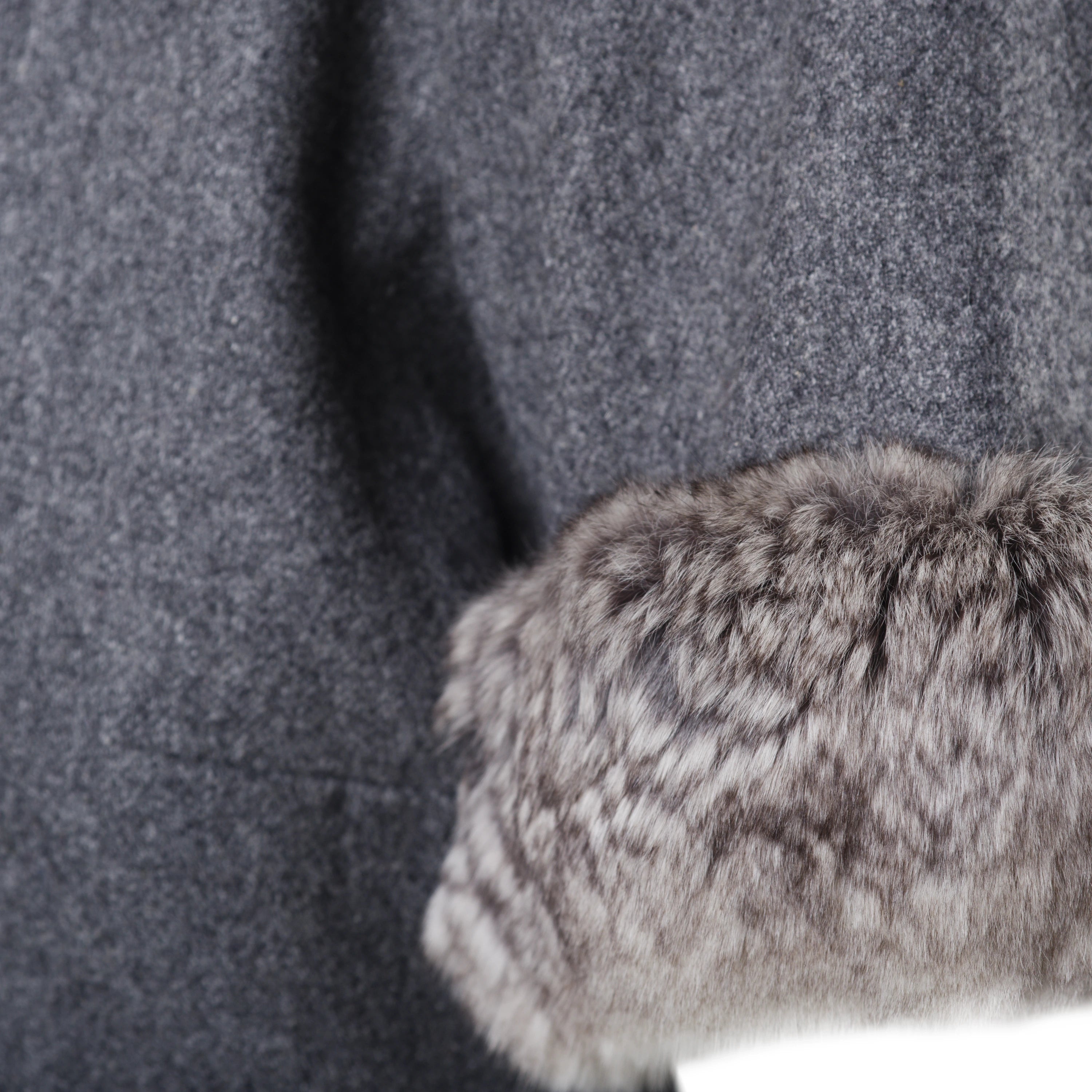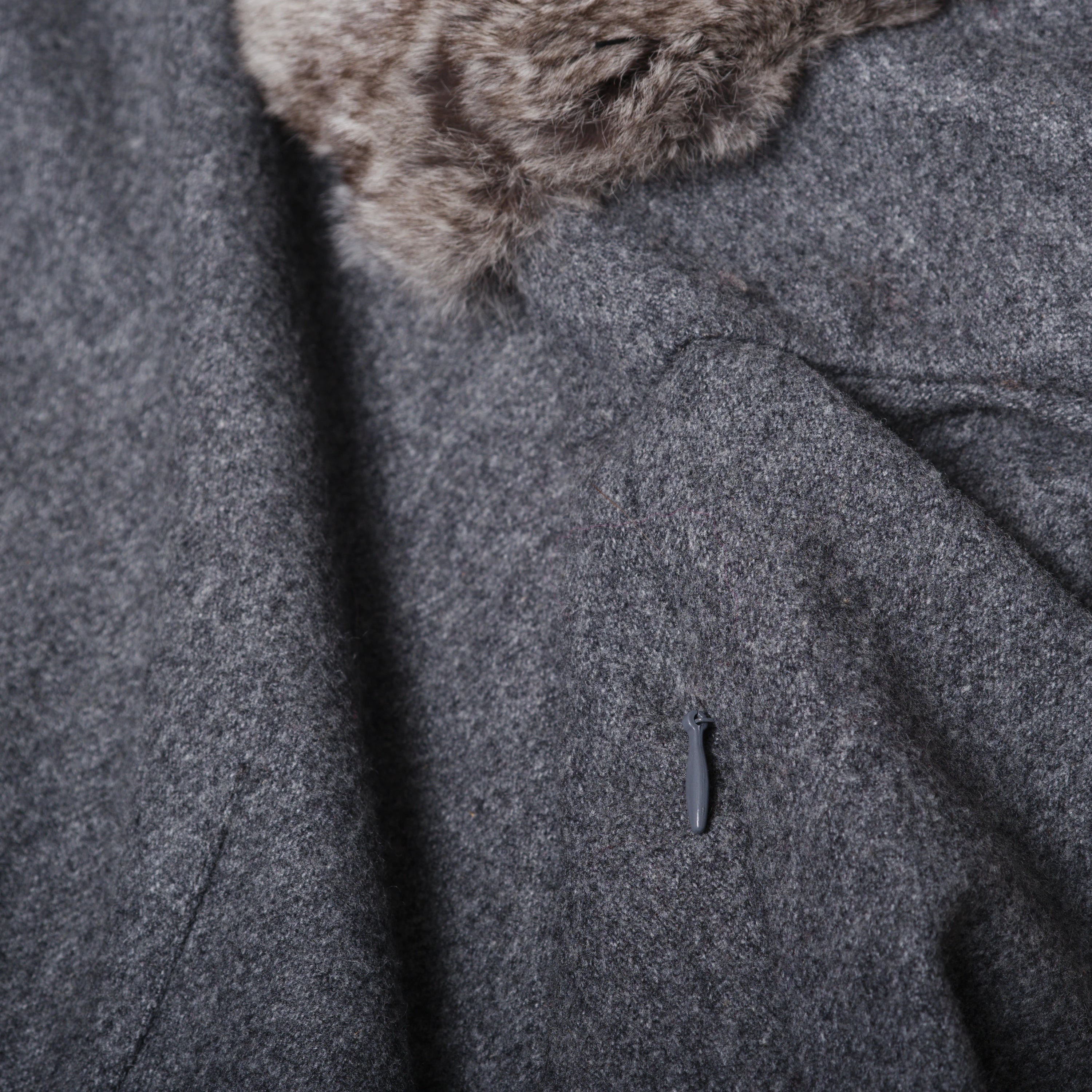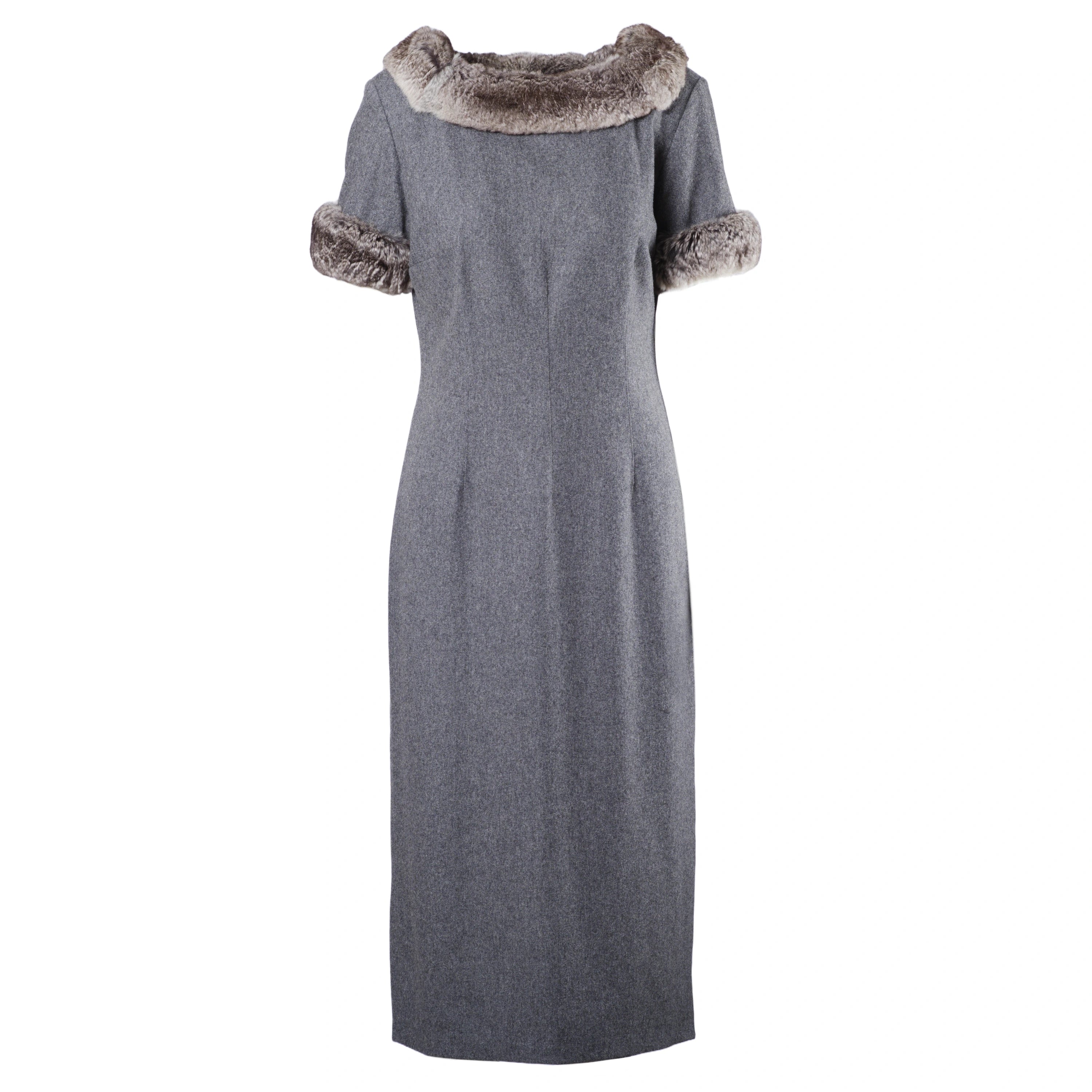 Collection Privée Gray Wool Blend Dress With a Faux Fur Collar And Cuff - '00s