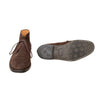 Elegant brown suede shoes by J. Glen, dating from the 2010s. These lace-up shoes feature a classic almond toe and low stacked heel, handcrafted in high-quality suede leather for a refined yet casual look. Ideal for versatile styling, from smart-casual outfits to more formal occasions.