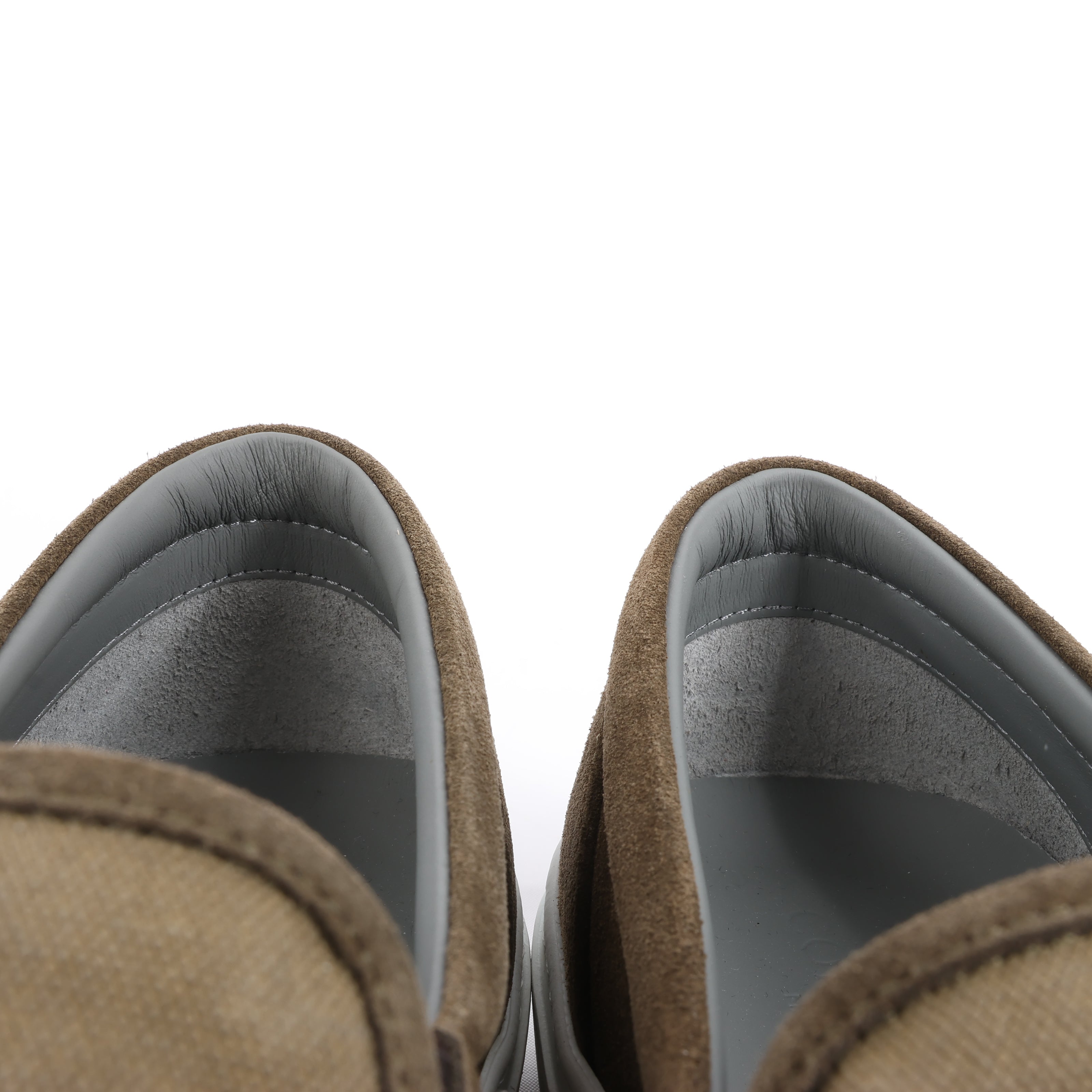 Corneliani CORNELIANI Suede and Cloth Slip-On Sneakers in Brown, Size 50 EU