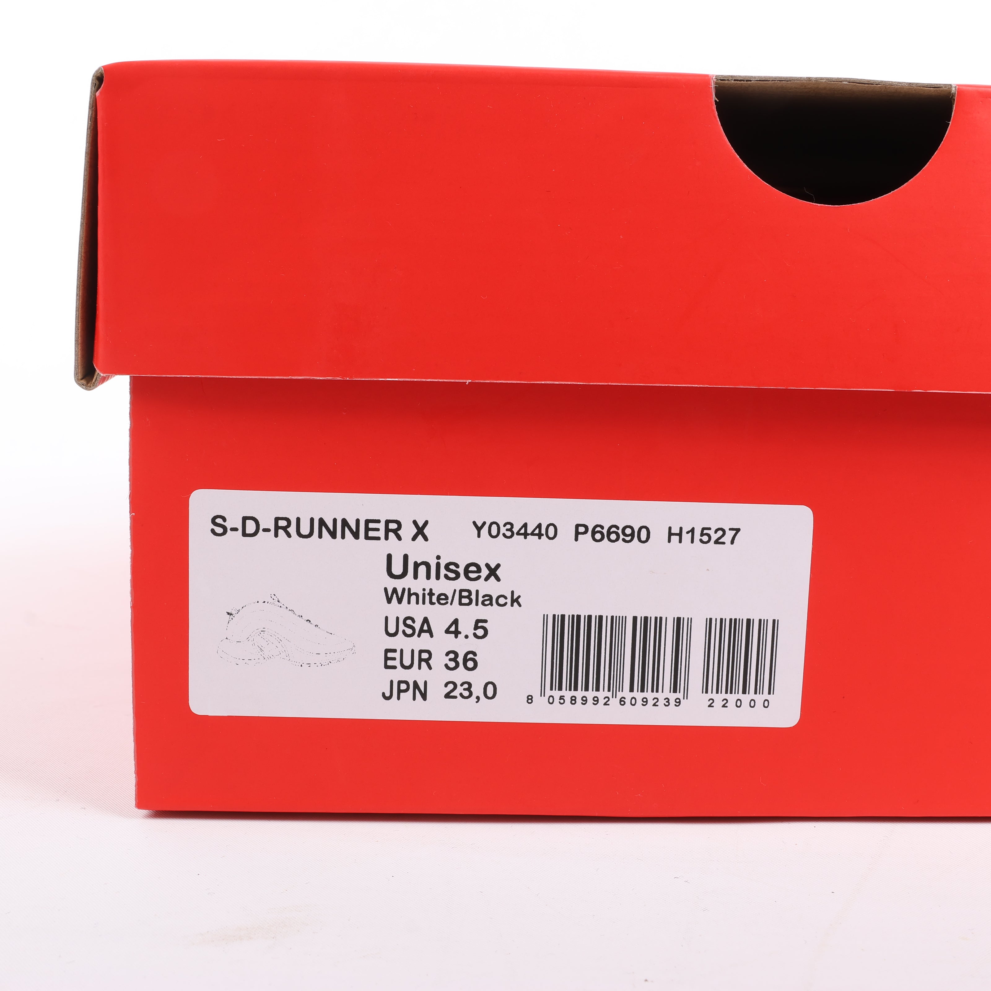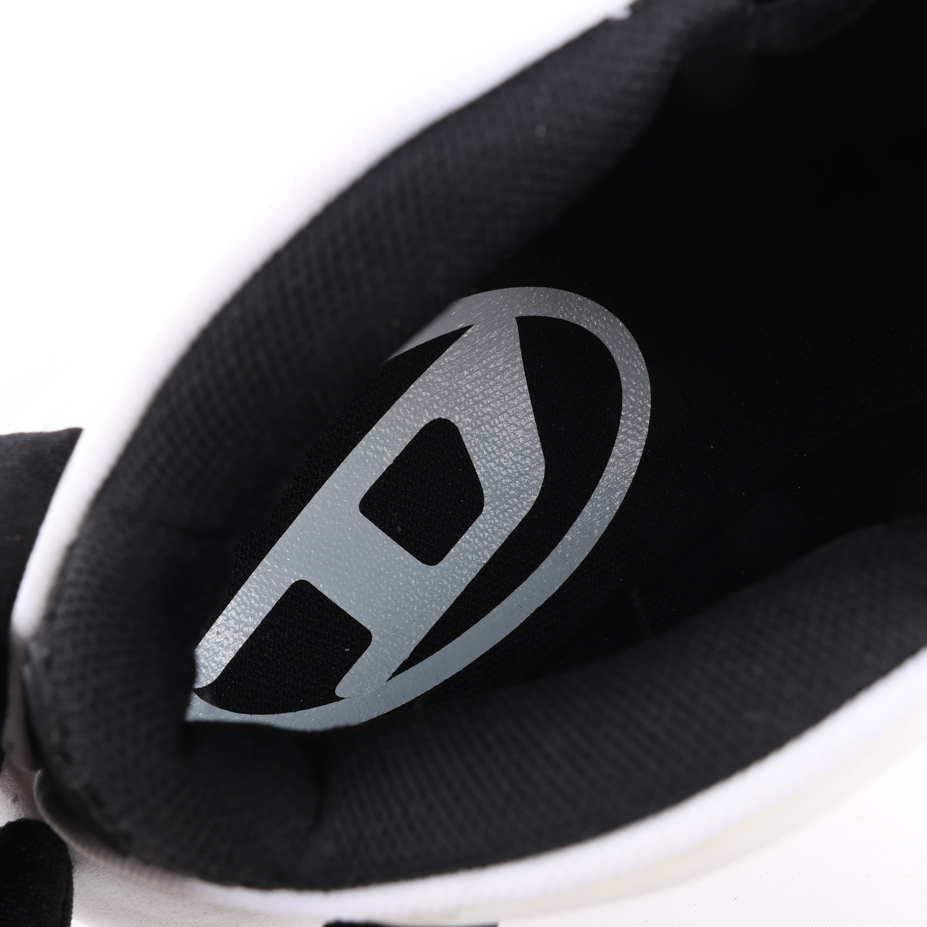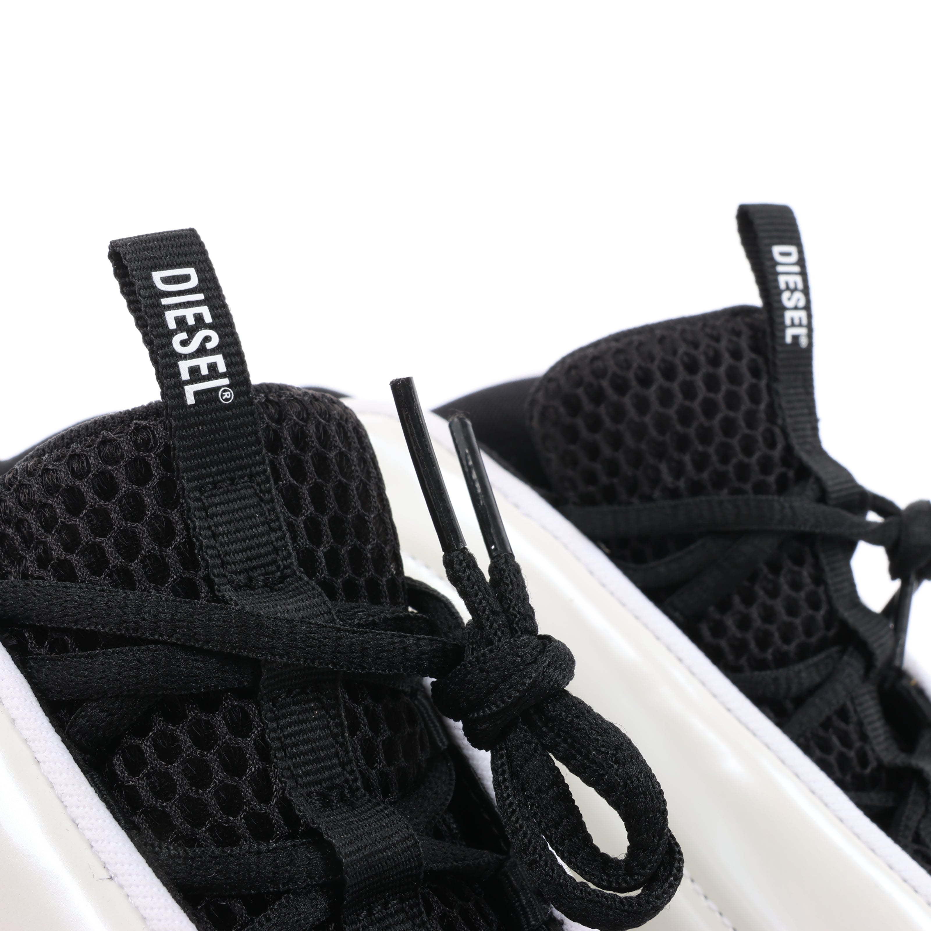 Diesel S-D-Runner Slip-on sneakers in sleek white with bold Oval D instep detail and black mesh accents. A futuristic, sculpted silhouette combining comfort and edgy street style. Size 36 EU.