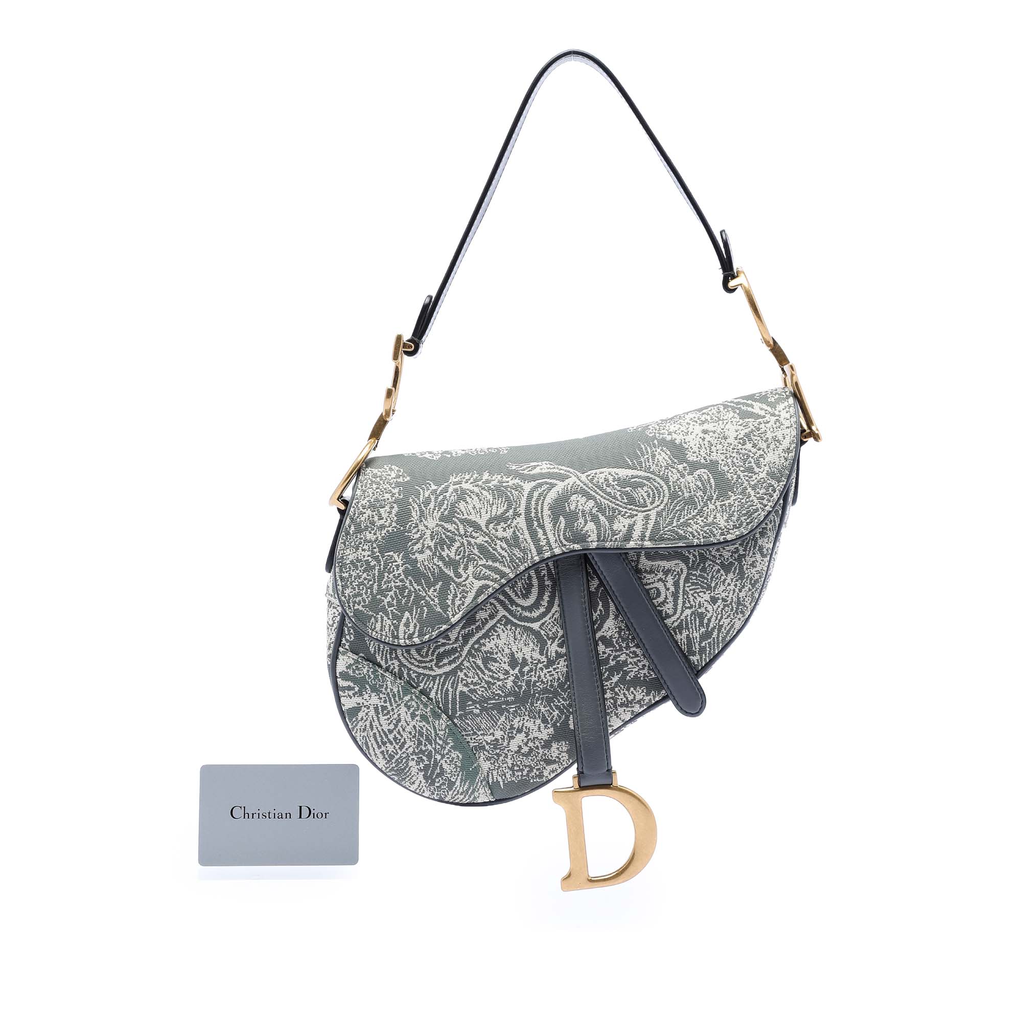 The Saddle features an embroidered canvas body, a flat strap, a front flap closure, an exterior back slip pocket, and an interior zip pocket. Inclusion: authenticity card. Retail Price: 3950.00