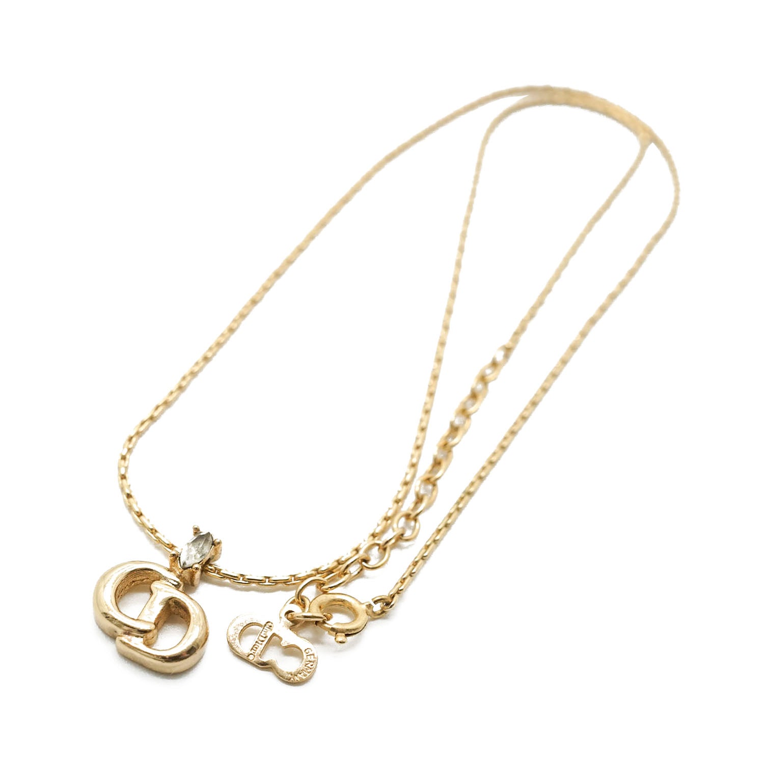 CD Logo Rhinestone Necklace Gold BrassHeight: 21.5cmWidth: 1.2cmDiscoloration: Slight tarnishScratch: Slight scratchesWorn: Minor signs of wearSKU: 6120049
