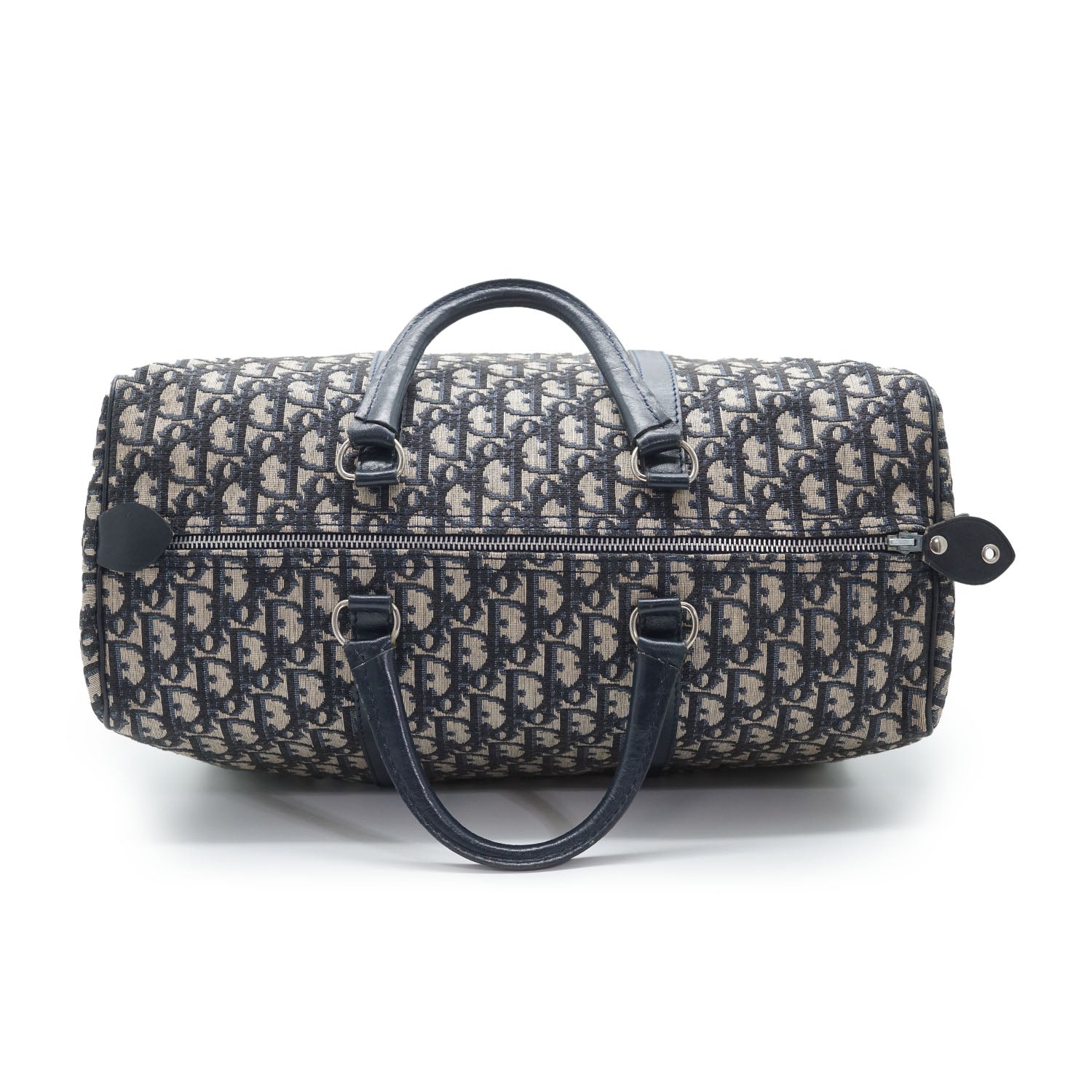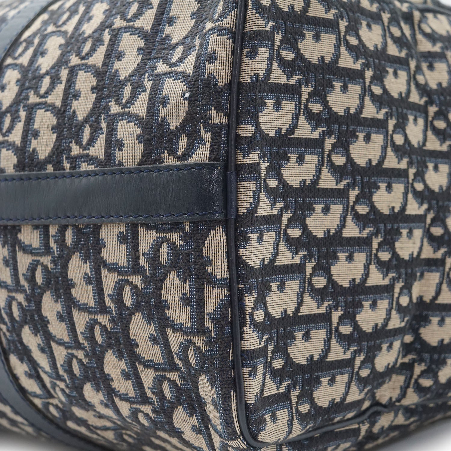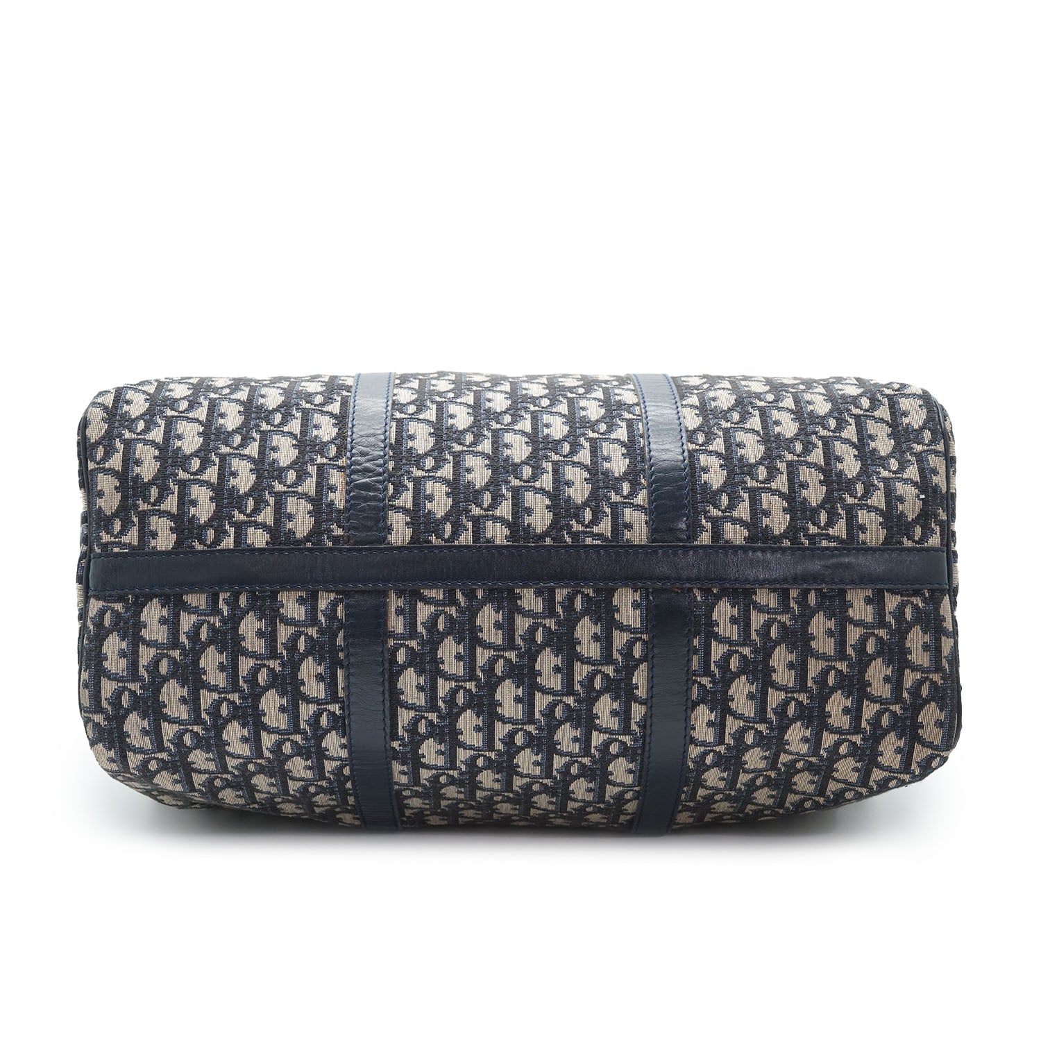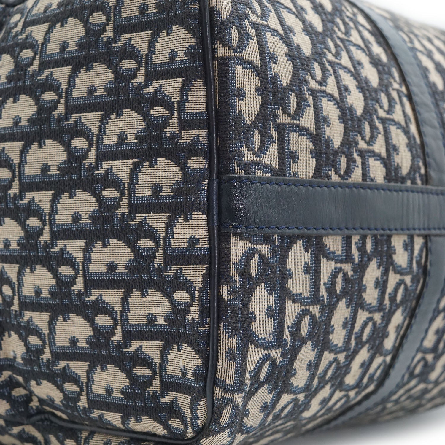 Christian Dior Bagages Trotter Boston Bag Navy Canvas, LeatherDepth: 17.5cmHeight: 23cmWidth: 40.5cmHand Drop: 13cmOutside Rank: ABInside Rank: BCStain: Brown spots throughout the inside fabric/inside pocketDiscoloration: Some hardware tarnishScratch: Slight scratches on the top handlesPeeling: Minor cracks on the leather piping on both sidesWorn: Visible signs of wear on the inside, minor signs of wear on the outsideOdor: No odor presentSKU: 7060141