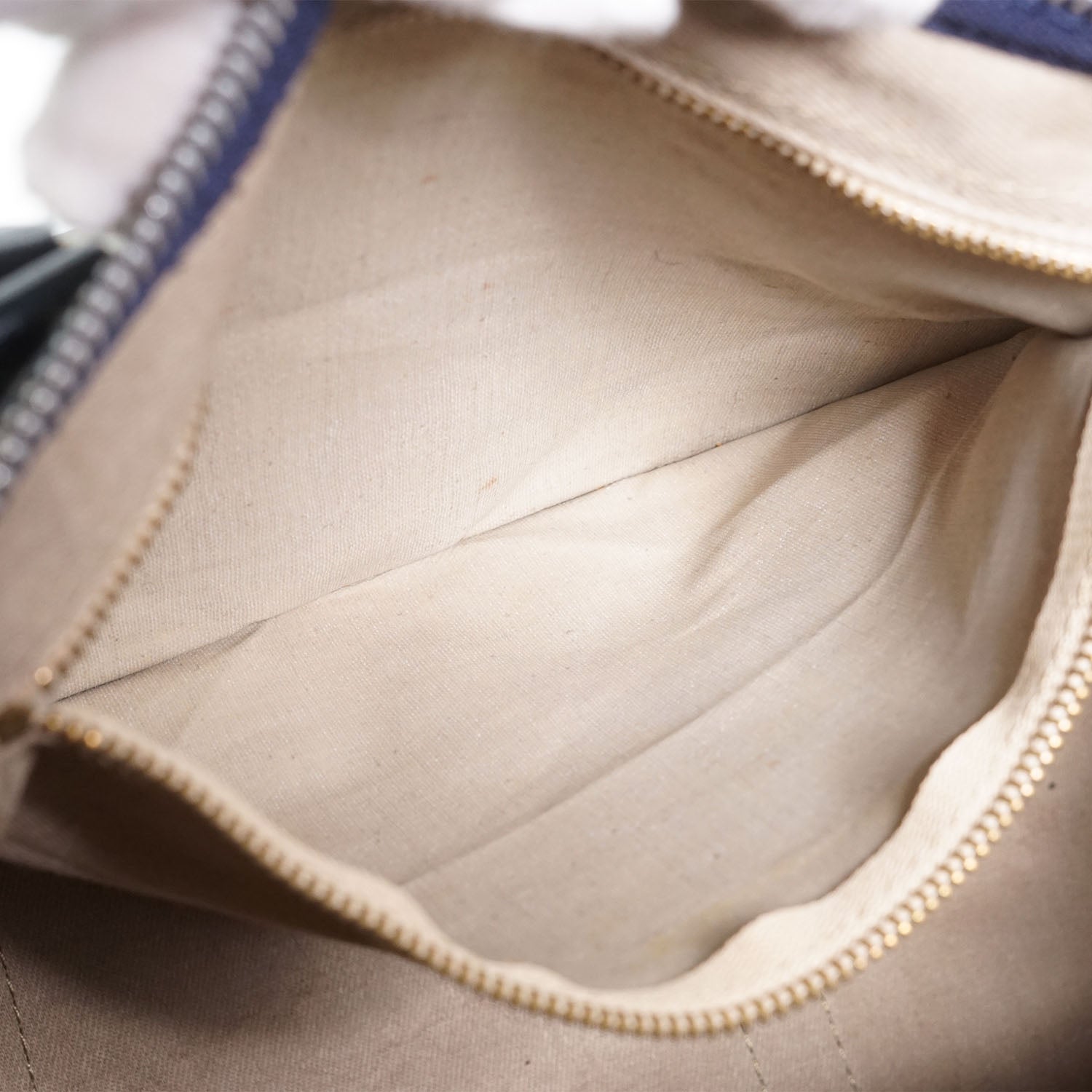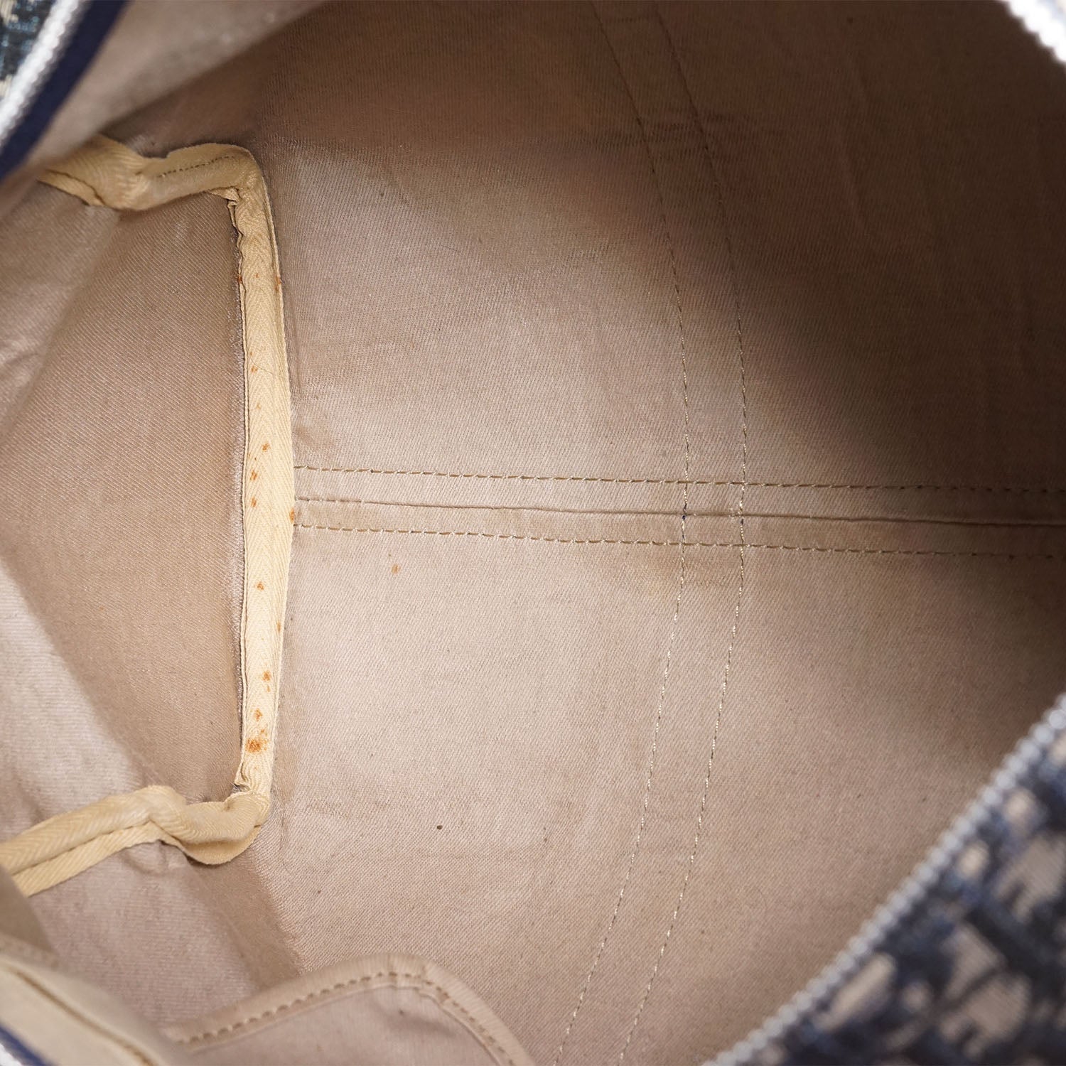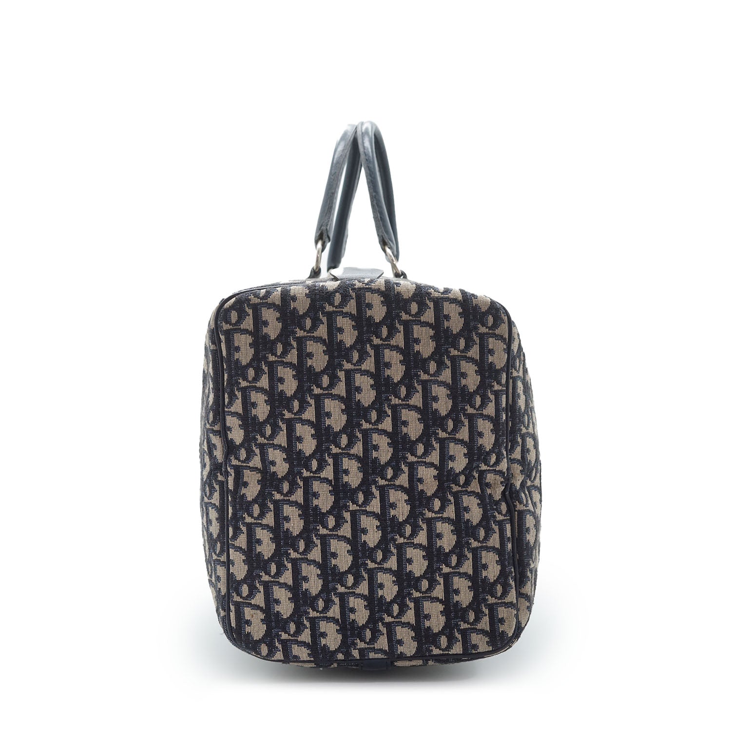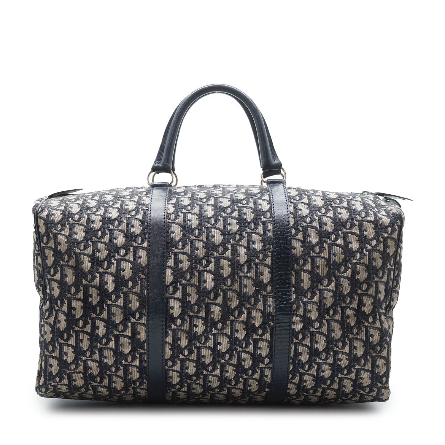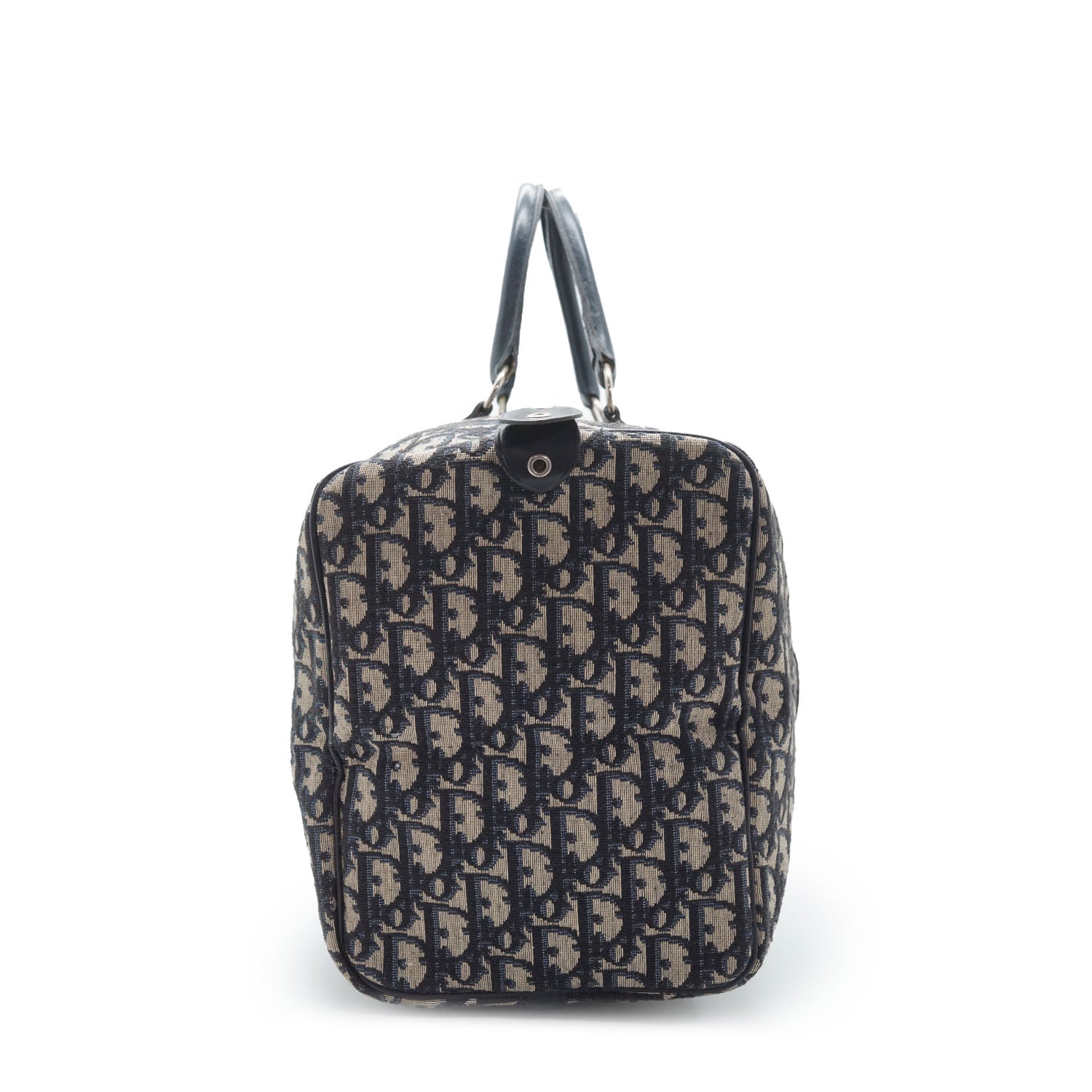 Christian Dior Bagages Trotter Boston Bag Navy Canvas, LeatherDepth: 17.5cmHeight: 23cmWidth: 40.5cmHand Drop: 13cmOutside Rank: ABInside Rank: BCStain: Brown spots throughout the inside fabric/inside pocketDiscoloration: Some hardware tarnishScratch: Slight scratches on the top handlesPeeling: Minor cracks on the leather piping on both sidesWorn: Visible signs of wear on the inside, minor signs of wear on the outsideOdor: No odor presentSKU: 7060141