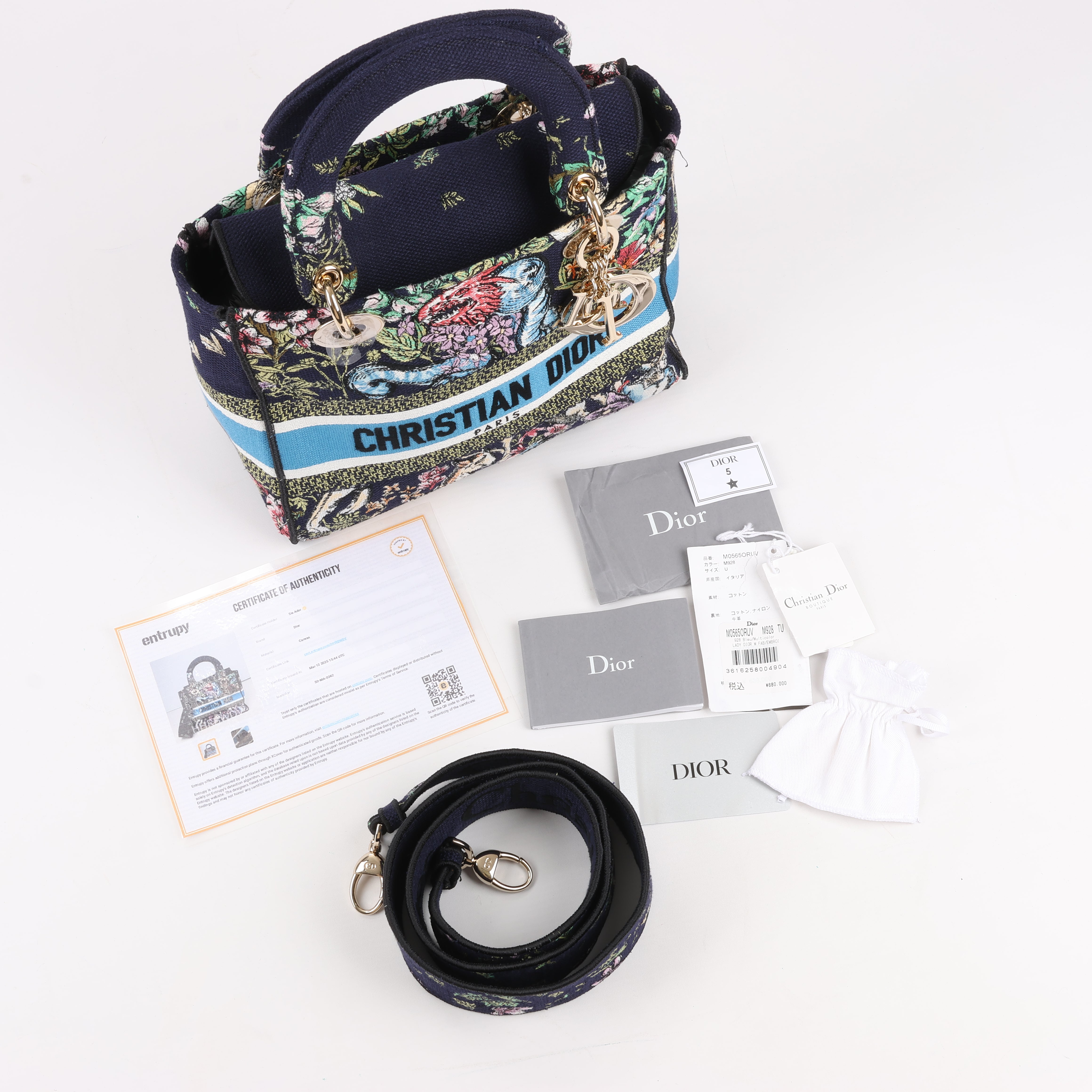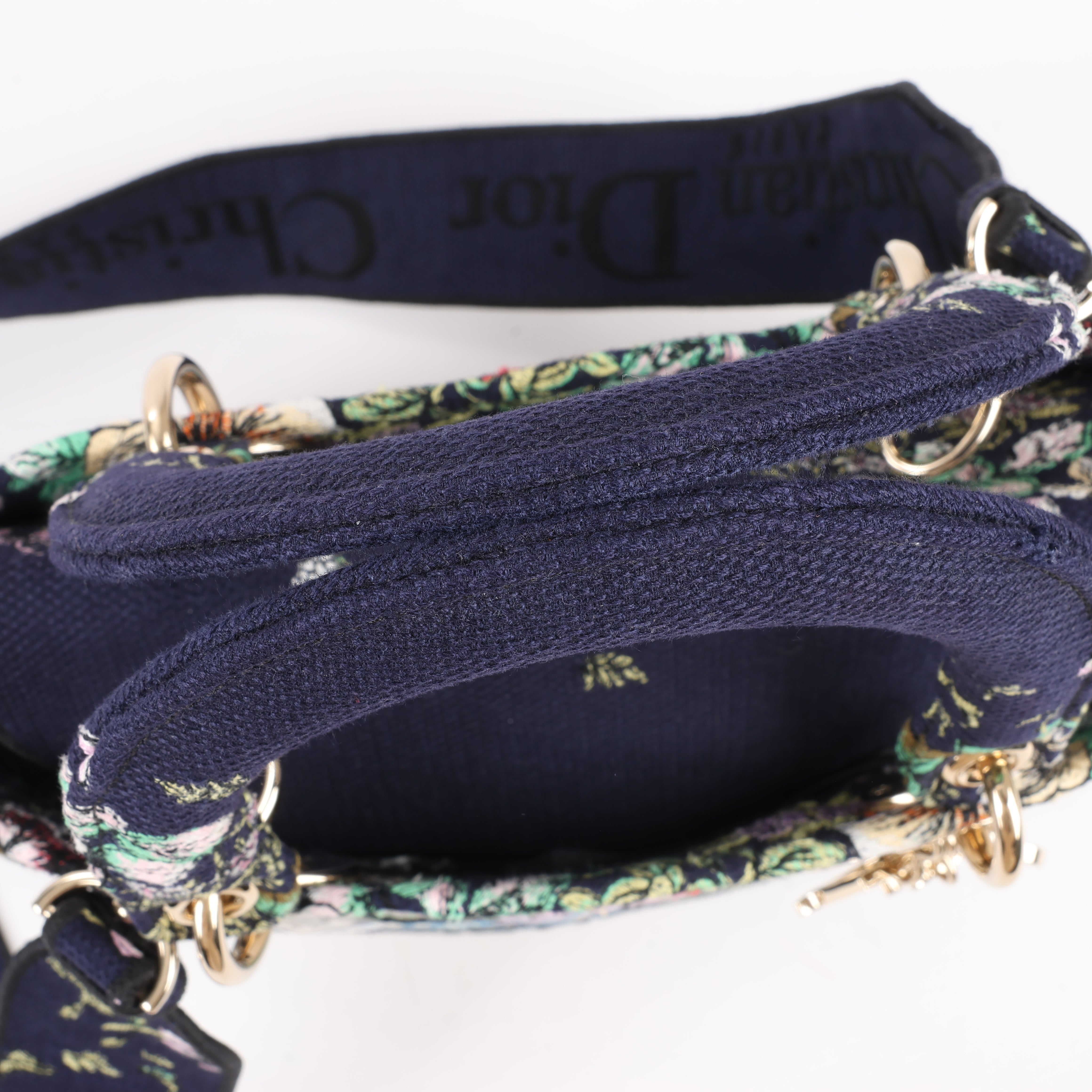 Brand: DiorModel: Lady D-LiteSize: MediumWidth: 23,5 cmHeight: 19.5 cm Exterior Condition: ExcellentInterior Condition: Excellent Condition Details: Exterior is clean and beautiful in very good condition. The handles are clean and firm. Hardware is still shiny and crisp with hairline surface scratches. The interior lining is clean and in excellent condition.Colour: MulticolorInterior Colour: MulticolorHardware Colour: GoldMaterial: ClothComes With: Shoulder strap, paper, tag, chain dustbag, Entrupy certidicate
