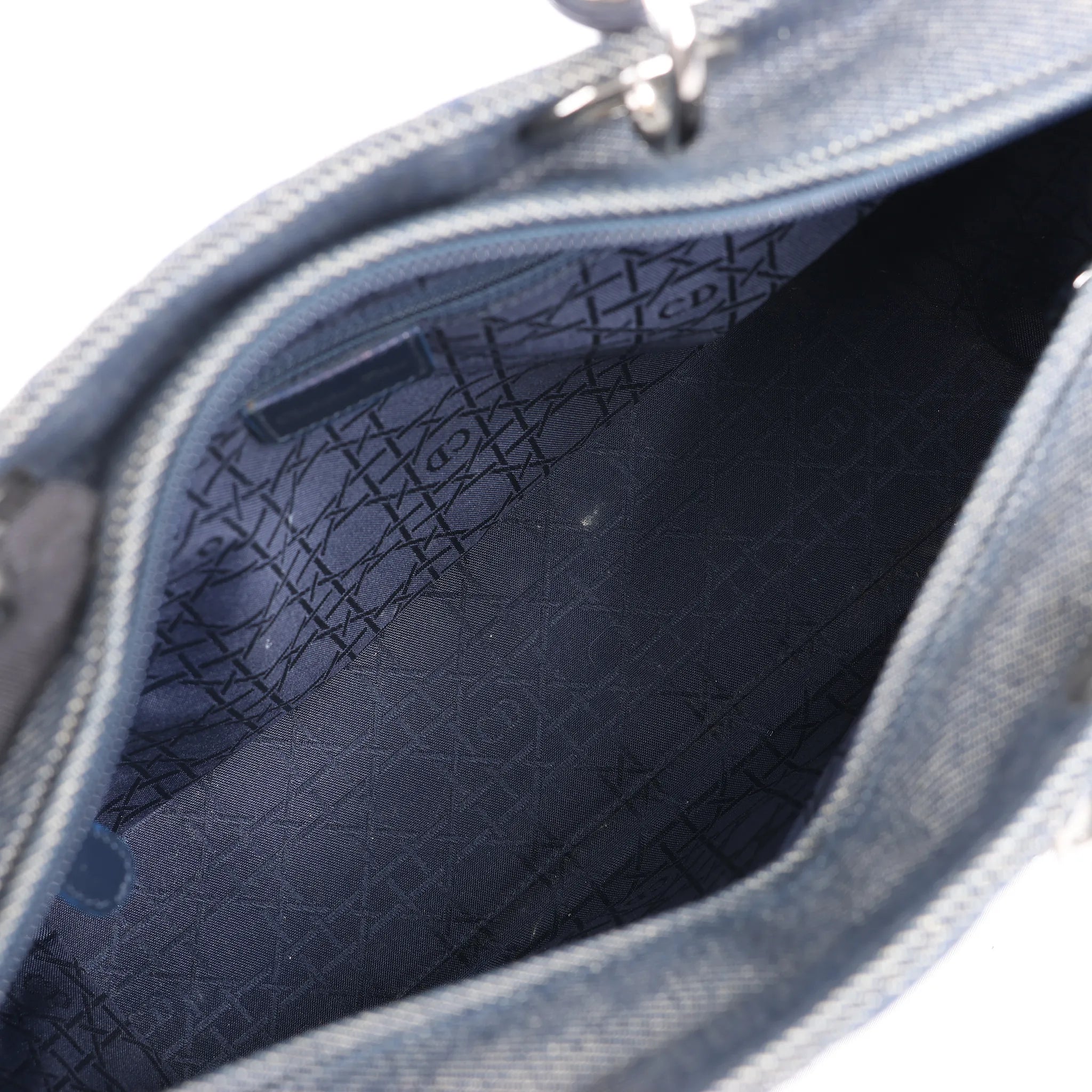 Brand: DiorModel: Lady DiorSize: LargeWidth: 31 cmHeight: 25.5 cmExterior Condition: ExcellentInterior Condition: ExcellentCondition Details: The exterior is clean and in excellent condition. The handles are in great condition with light creases. The hardware has surface scratches but is crisp and bright with hairline scratches. The interior is and in great condition, except some stains.Colour: Navy BlueInterior Colour: Navy BlueHardware Colour: SilverMaterial: DenimComes With: Brand paper