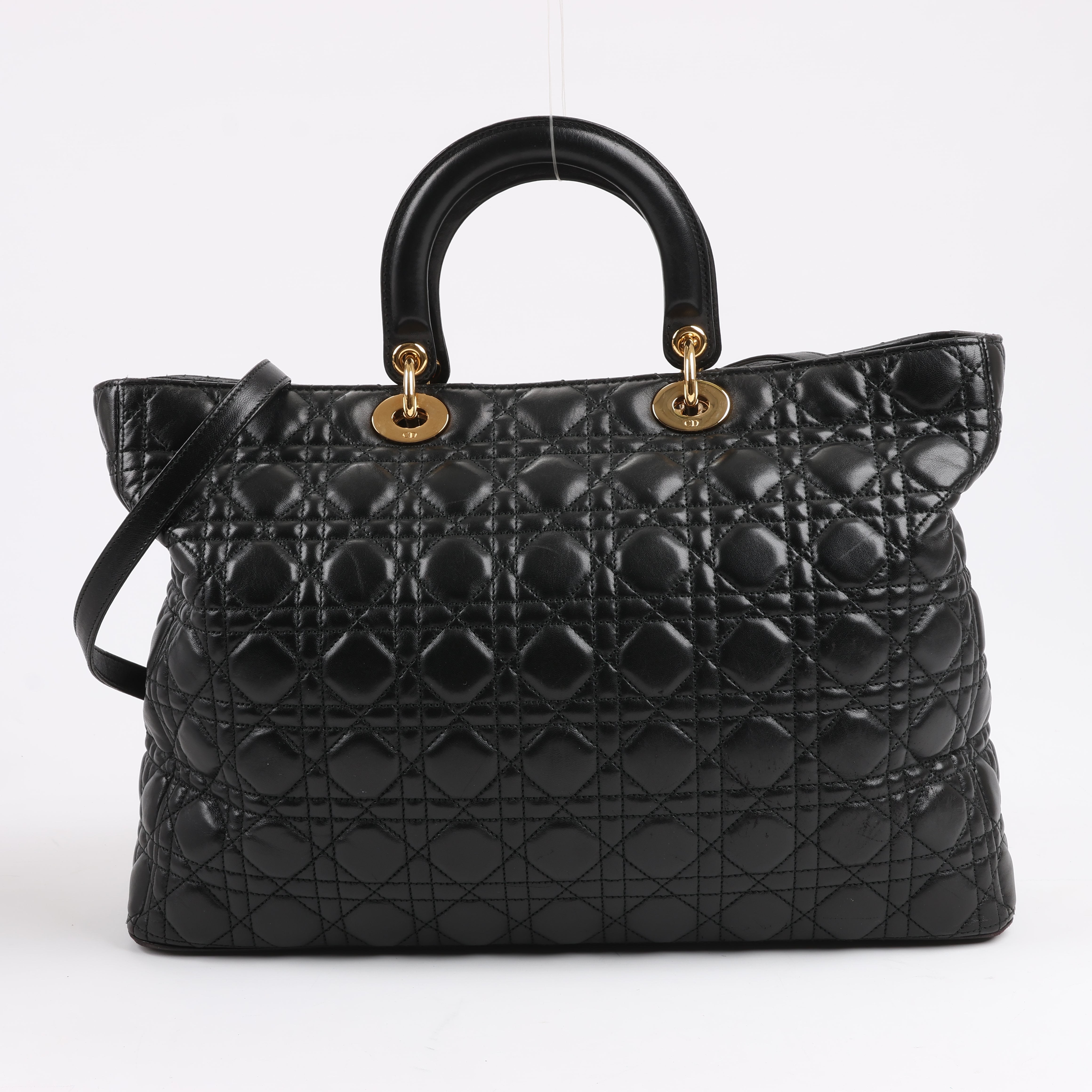 Dior Dior Lady Dior Large Cannage Leather 2Way Handbag in Black