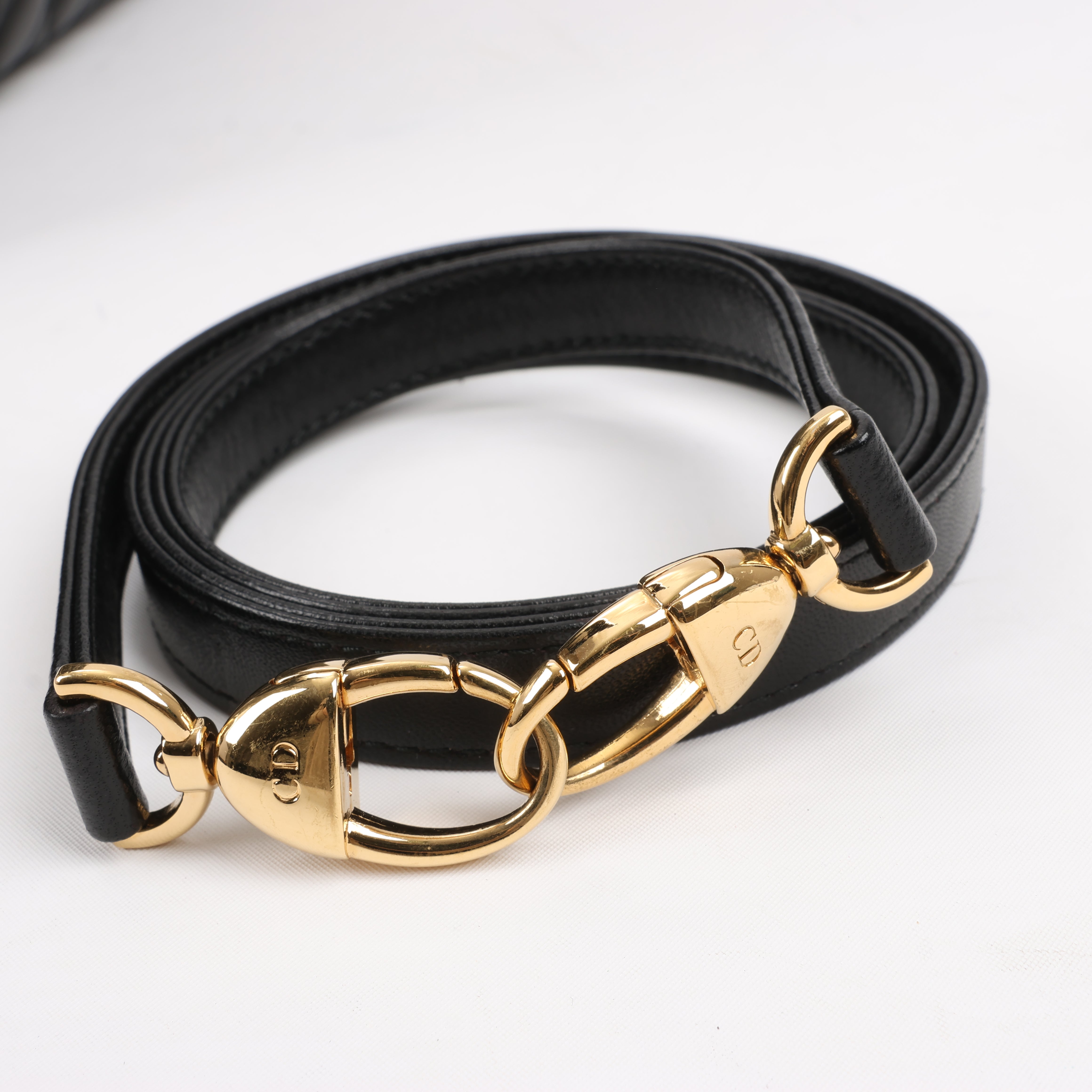This Dior Lady Dior Large handbag in black Cannage leather exudes timeless elegance. Featuring signature gold-tone charms, top handles, and a detachable strap for versatile wear, it’s the perfect blend of sophistication and practicality. A true luxury icon!