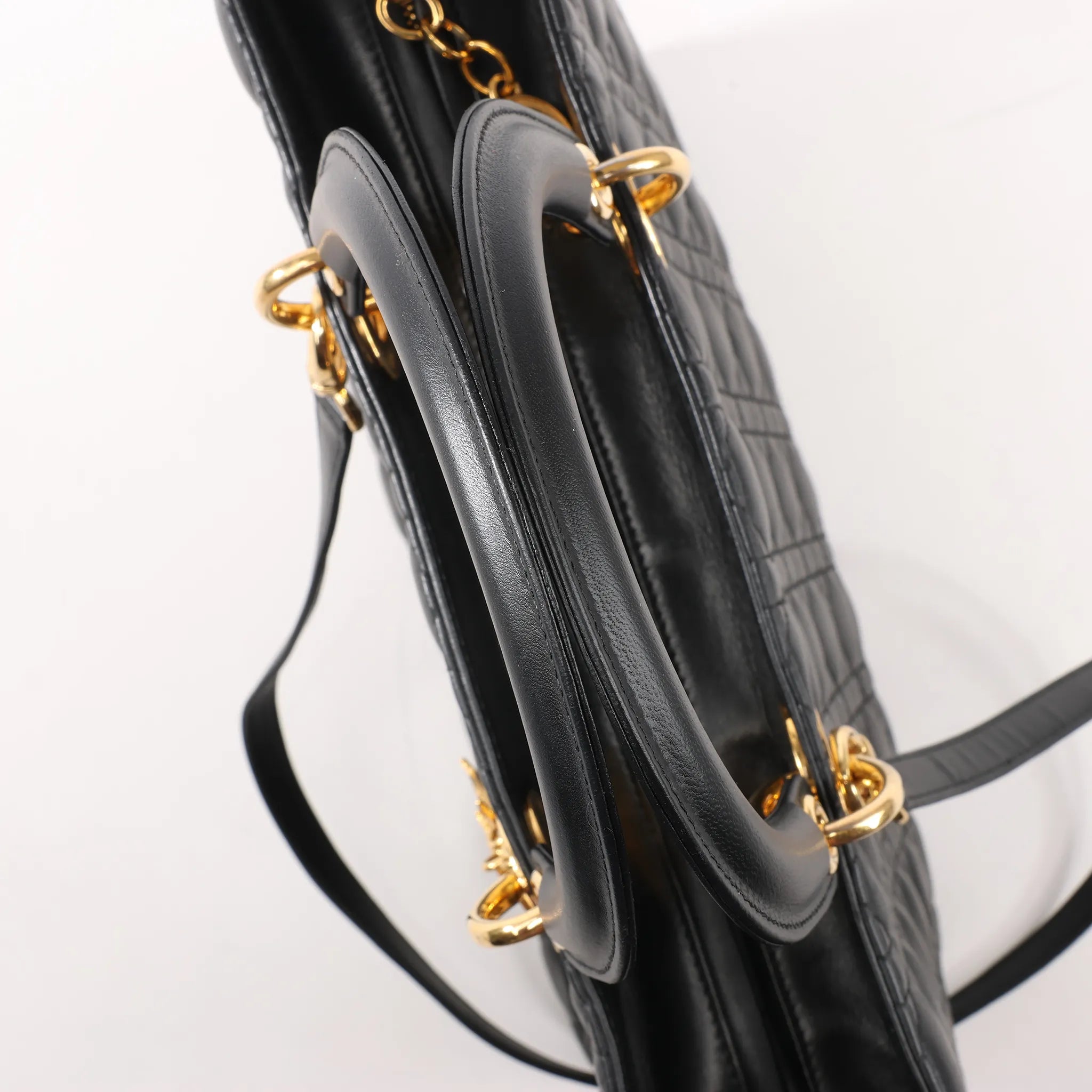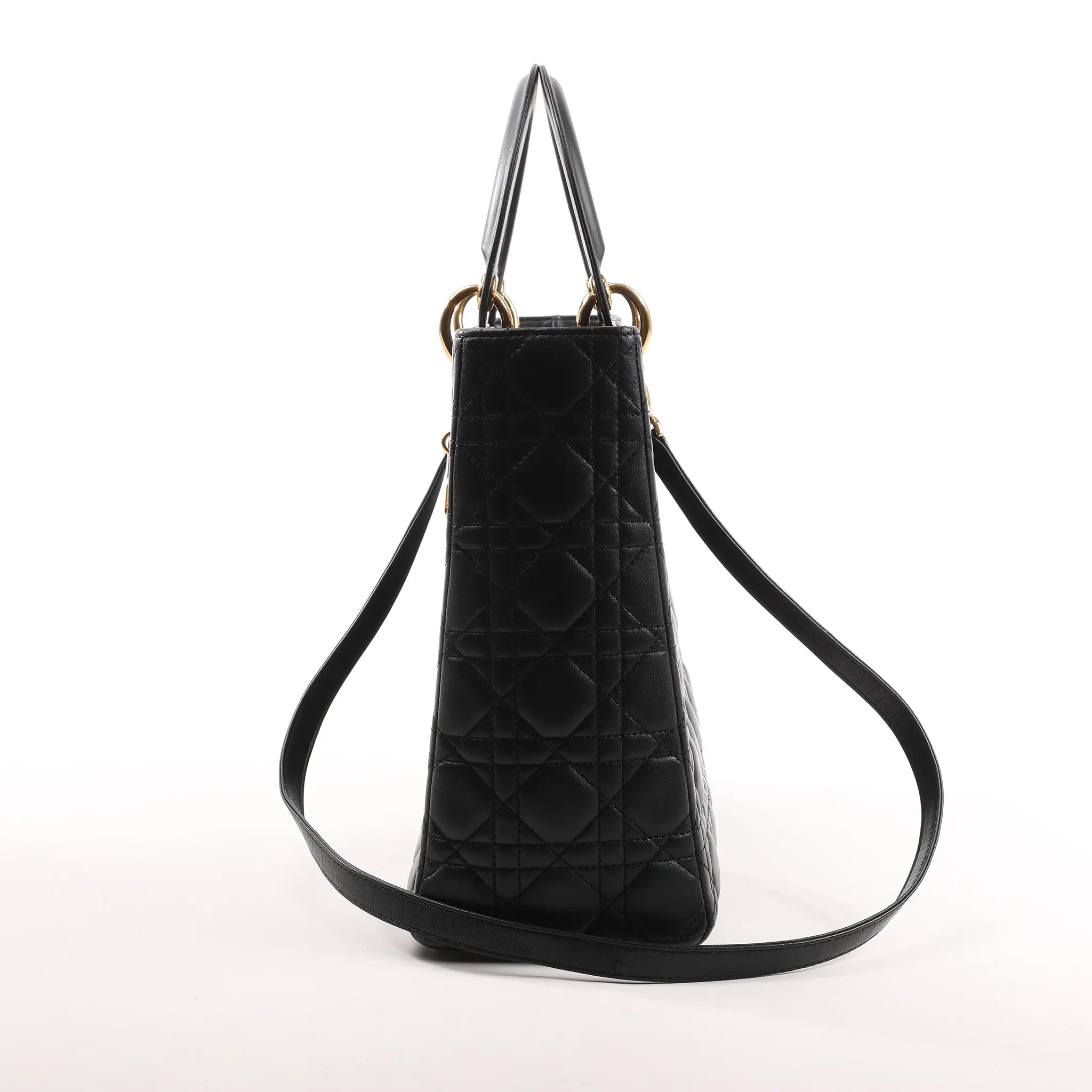 Dior Dior Lady Dior Large Cannage Leather 2Way Handbag in Black