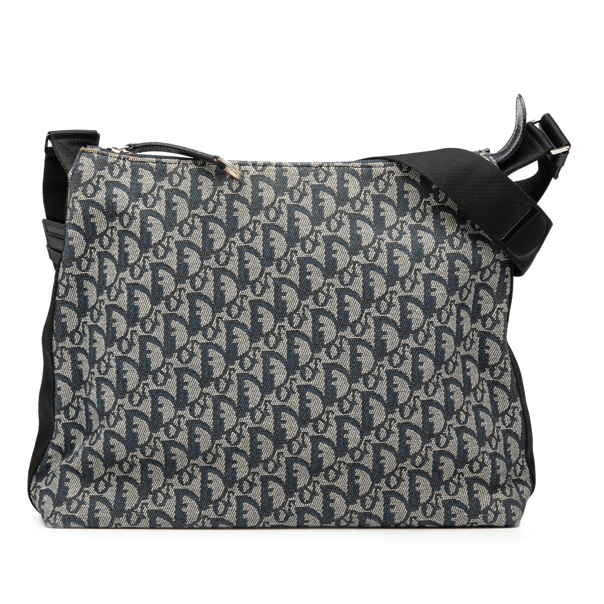 This crossbody bag features a canvas body, an adjustable flat shoulder strap, a top zip closure, and an interior zip pocket. Retail Price: 1245.00