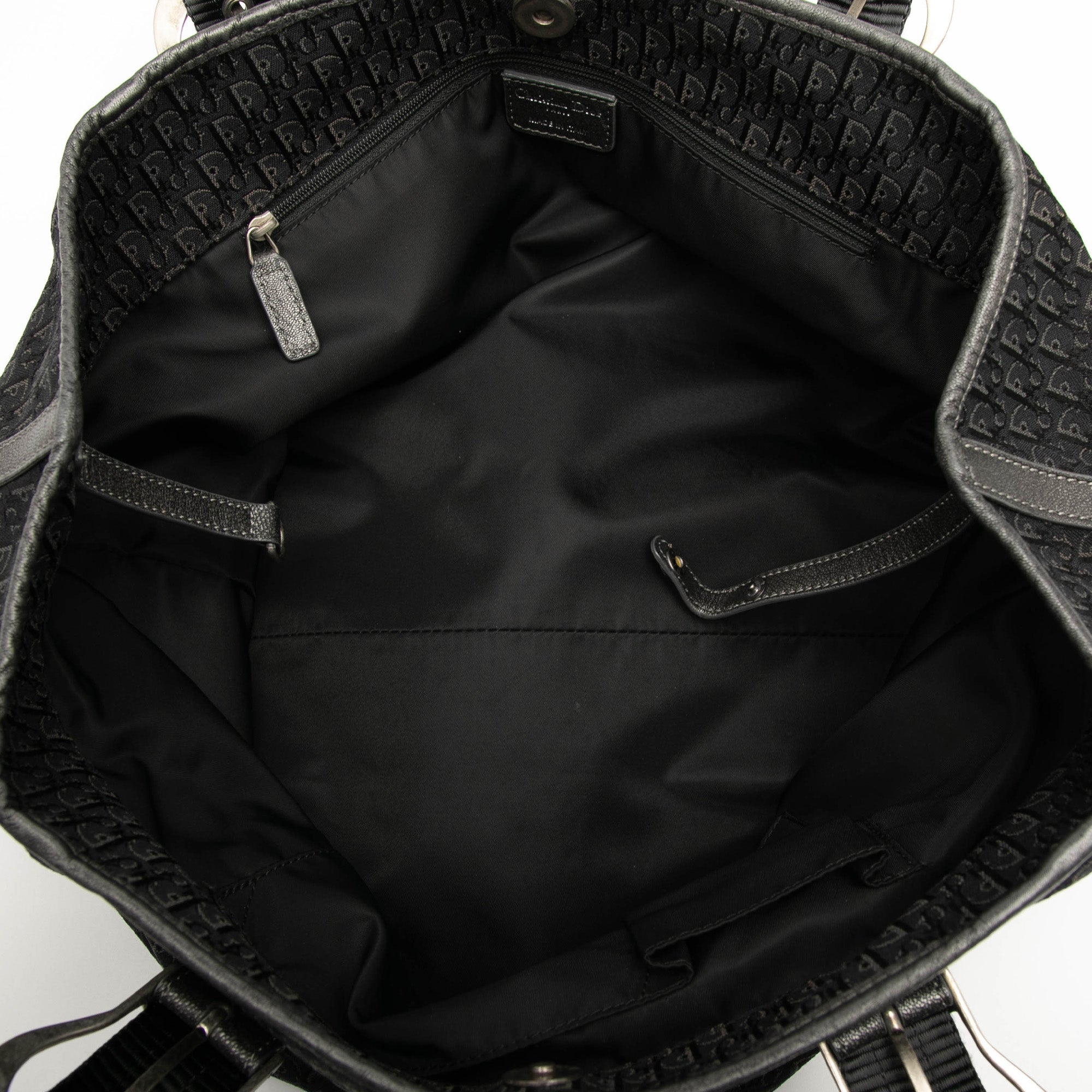 This tote bag features a canvas body with leather trim, rolled leather handles, an open top with snap closure, and interior zip and slip pockets. Retail Price: 995.00
