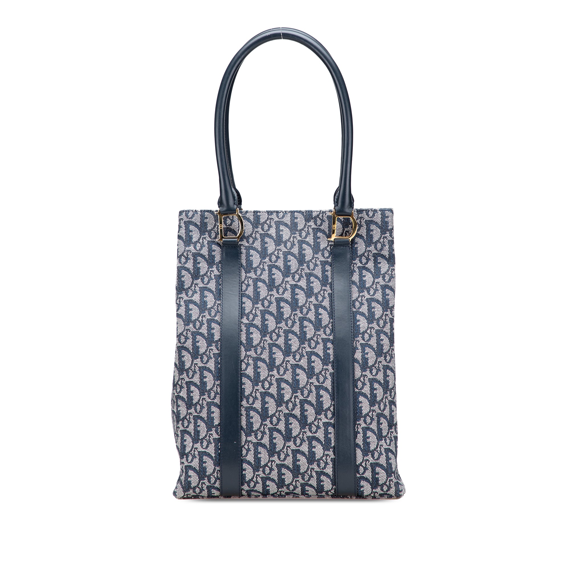 This tote bag features a canvas body with leather trim, rolled leather handles, an open top with magnetic snap closure, and interior zip and slip pockets. Retail Price: 1399.00