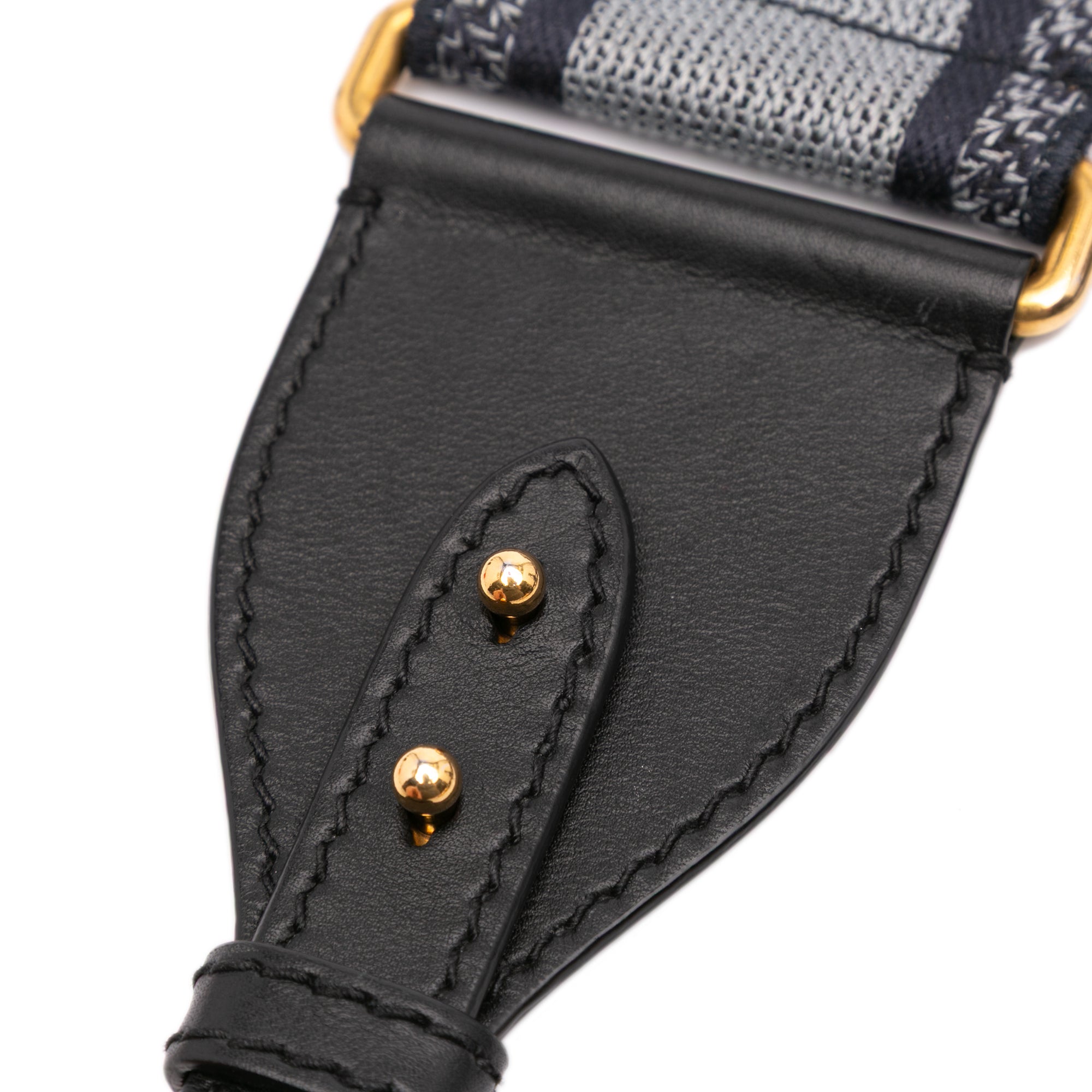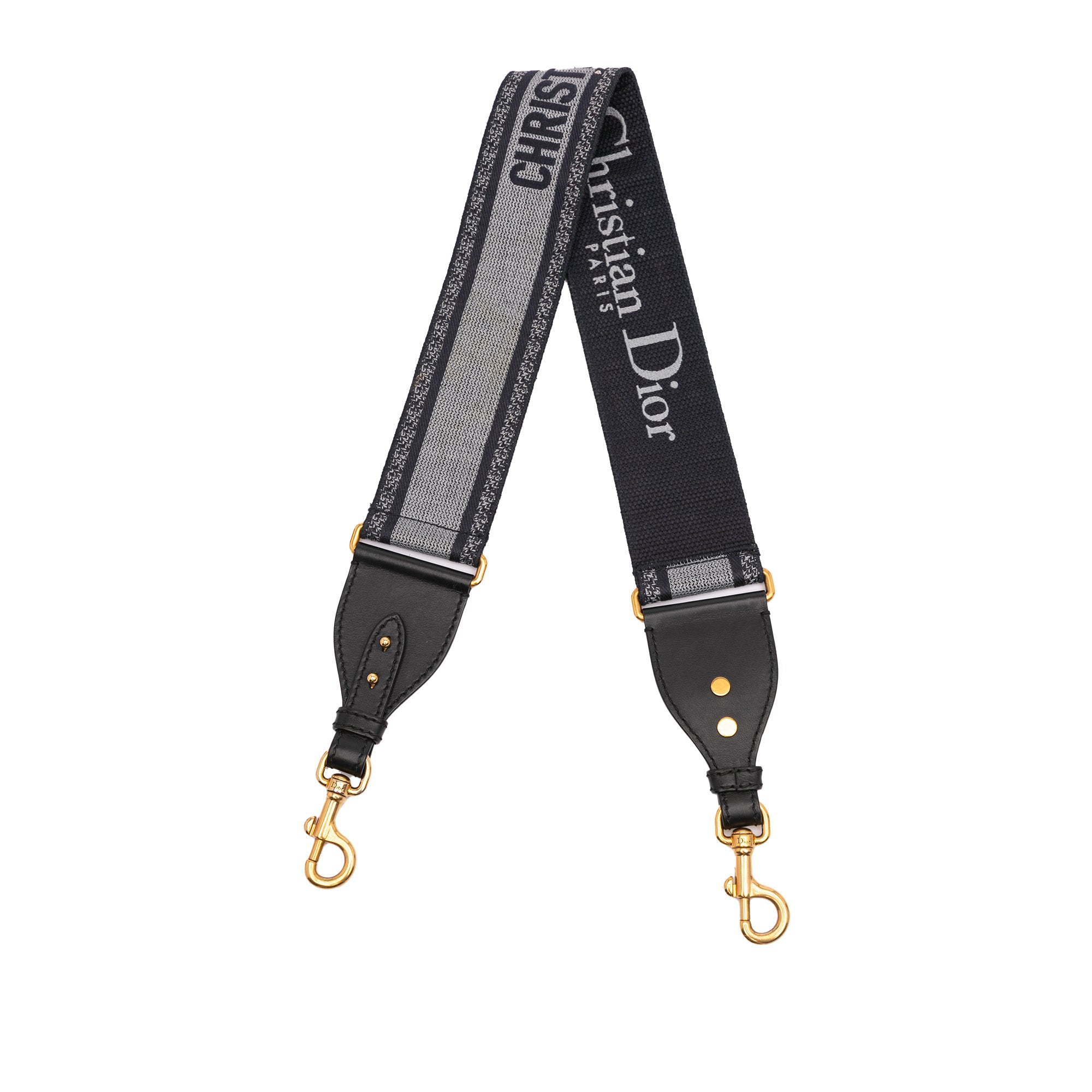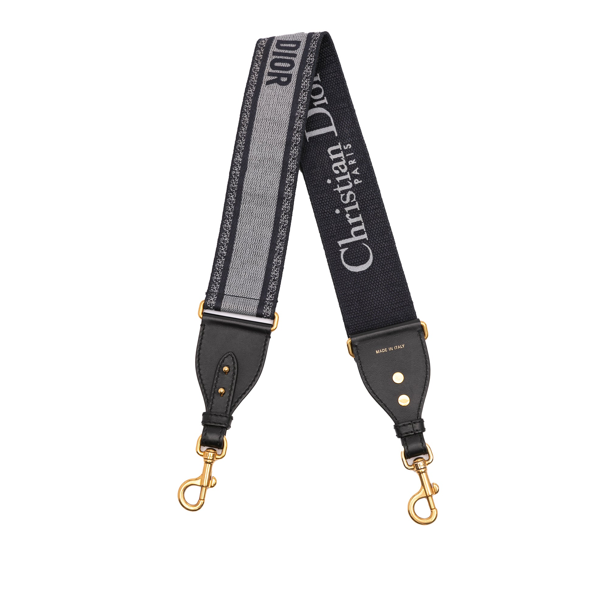 This strap features an embroidered canvas body with leather trim and gold-tone hardware. Retail Price: 1050.00