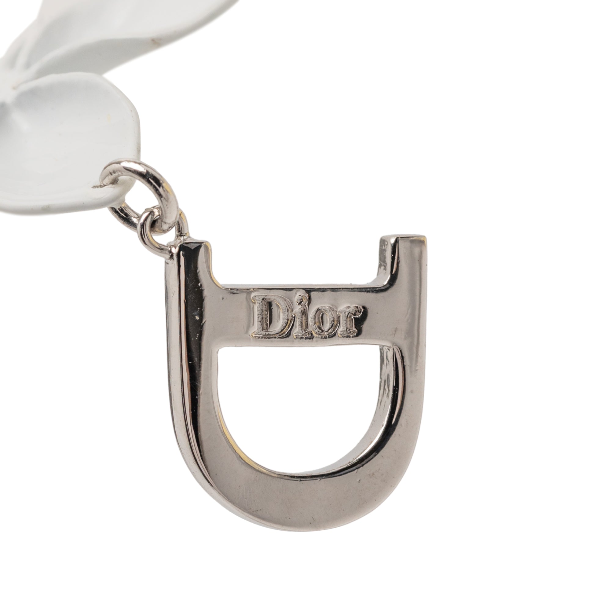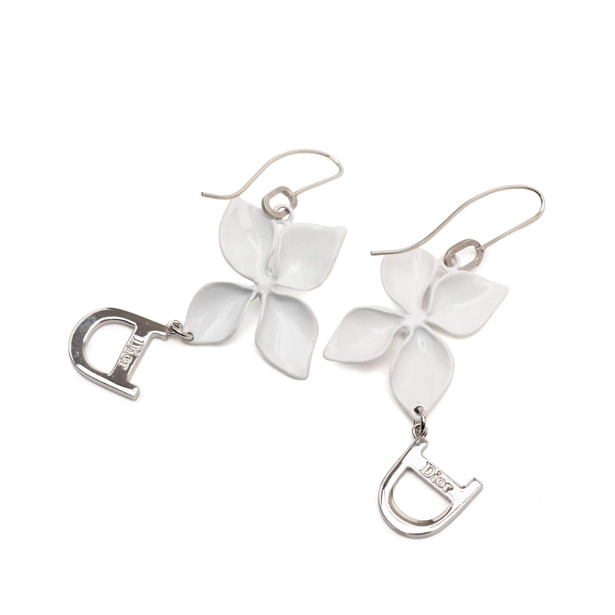 Dior Enamel Rhinestone Flower Logo Drop Hook Earrings