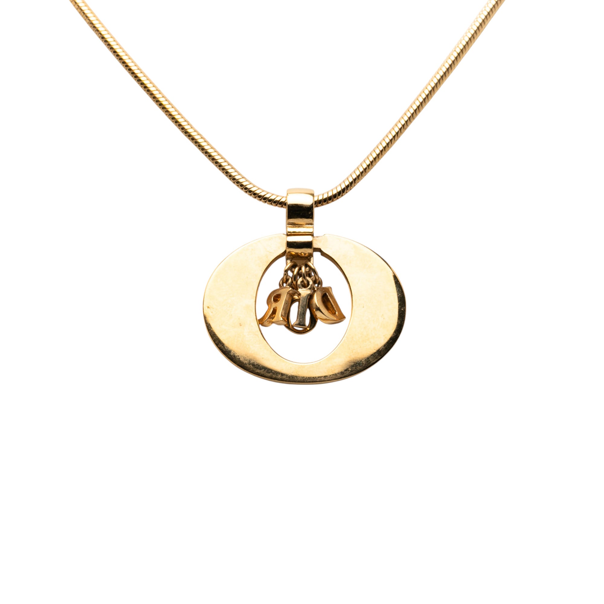 This necklace features a gold-plated metal body, gold tone chain with CD logo and a lobster clasp closure. Retail Price: 350.00