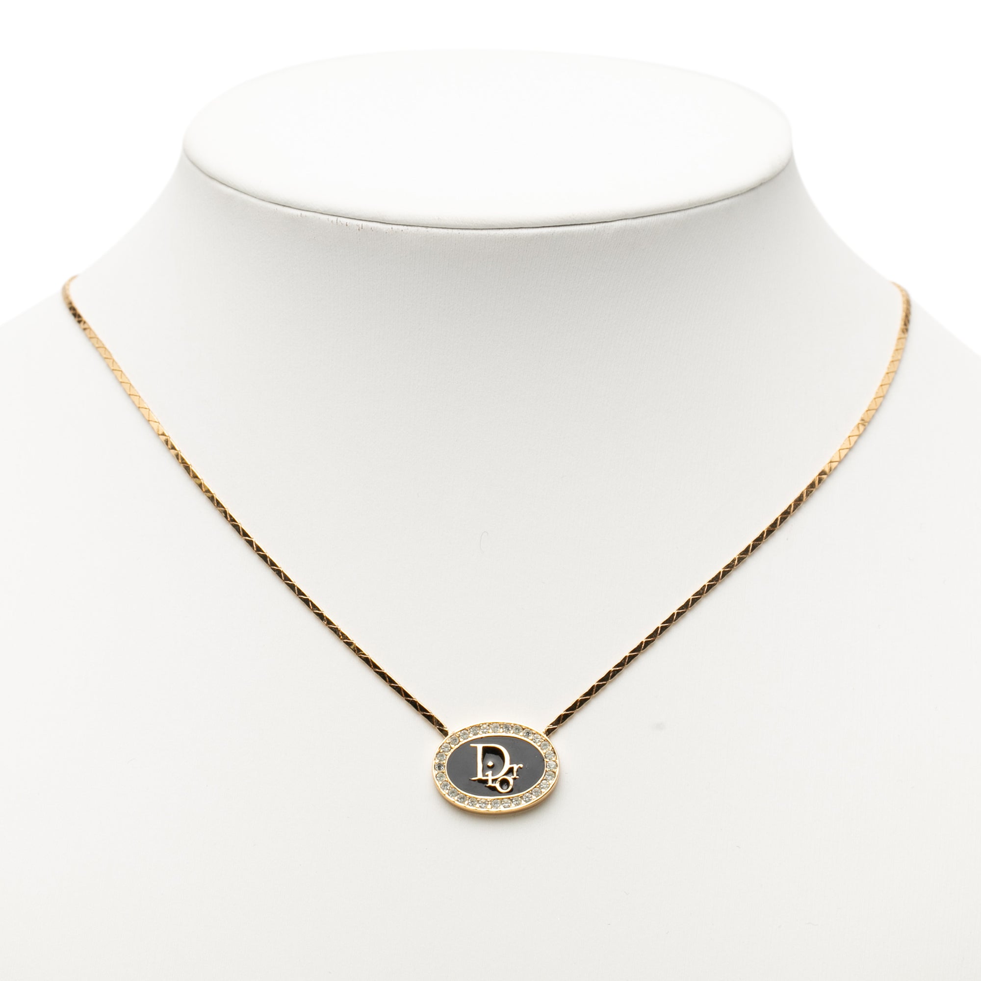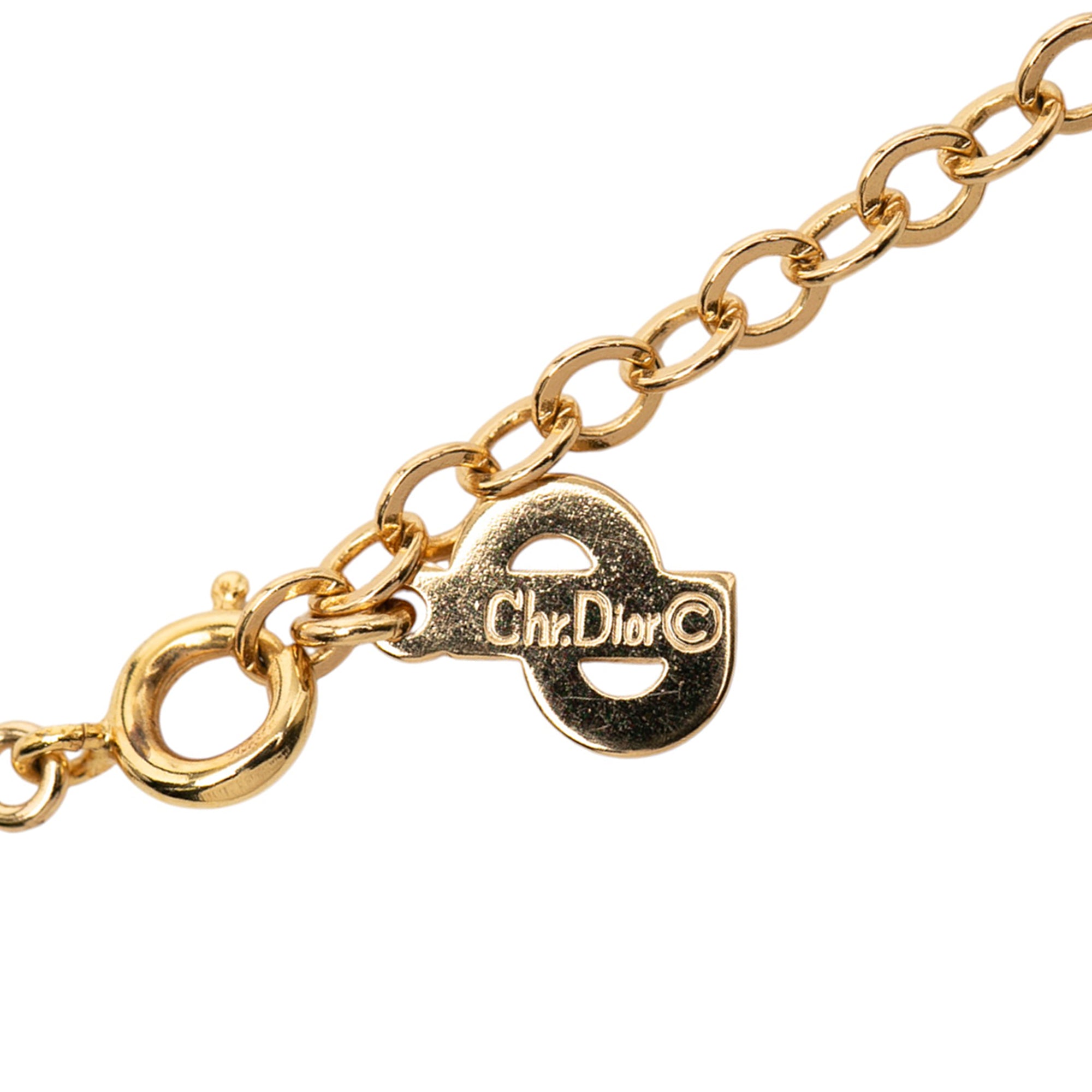 Dior Gold Plated Rhinestone Logo Pendant Snake Chain Necklace