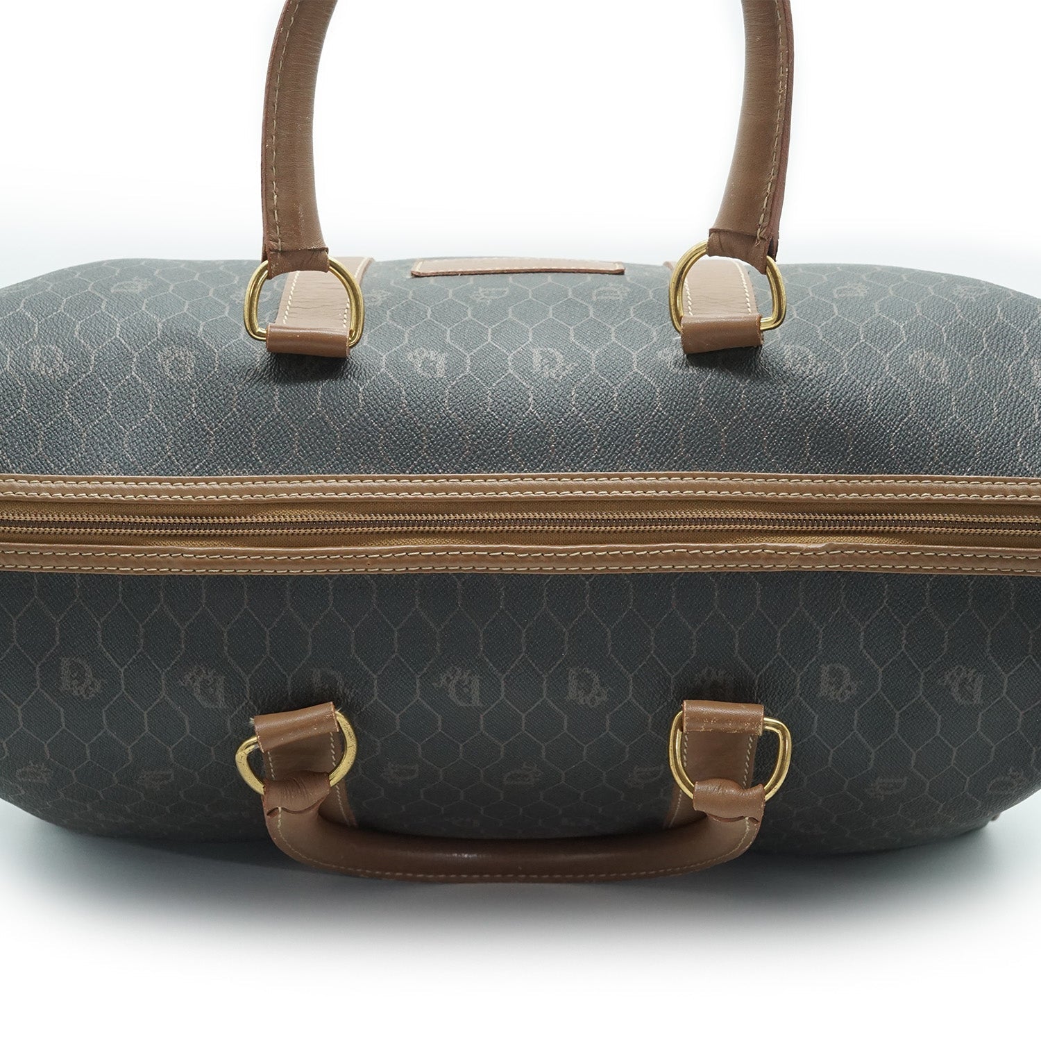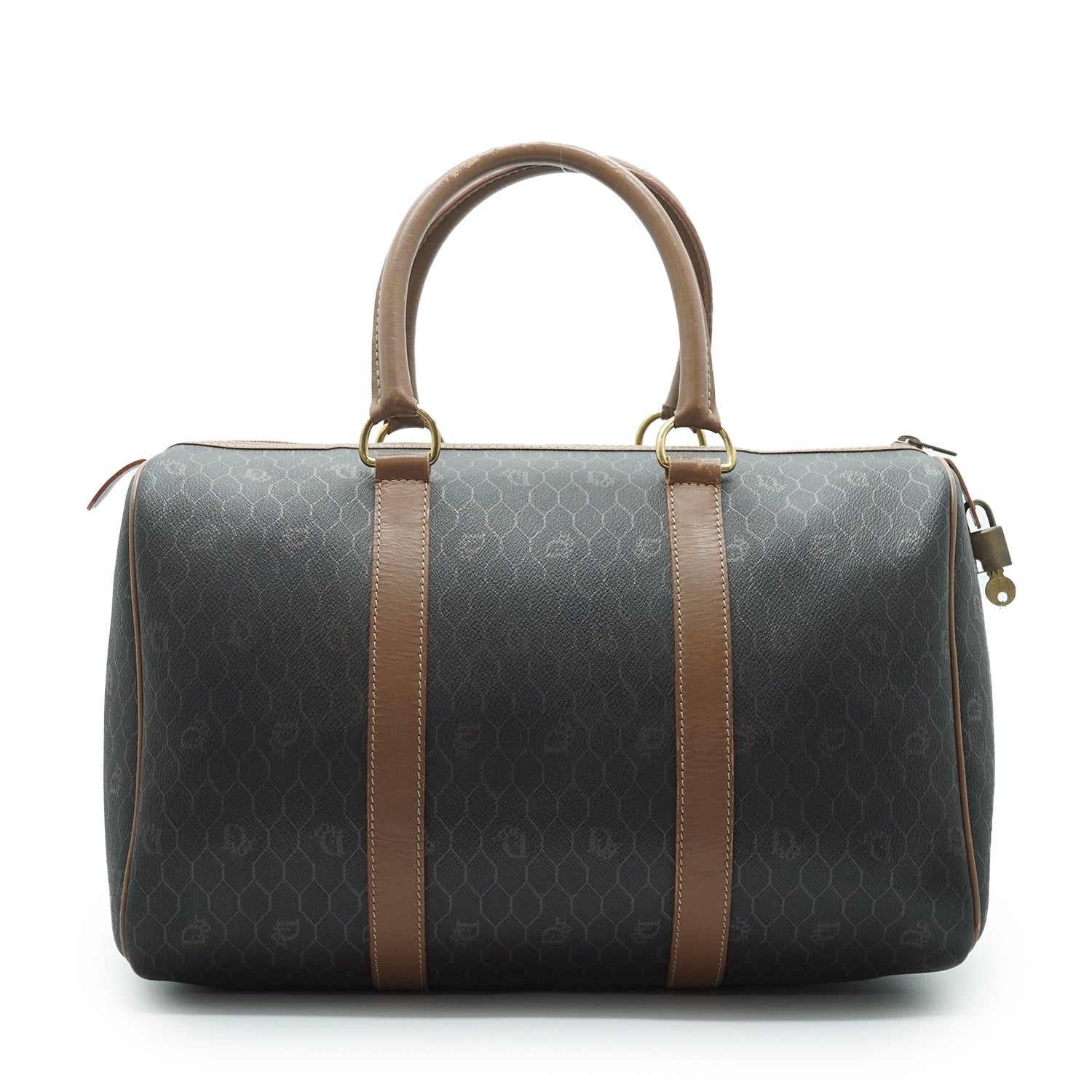 Honeycomb Boston Bag Brown Canvas, LeatherDepth: 19.5cmHeight: 22.5cmWidth: 37cmHand Drop: 12cmOutside Rank: BInside Rank: BDiscoloration: Hardware tarnishScratch: Minor corner rub on one side, some scratches on the leather parts (top handles, side leather tabs near the zipper)Peeling: Some creasing on the leather partsWorn: Some signs of wear on the leather parts and hardwareOdor: Slight storage smellInclude: Padlock, keySKU: 7040115