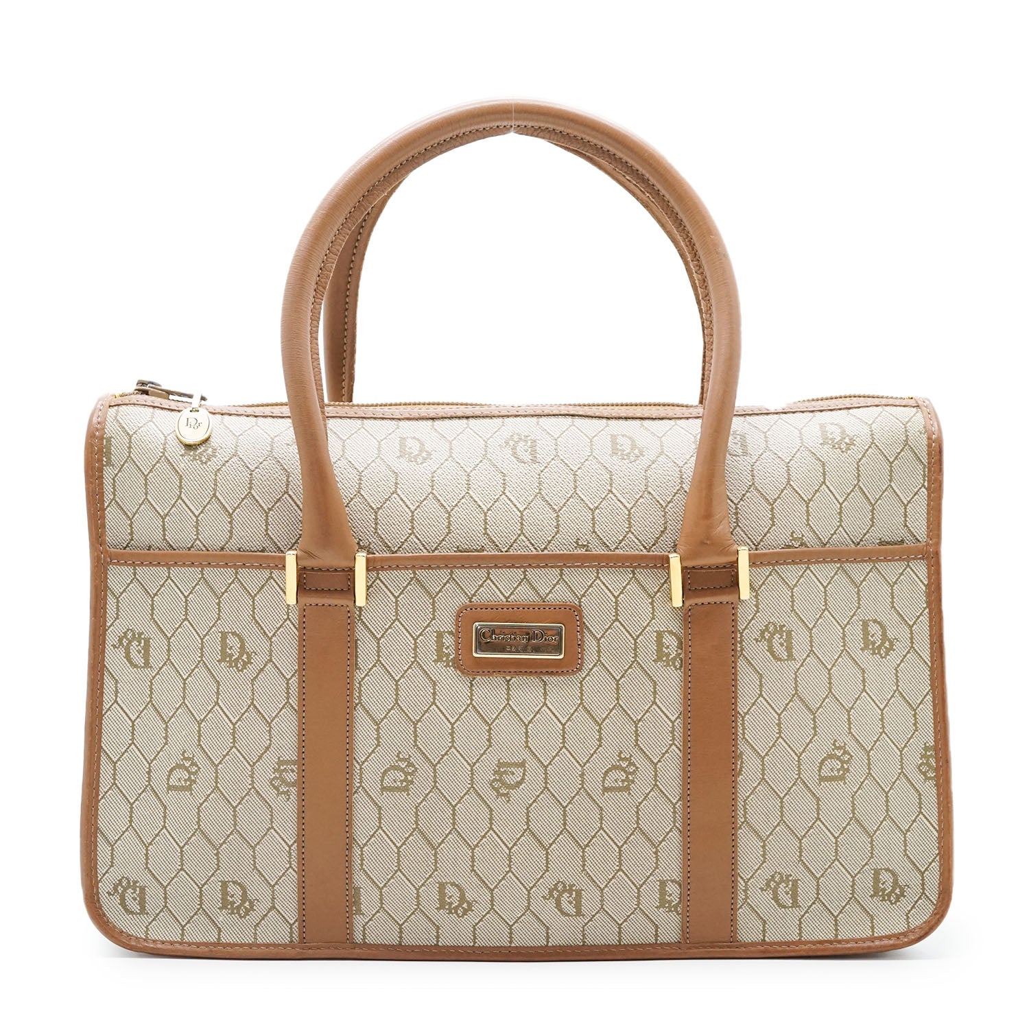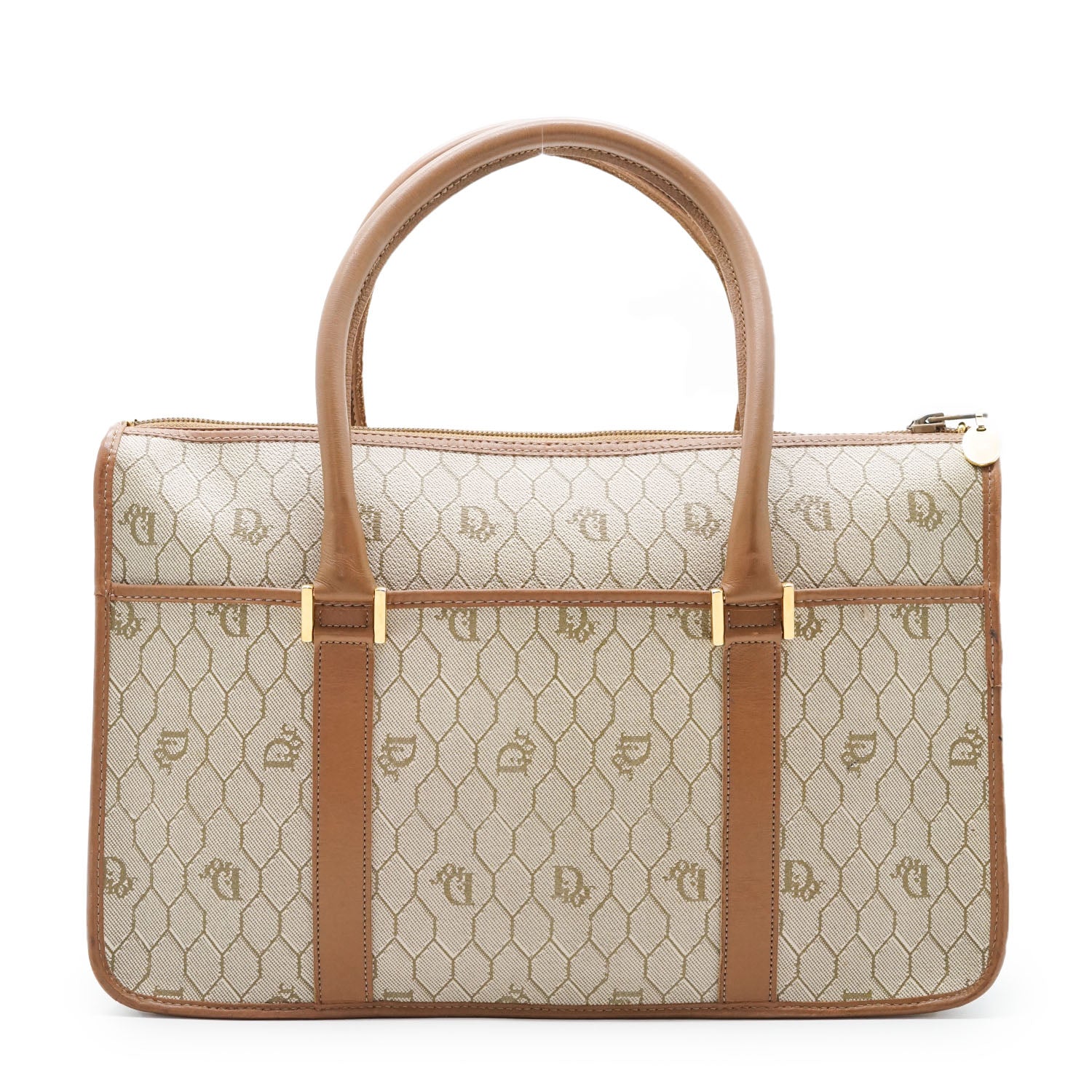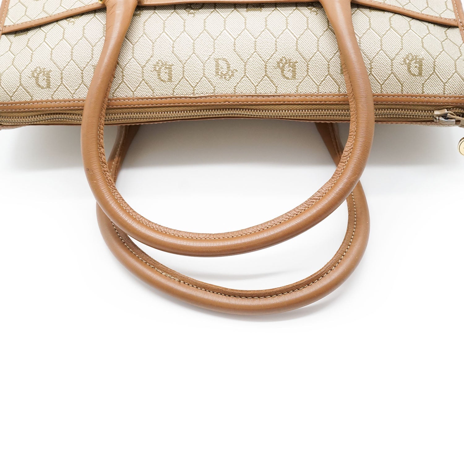 Honeycomb Top Handle Bag Brown Canvas, LeatherDepth: 6cmHeight: 21cmWidth: 32cmHand Drop: 10cmOutside Rank: BInside Rank: ABStain: Faint black marks on the top handlesDiscoloration: Slight hardware tarnishScratch: Minor corner rub/some rubbing along the leather piping, slight scratches on the leather parts (top handles)Worn: Minor signs of wear on the leather partsOdor: No odor presentSKU: 7080010