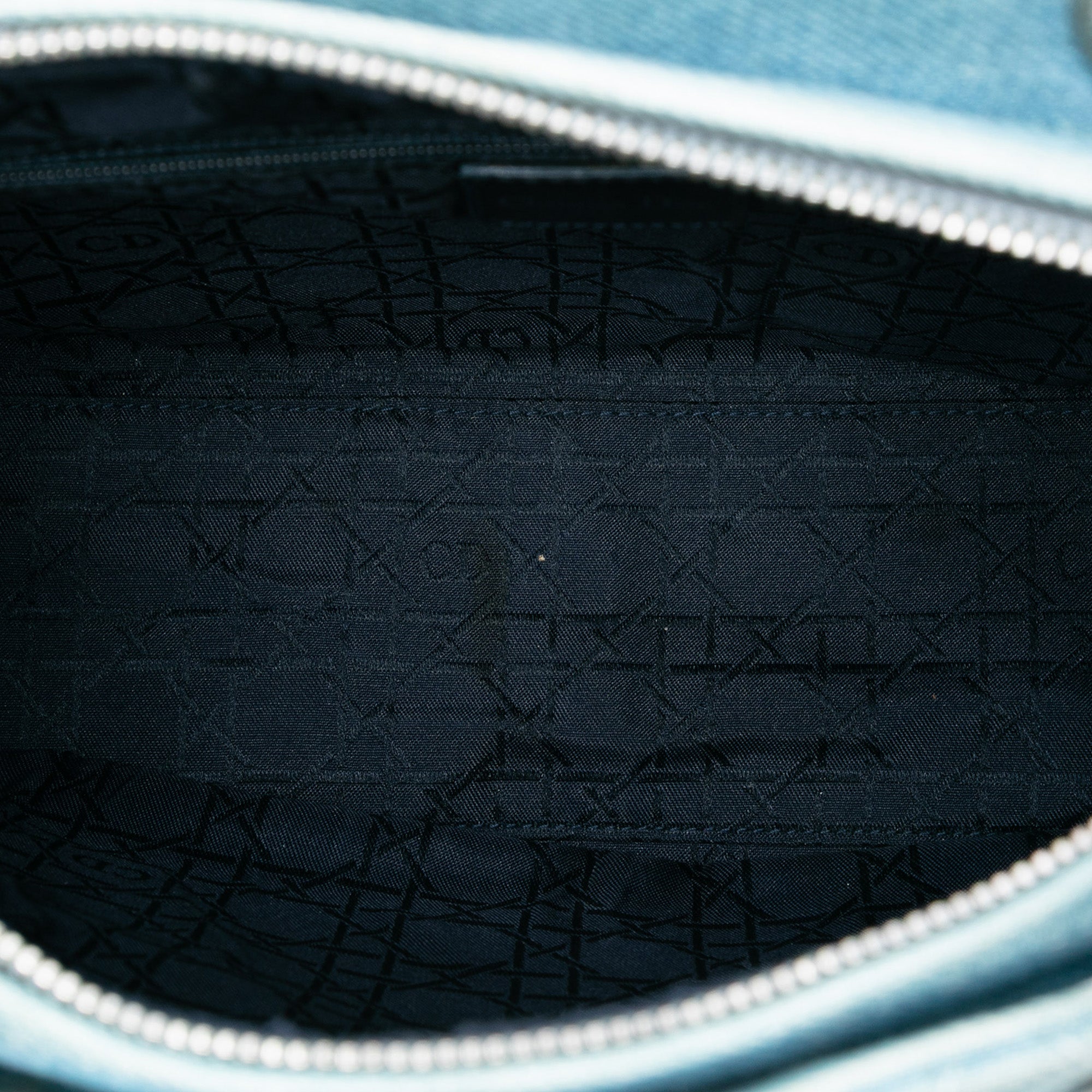 The Lady Dior satchel features a quilted denim body, flat plastic top handles, a detachable flat denim strap, a top zip closure, and an interior zip pocket. Inclusion: authenticity card. Retail Price: 2900.00