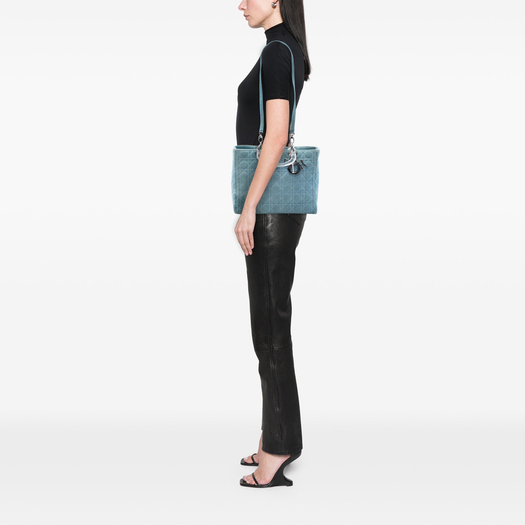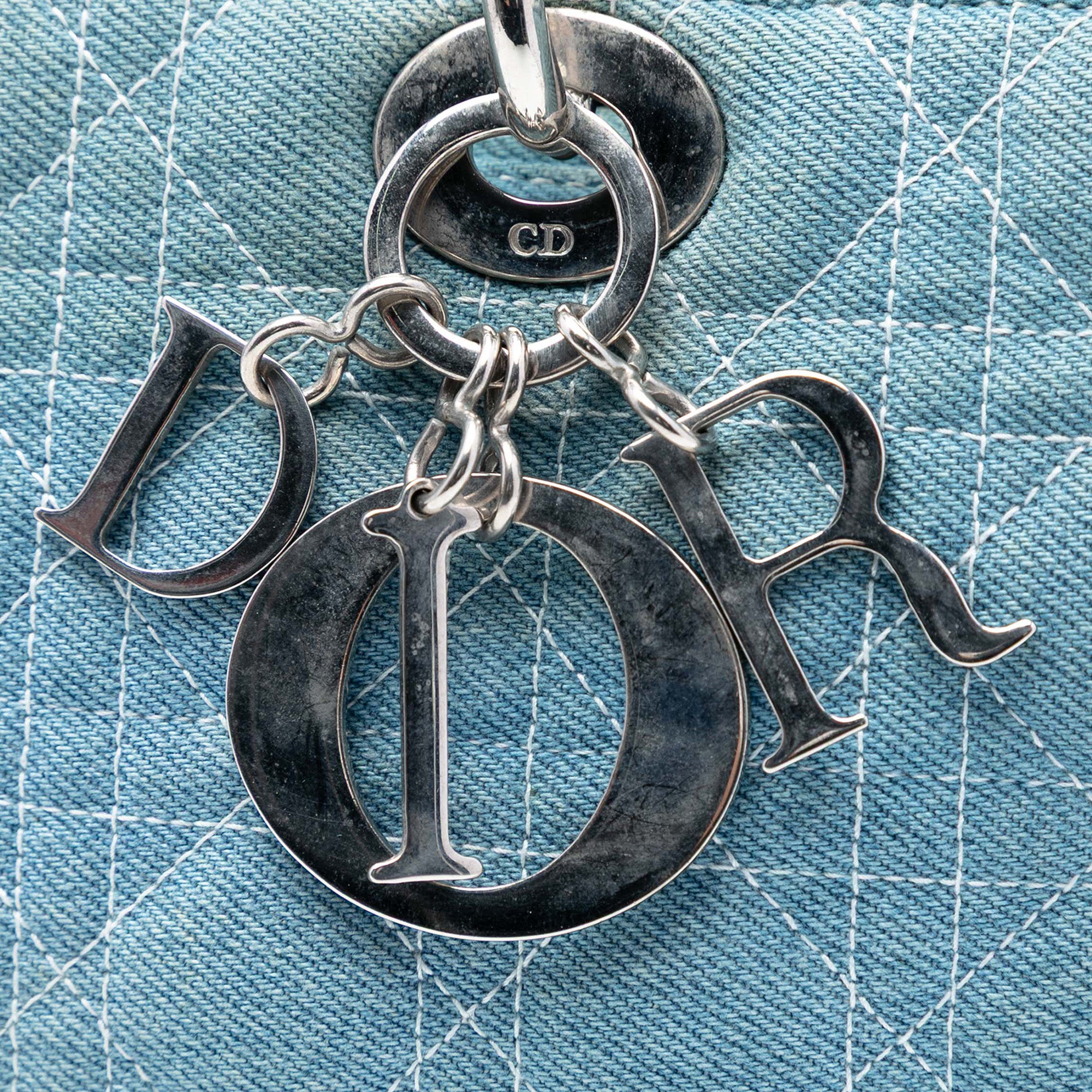 Dior Large Denim Cannage Acrylic Handles Lady Dior