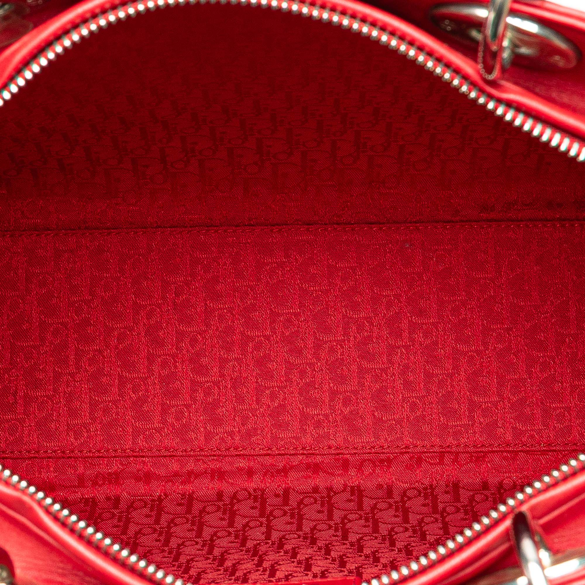 The Lady Dior features a quilted lambskin leather body, structured top handles, a detachable flat leather strap, a top zip closure, and an interior zip pocket. Inclusion: authenticity card. Retail Price: 4100.00