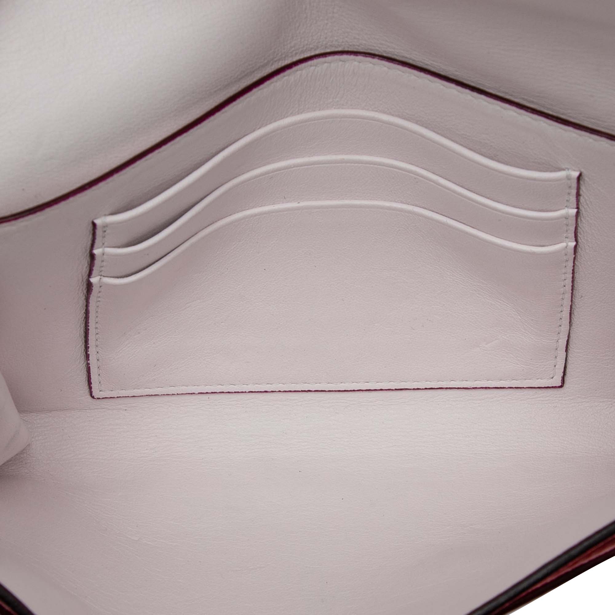 This crossbody bag features a leather body, a detachable chain link strap, a front flap with a snap button closure, and interior slip pockets and a detachable zip pouch. Inclusion: Dust bag. Retail Price: 638.00