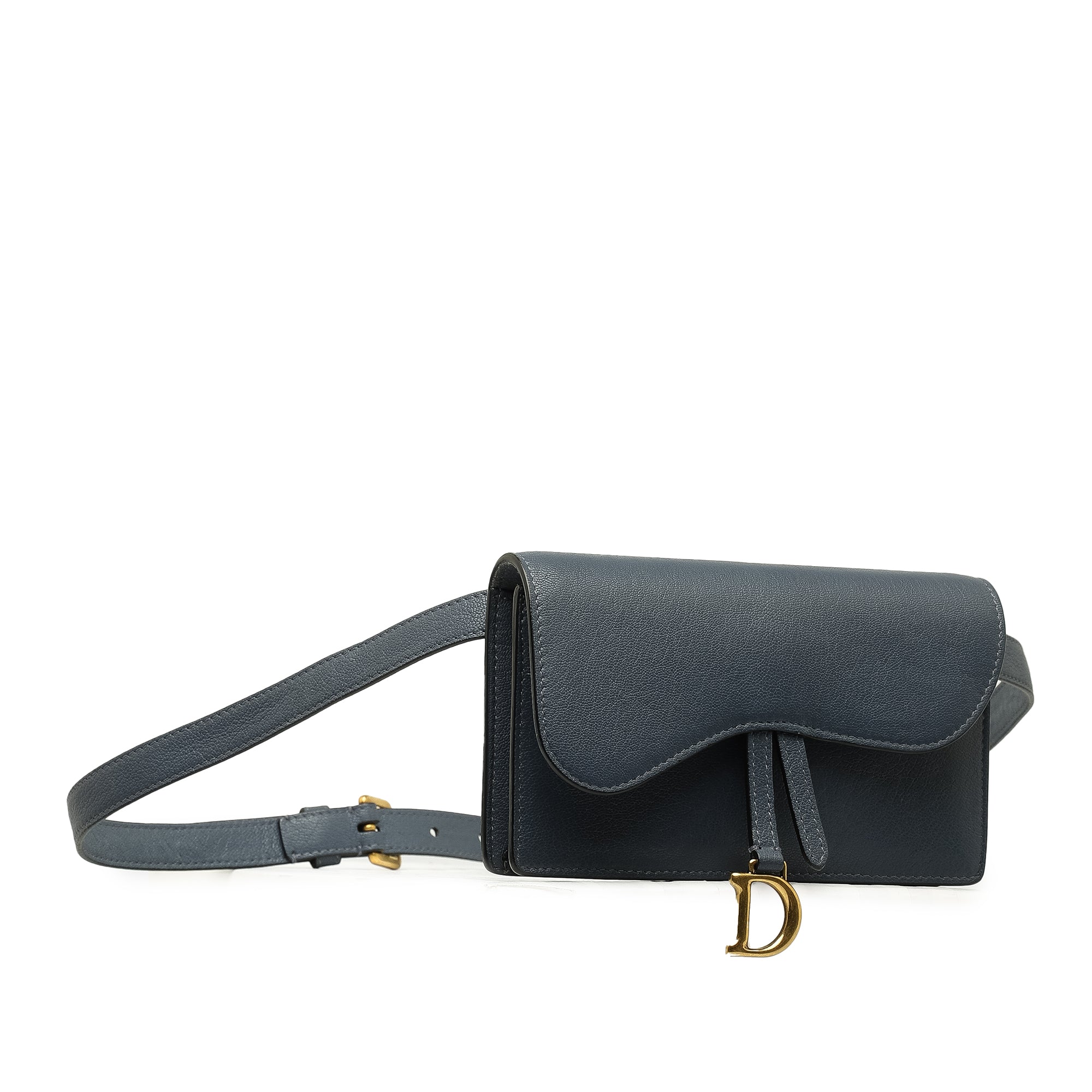 This belt bag features a leather body, an adjustable flat leather waist strap, a front flap with magnetic snap closure, and interior zip and slip pockets. Retail Price: 1670.00