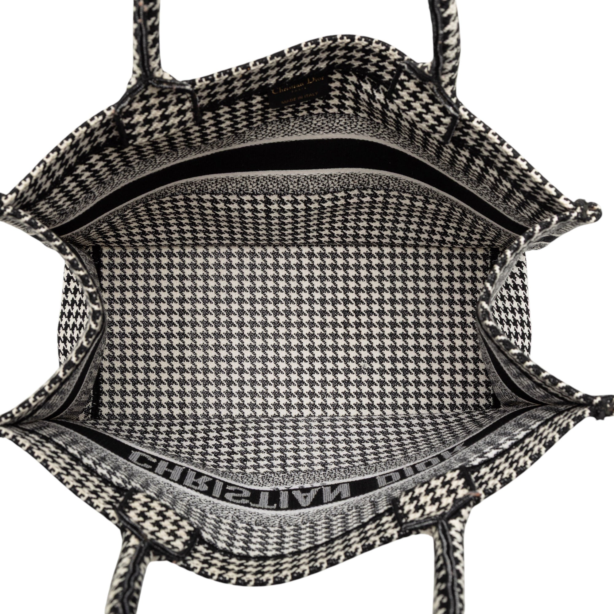 Dior Medium Canvas Houndstooth Embroidered Book Tote Secondhand