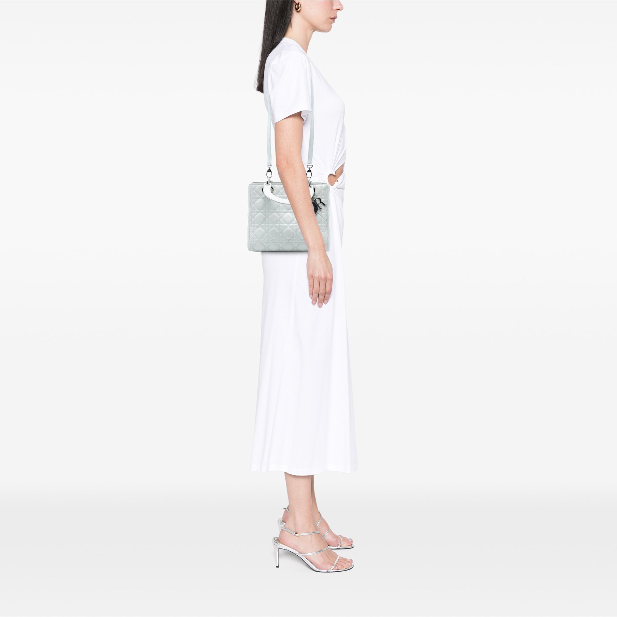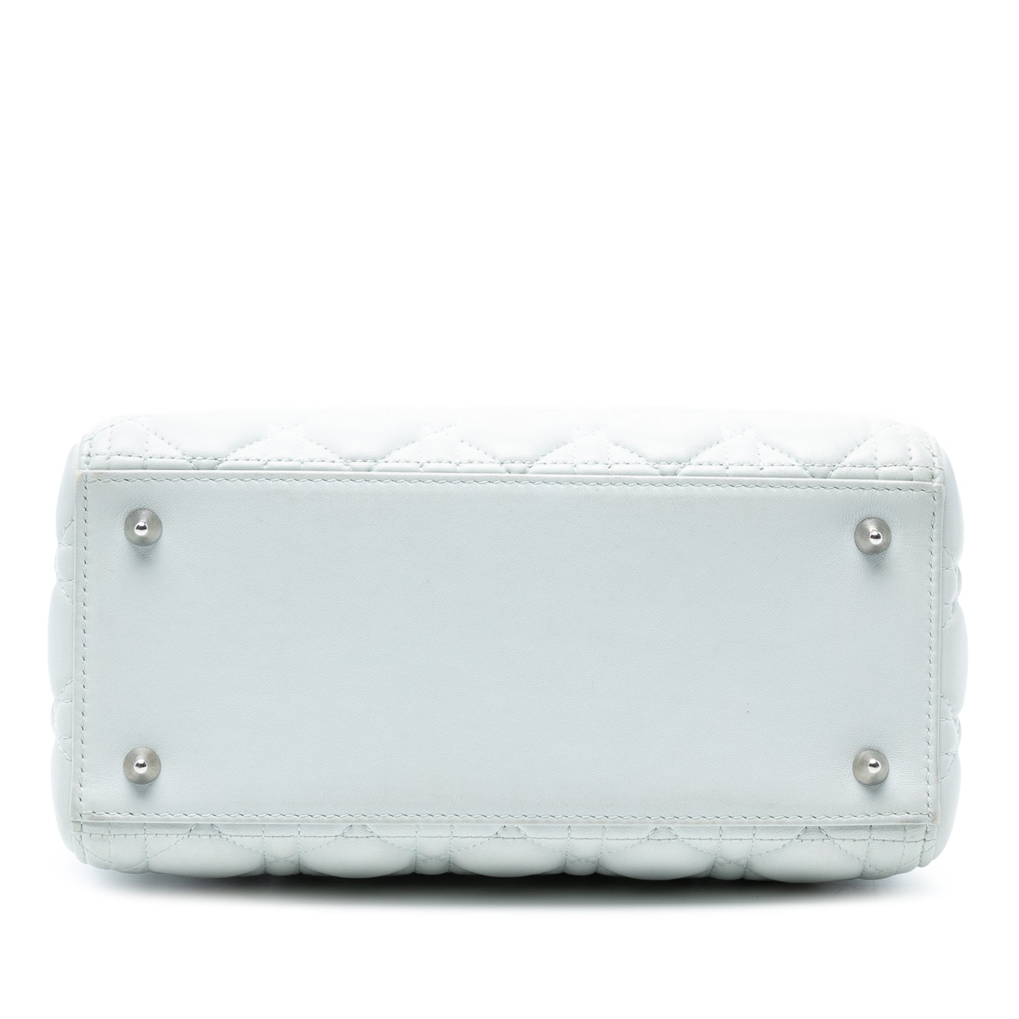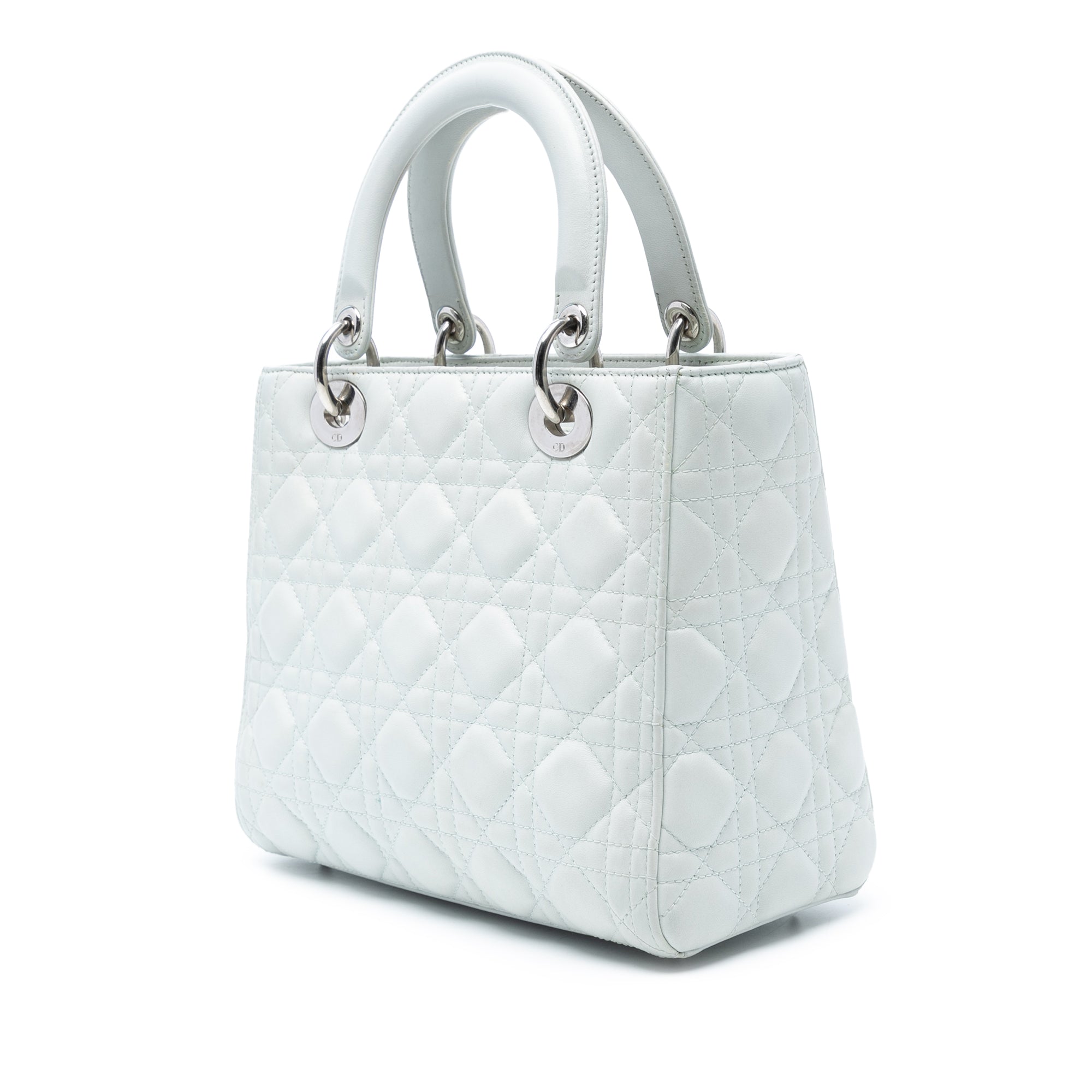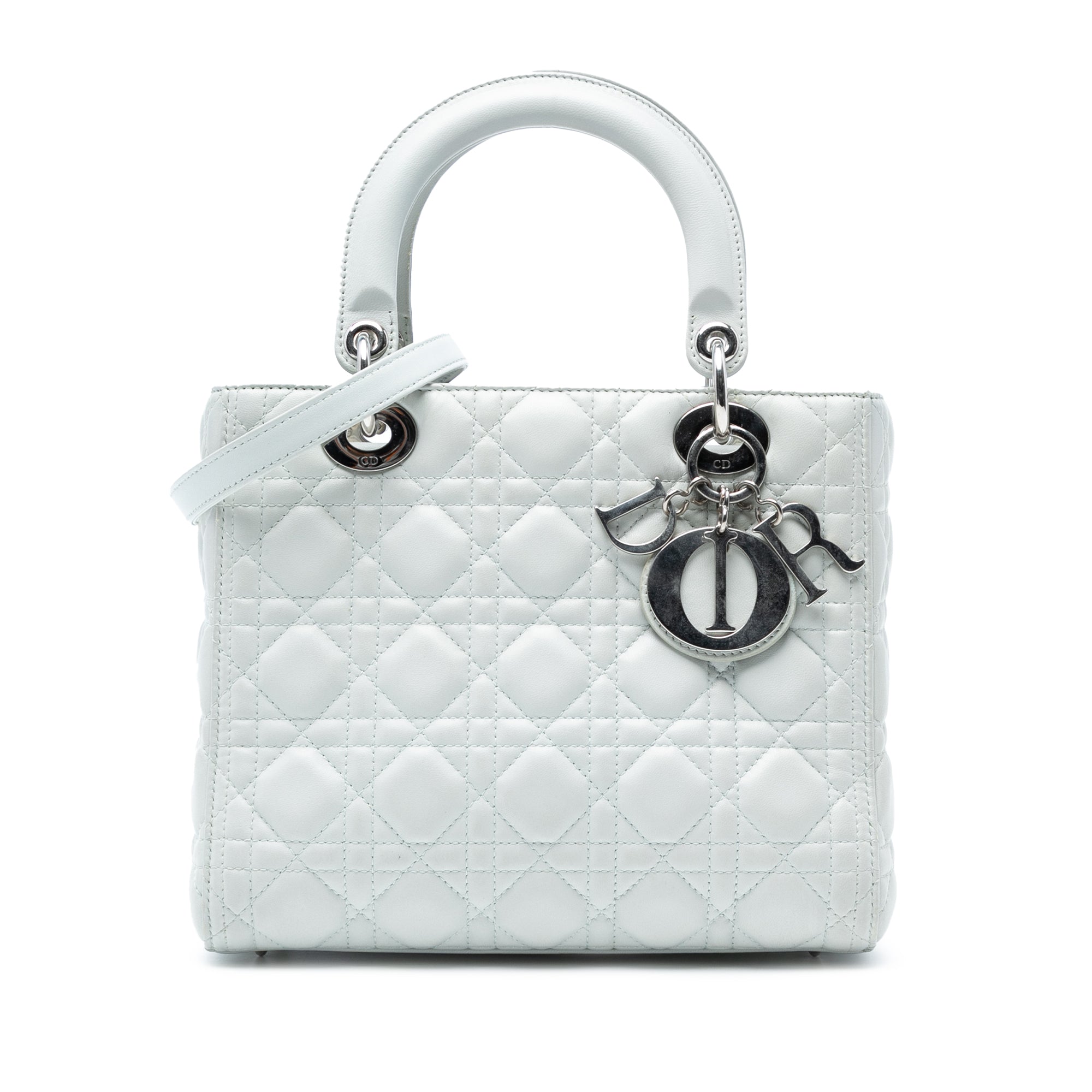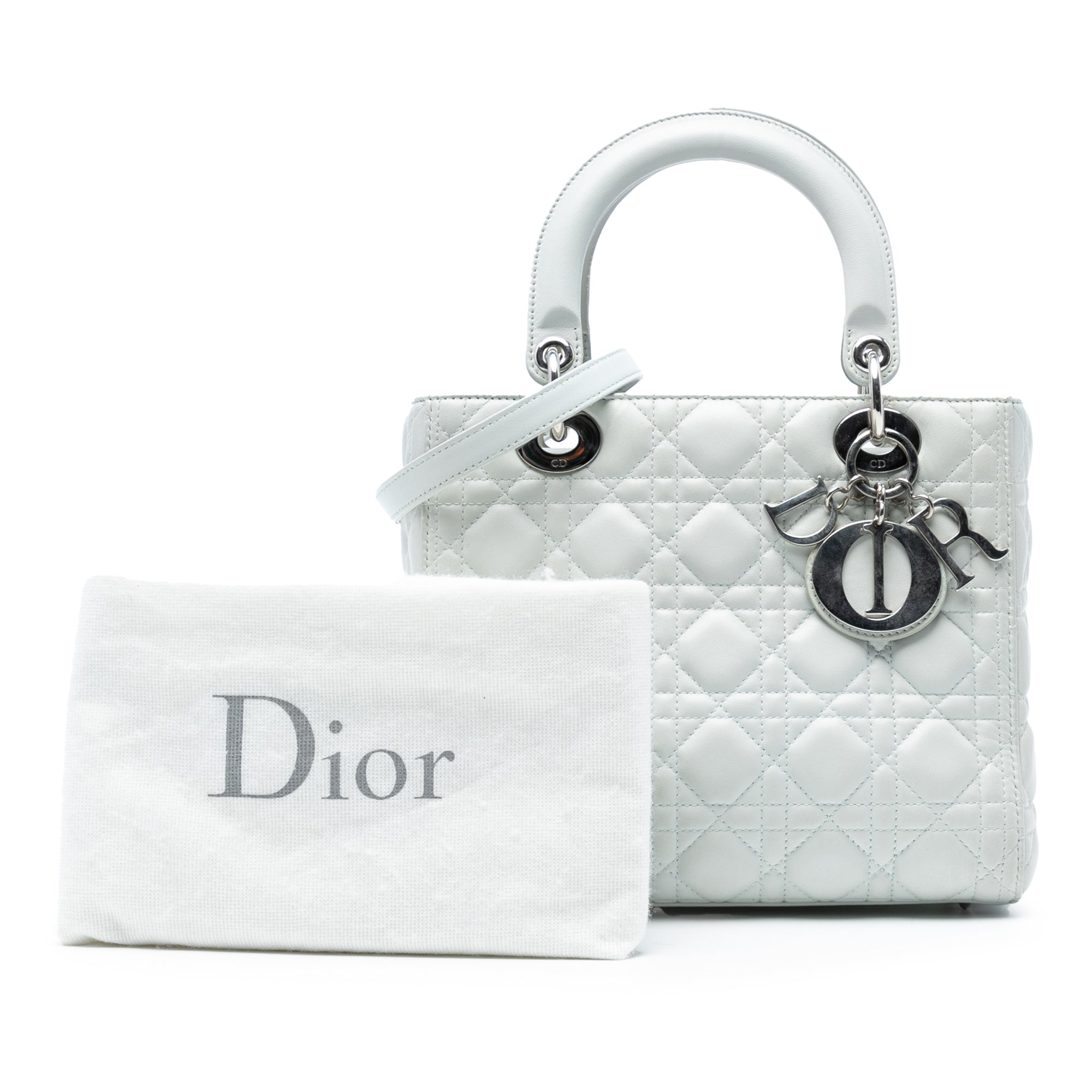 The Lady Dior features a quilted leather body, flat top handles, a detachable flat leather shoulder strap, a top zip closure, and an interior zip pocket. Inclusion: Dust bag. Retail Price: 3780.00