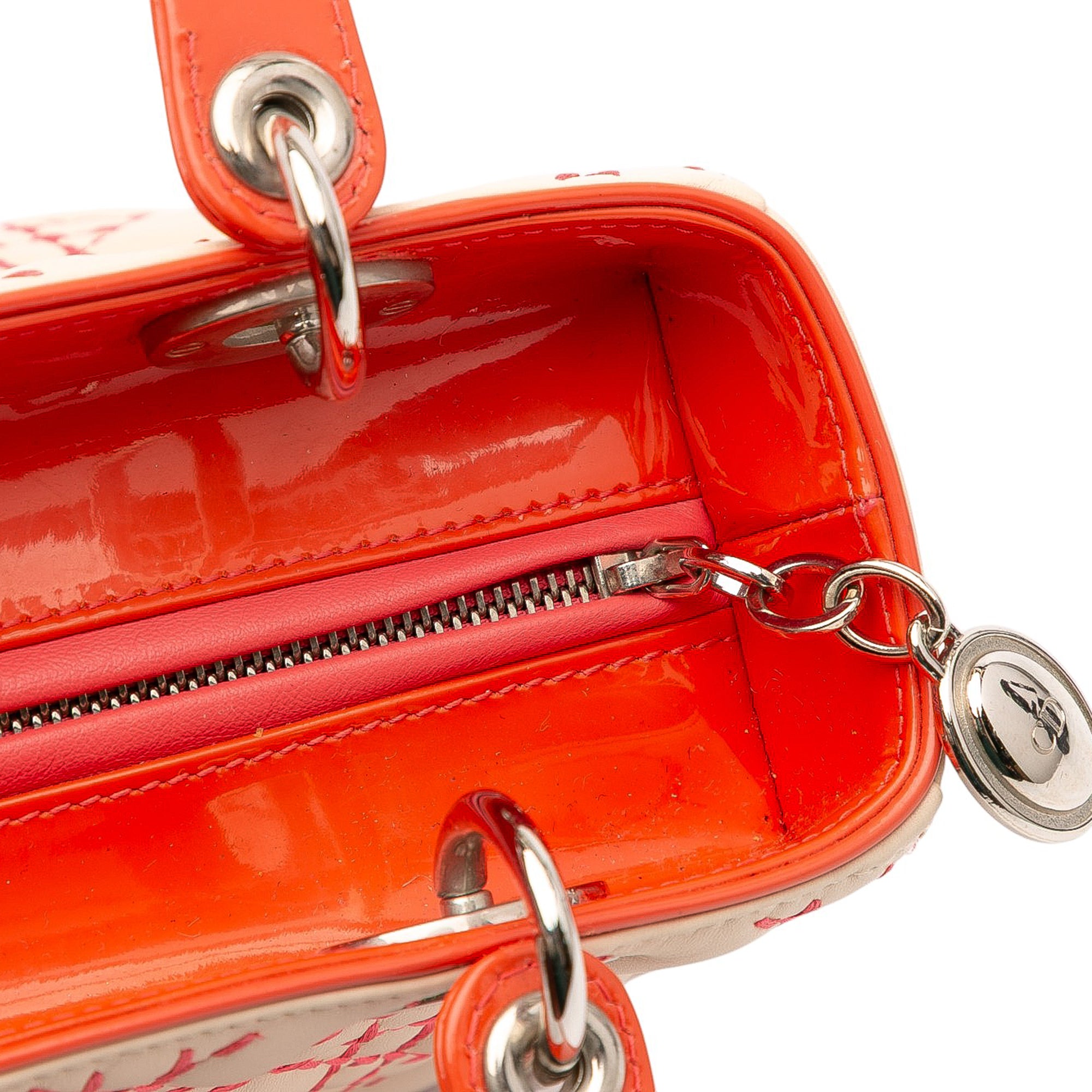 The Lady Dior features a stitched lambskin leather body, flat leather top handles, a detachable flat strap, a top zip closure, and an interior zip pocket. Inclusion: authenticity card. Retail Price: 6150.00
