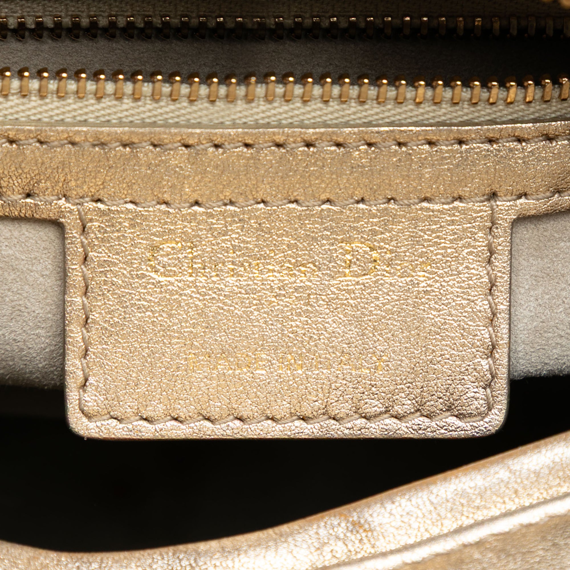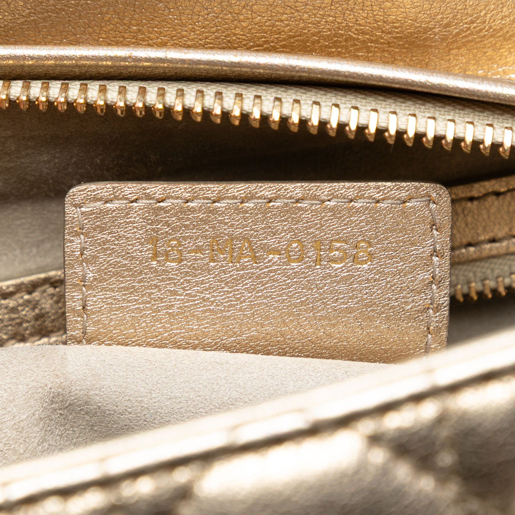 The Lady Dior features a quilted metallic lambskin leather body, flat leather top handles, a detachable leather strap, a top zip closure, and an interior zip pocket. Retail Price: 6066.00