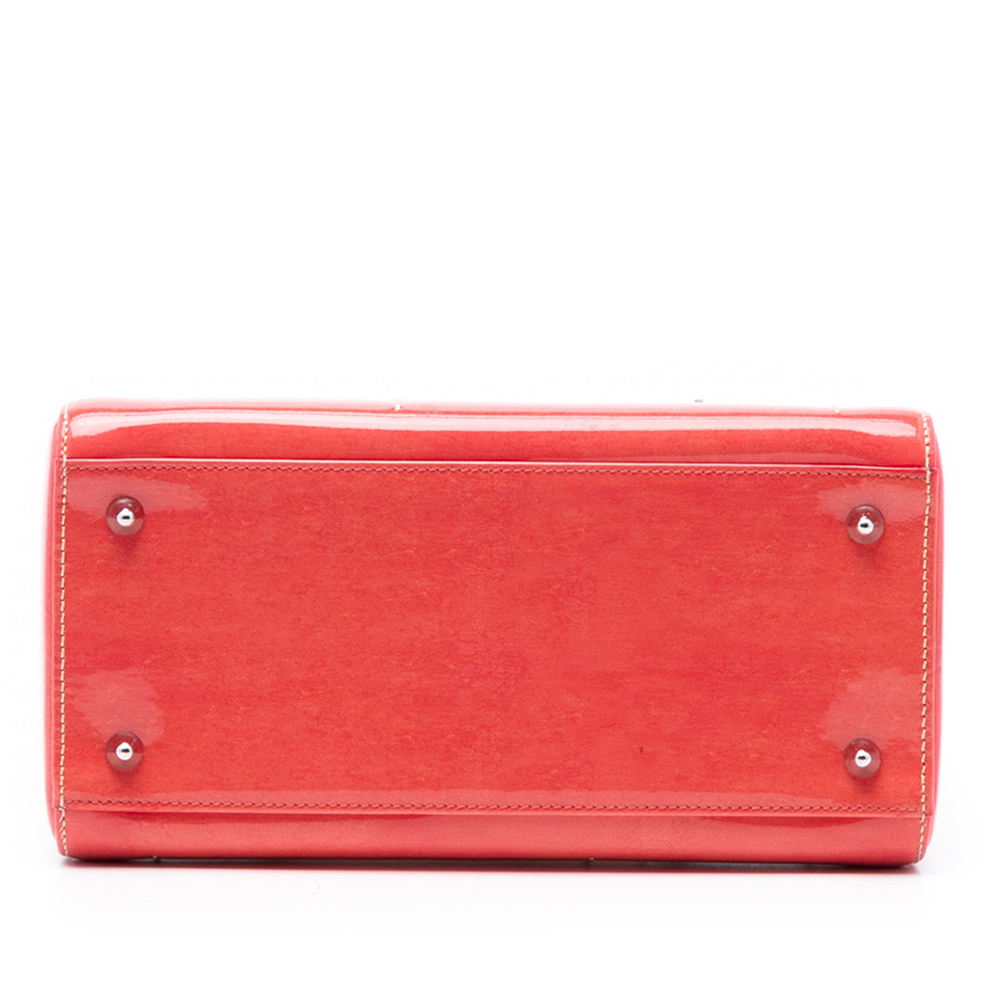 The Lady Dior features a quilted patent leather body, flat leather top handles, a detachable flat leather shoulder strap, a top zip closure, and an interior zip pocket. Retail Price: 3600.00