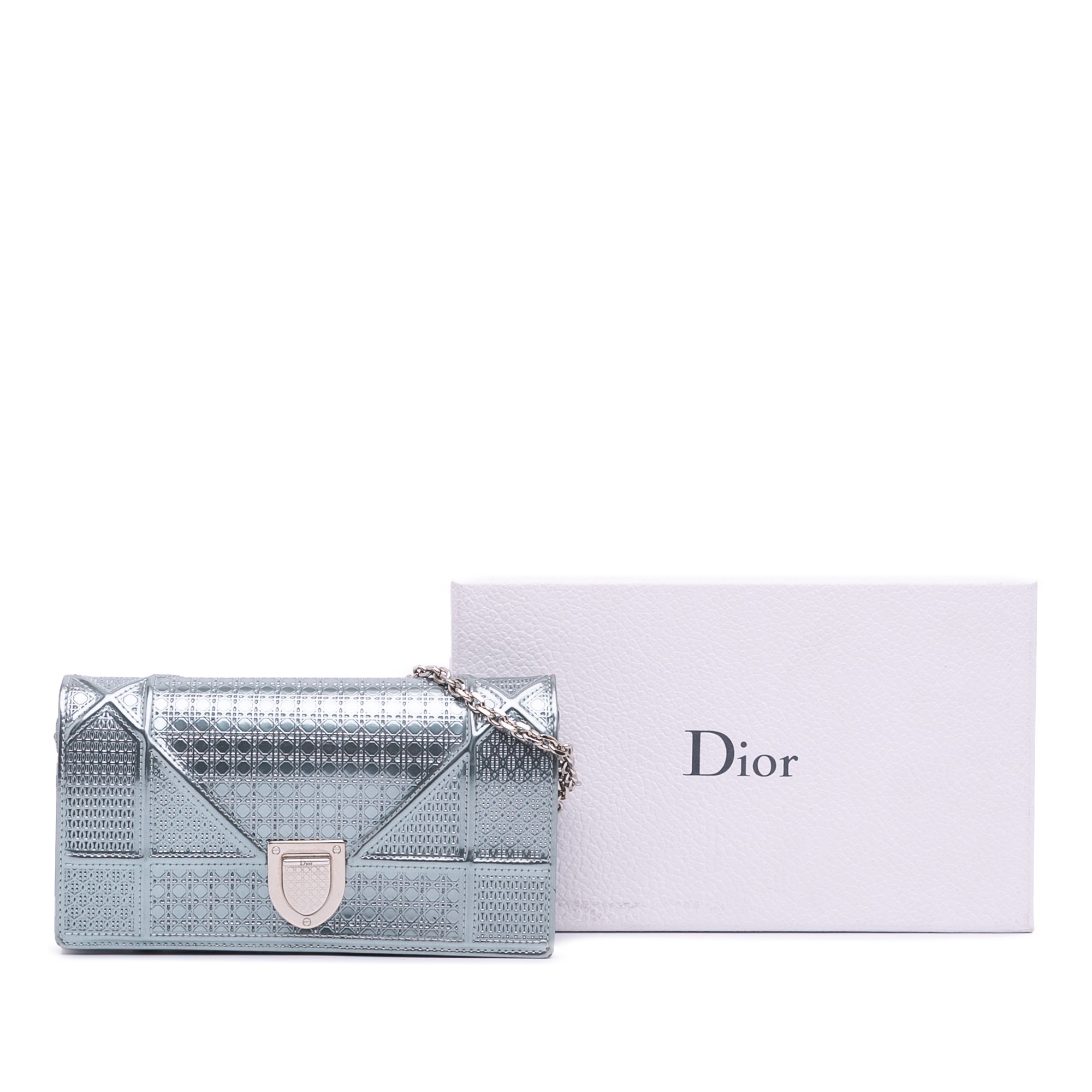 Dior Metallic Patent Microcannage Diorama Wallet on Chain