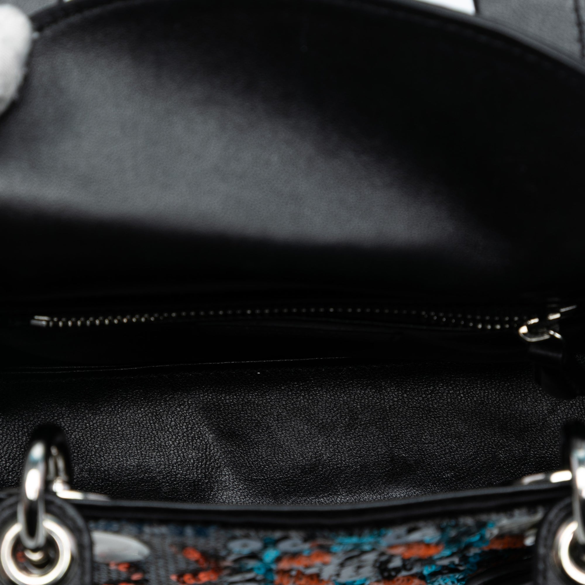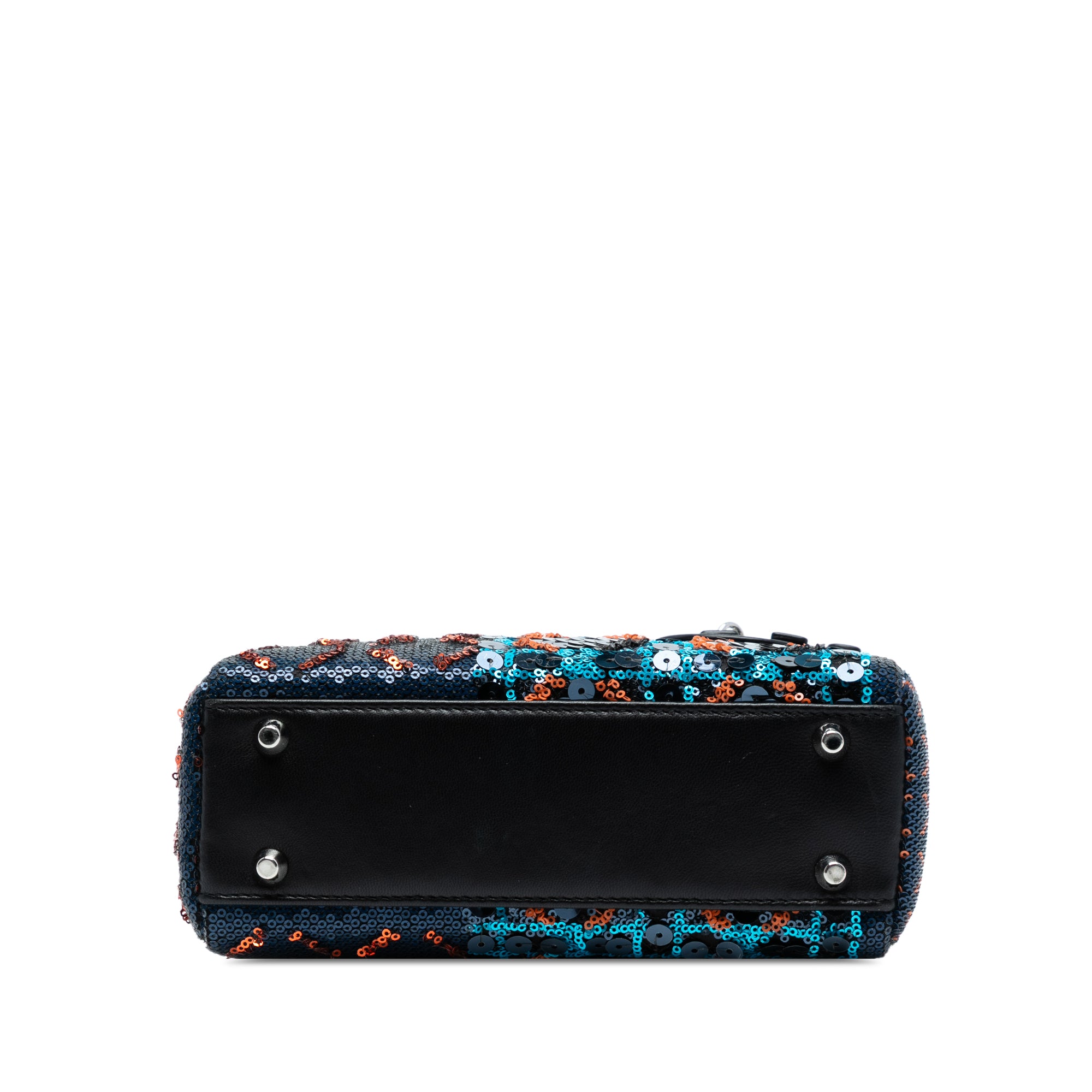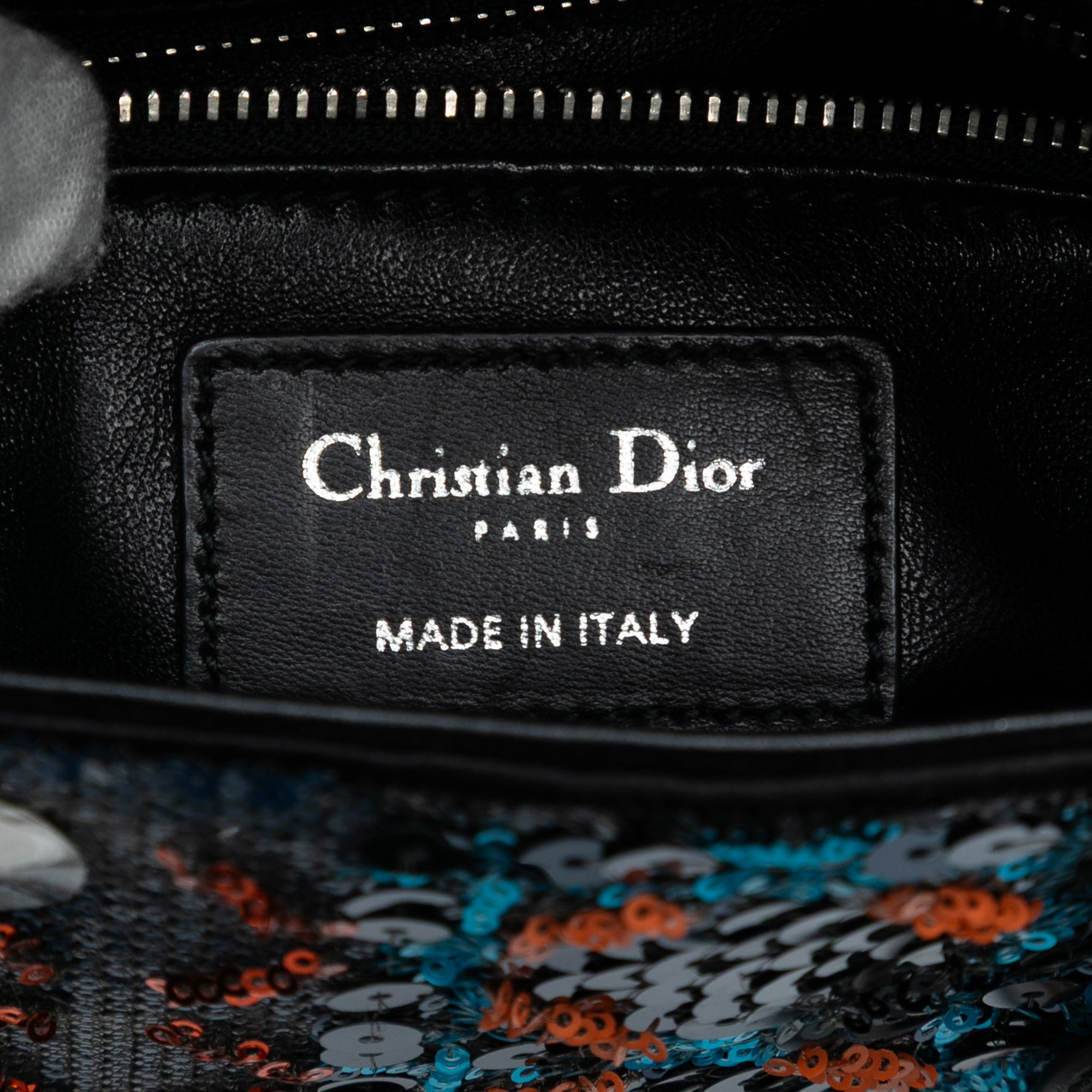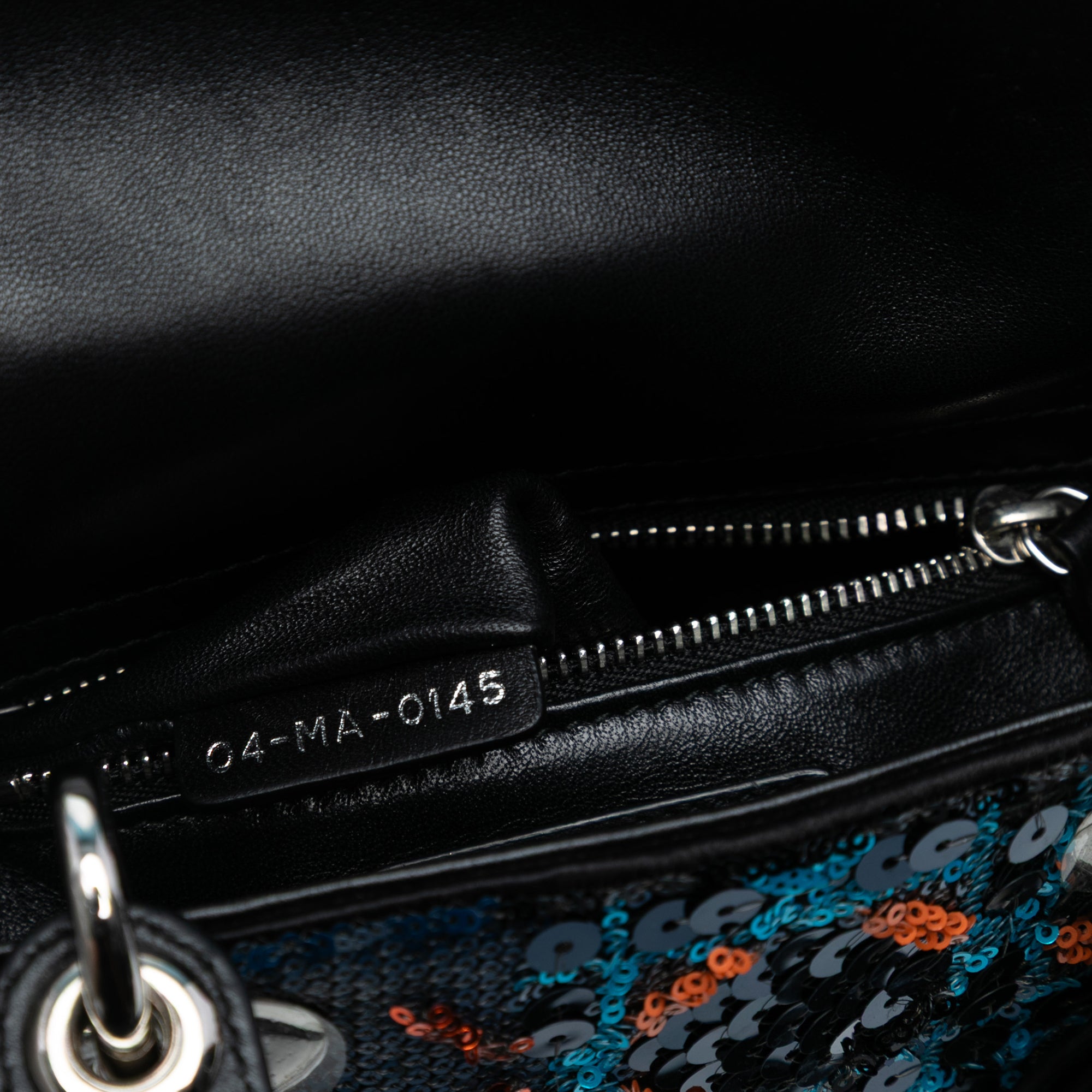 The Lady Dior features a sequin-embellished body, flat leather handles, a detachable chain strap, a fold-in flap closure, and an interior zip pocket. Inclusion: Dust bag, authenticity card. Retail Price: 6900.00