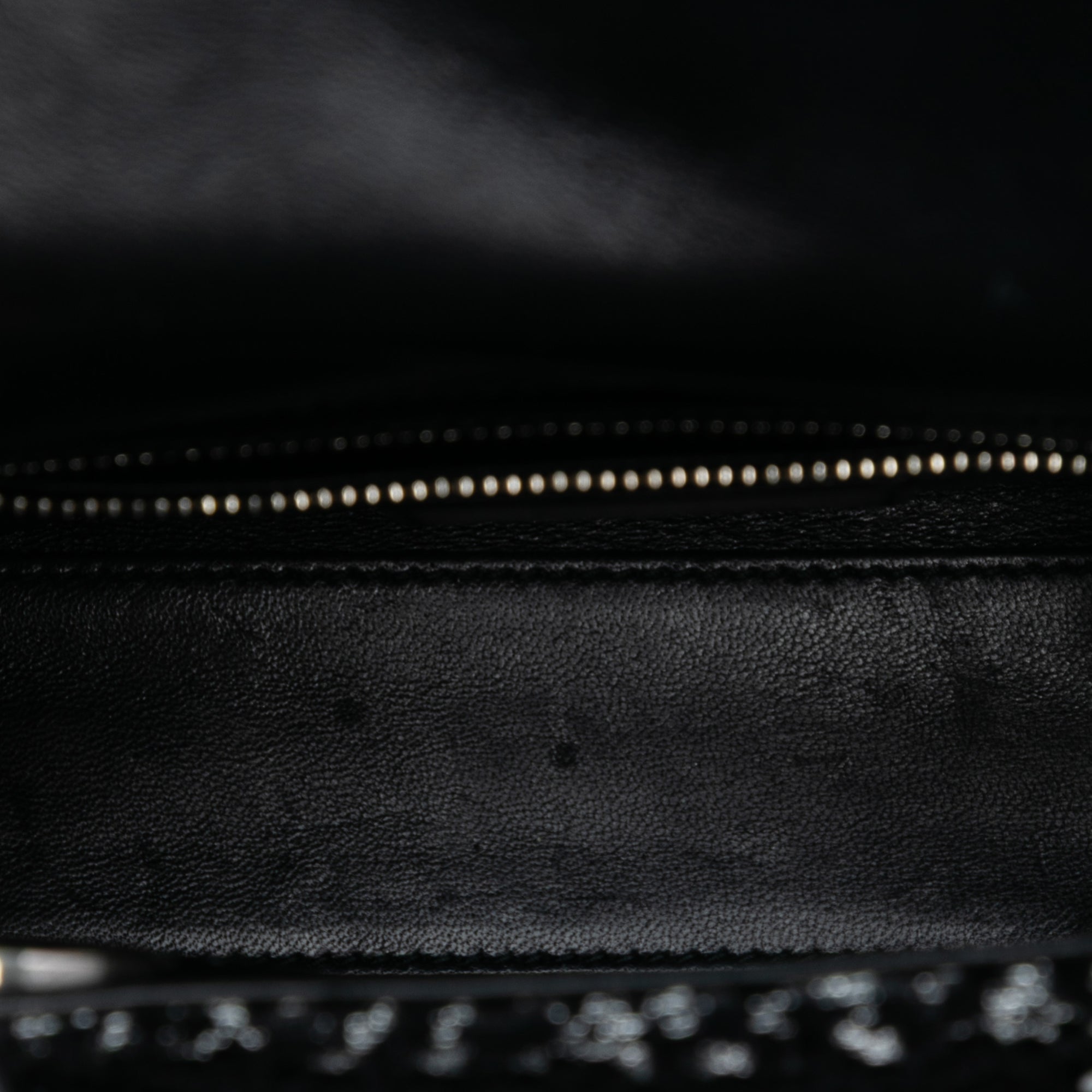 The Lady Dior features a synthetic fibers body, flat top handles, a detachable flat leather strap, a fold in flap closure, and an interior zip pocket. Inclusion: authenticity card. Retail Price: 3750.00